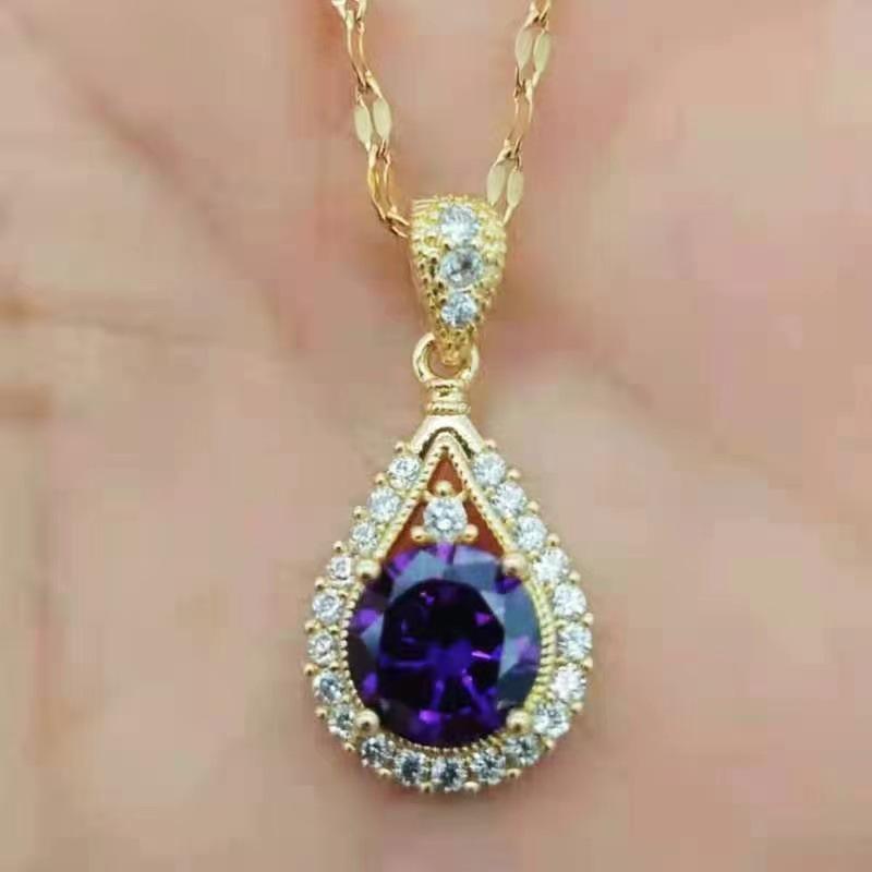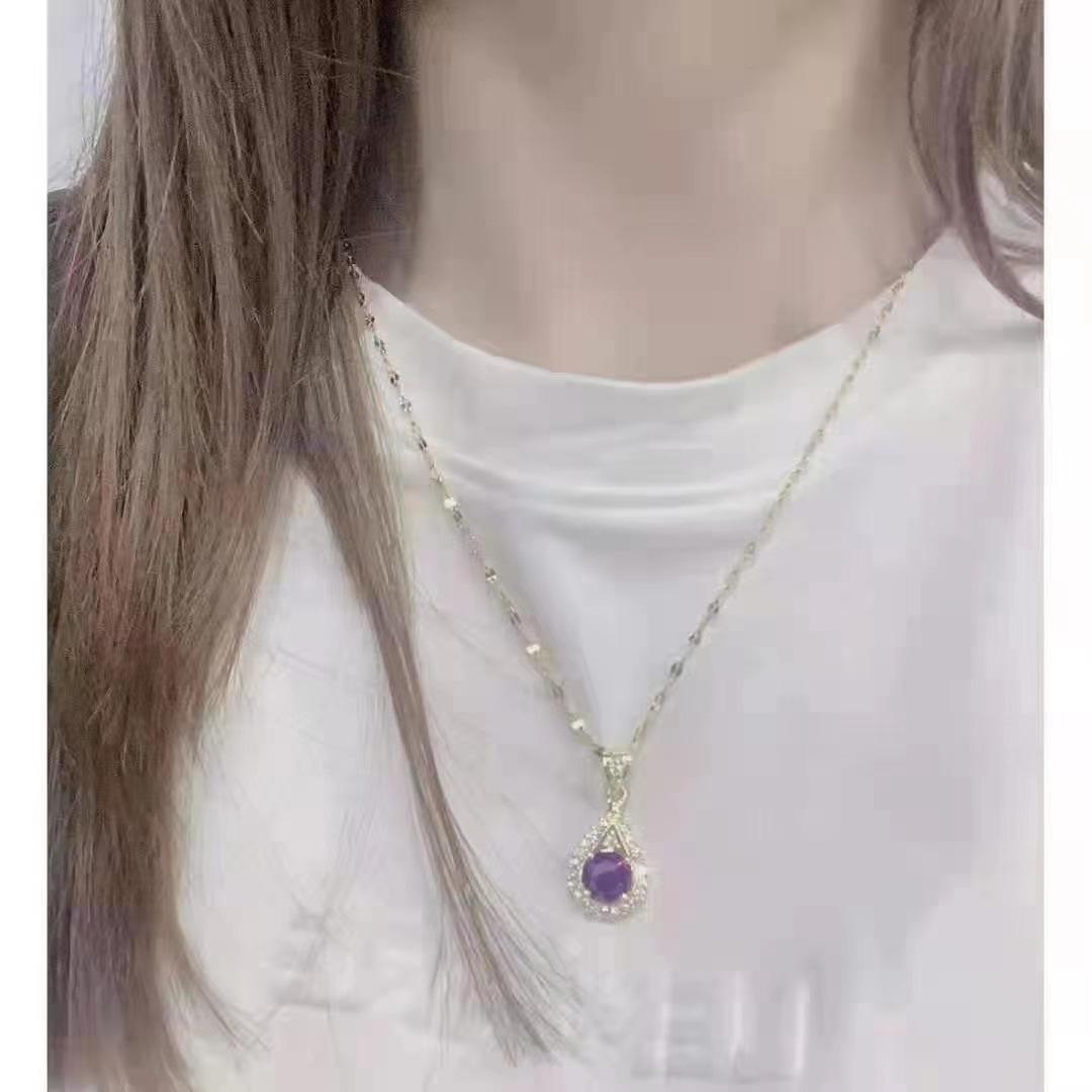 Collar de circonita con incrustaciones de diamantes para mujer, recién llegado de una celebridad de Internet, con colgante de lujo de luz del este morado, combinable con todo, cadena de clavícula, lote de 2023