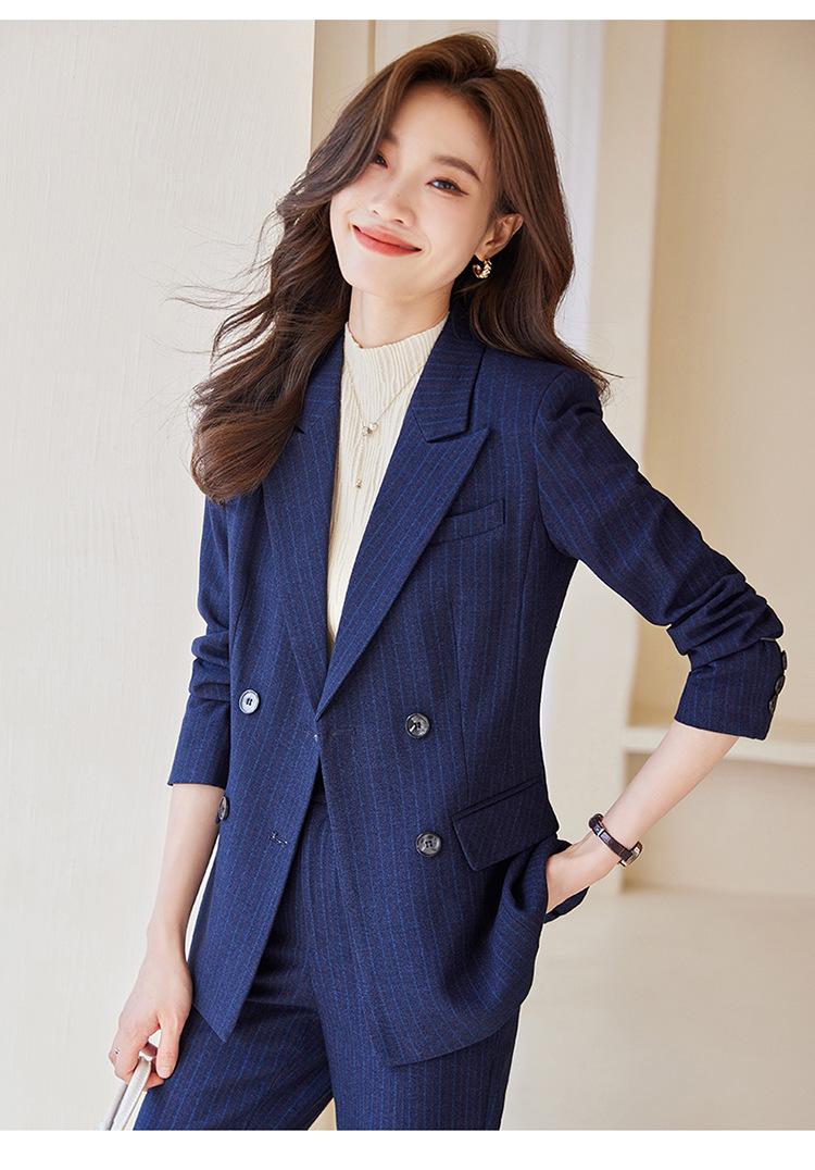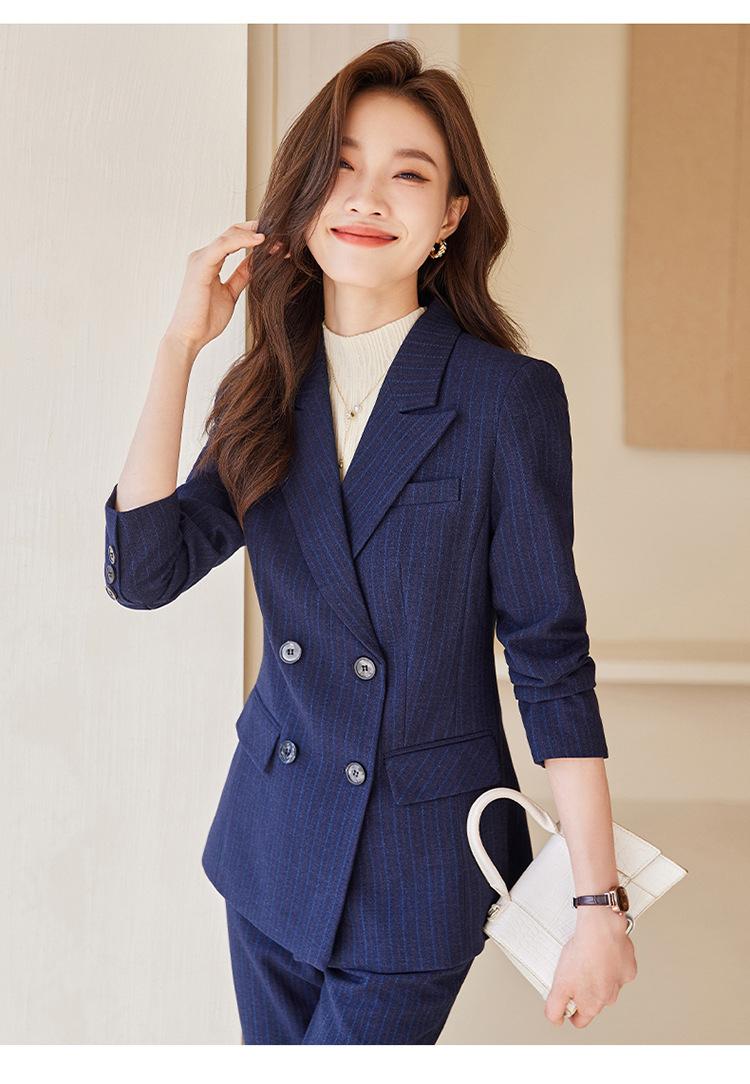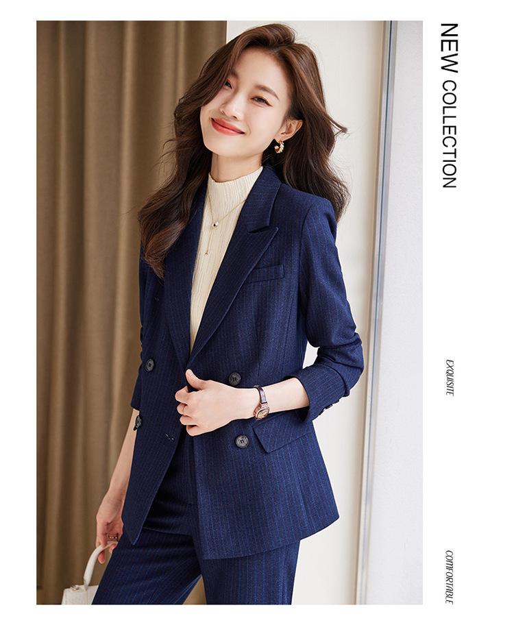 Chaqueta de traje de alta gama para mujer, ropa de otoño e invierno, temperamento coreano, ropa de negocios, vestido de entrevista, ropa de trabajo, traje a rayas