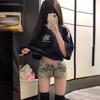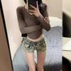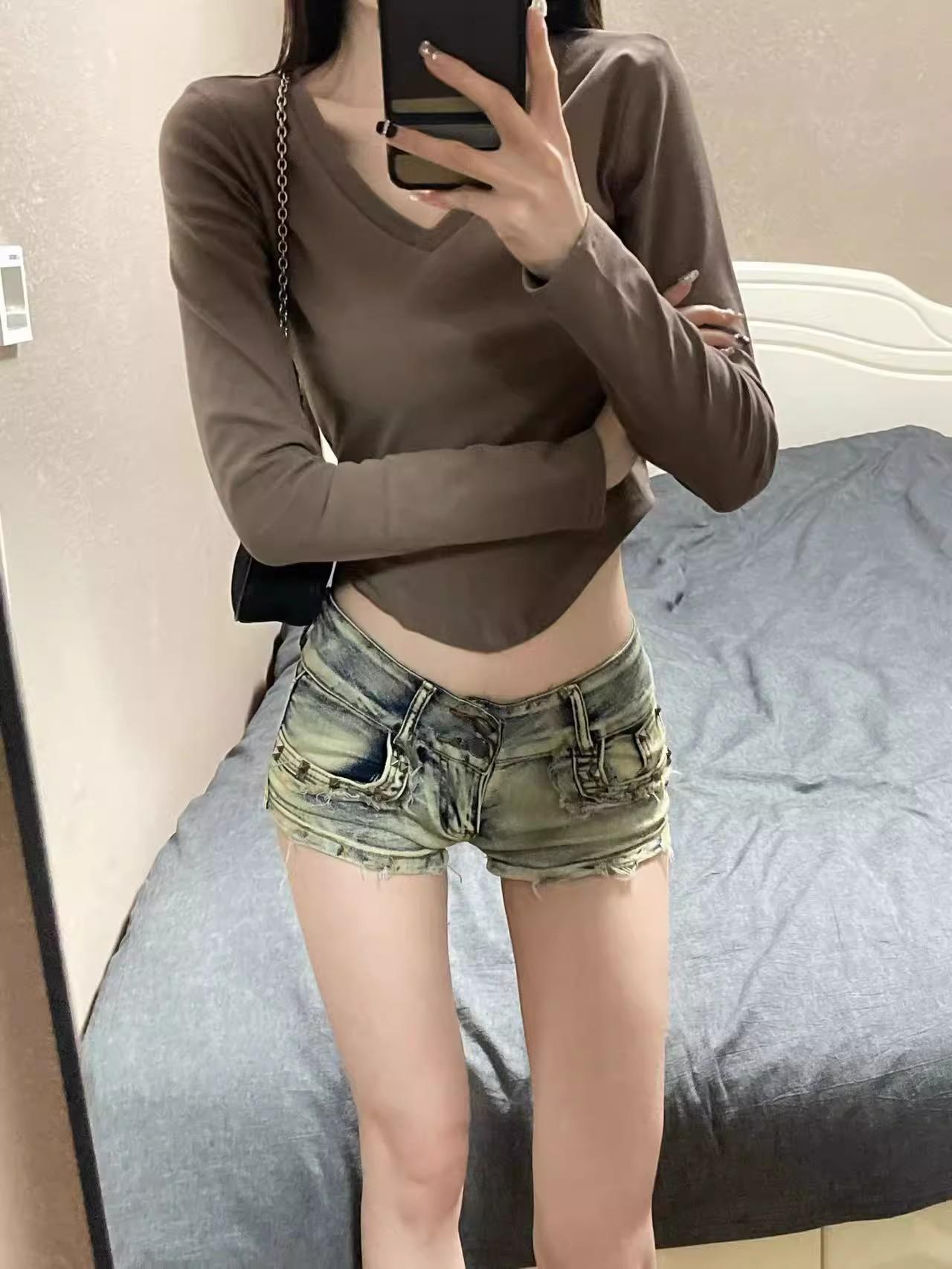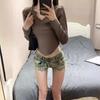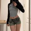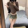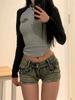 Pantalones cortos vaqueros de cintura baja estilo americano para mujer, estilo Liu Ding, ajustados, adelgazantes, con pernera ancha, para verano de 2024