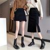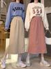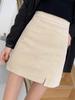 Falda acampanada con abertura para otoño e invierno 2025 nuevo estilo cintura alta delgada pana color puro versátil ajustada a la cadera falda corta