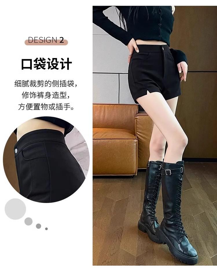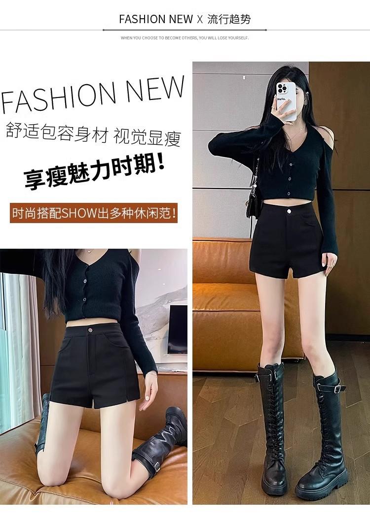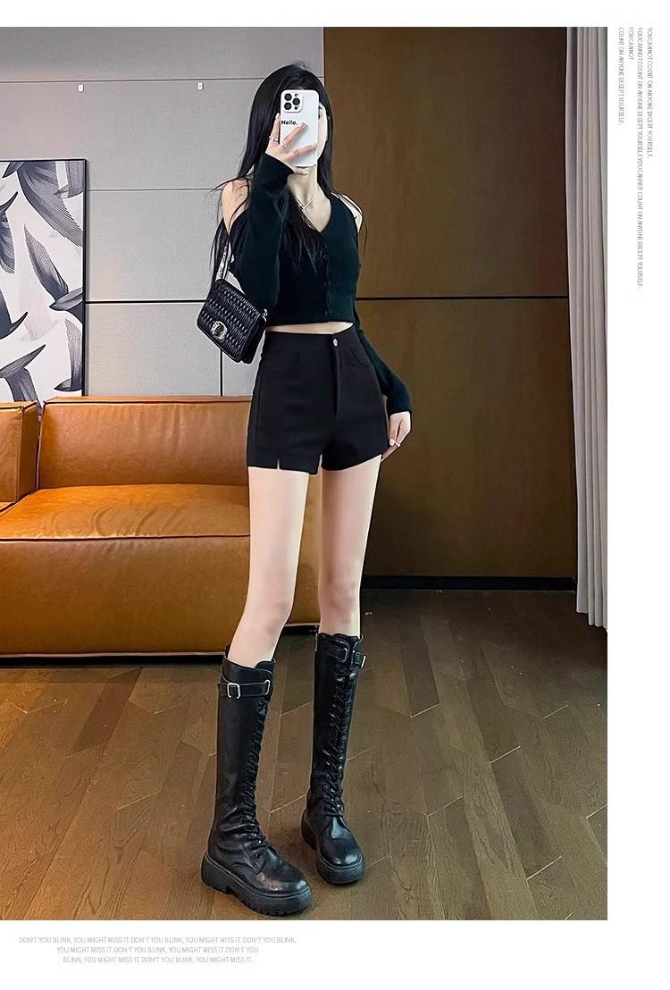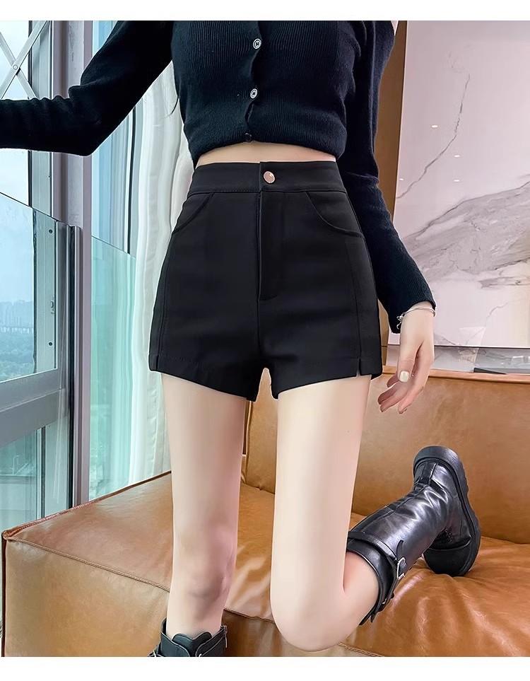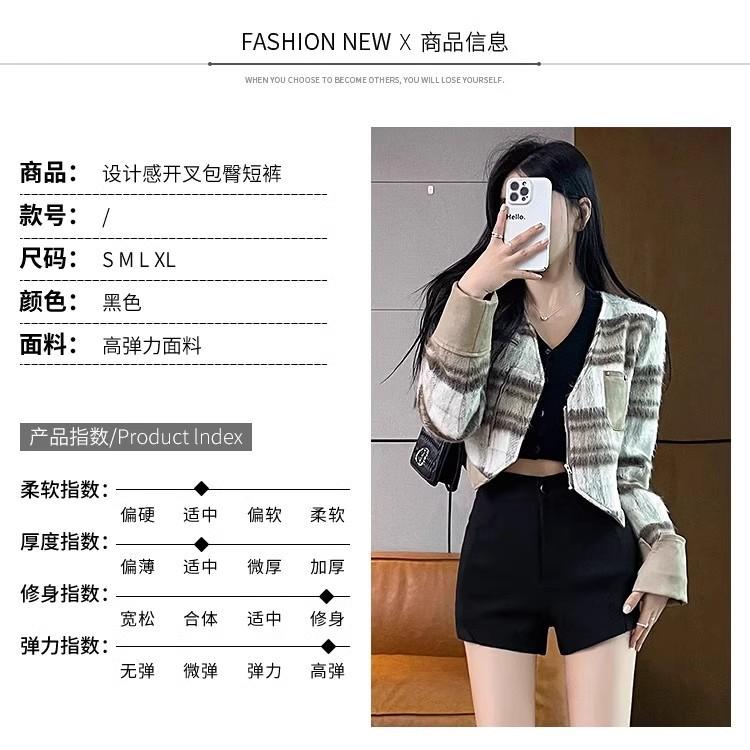 2024 Pantalones Cortos de Traje Negros para Mujer Verano Nuevo Casual Cintura Alta Elásticos Diseño Slim Sentido Abertura Cadera Pantalones Cortos Hot