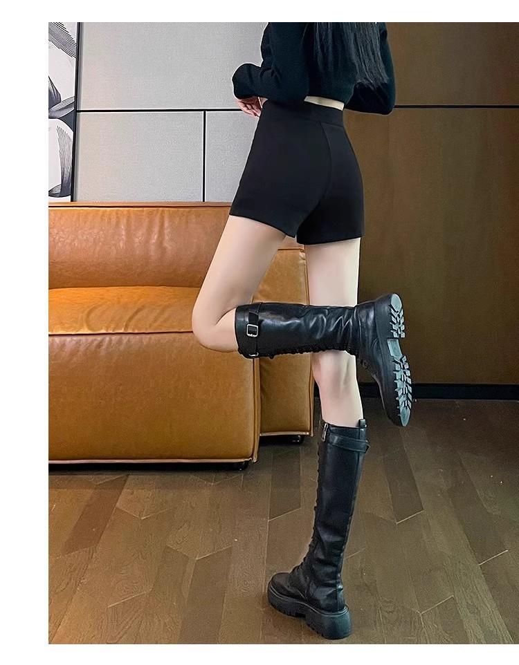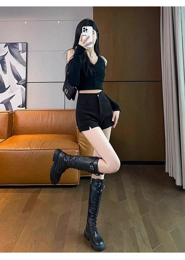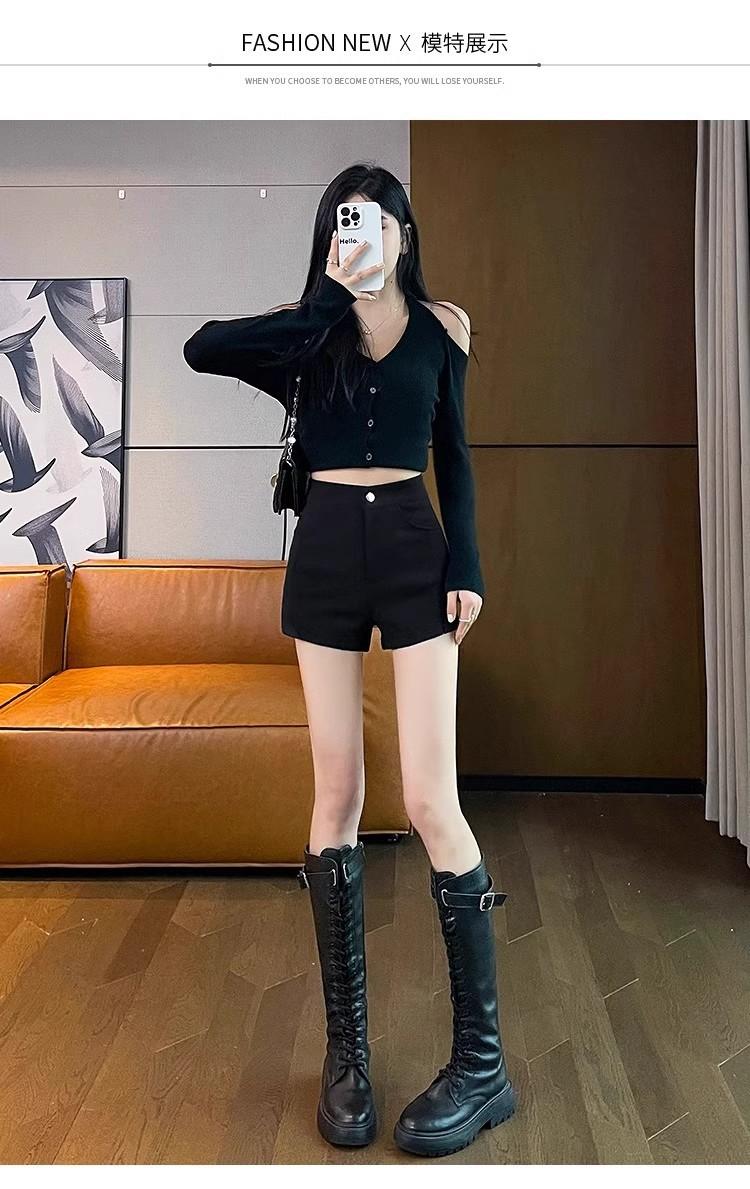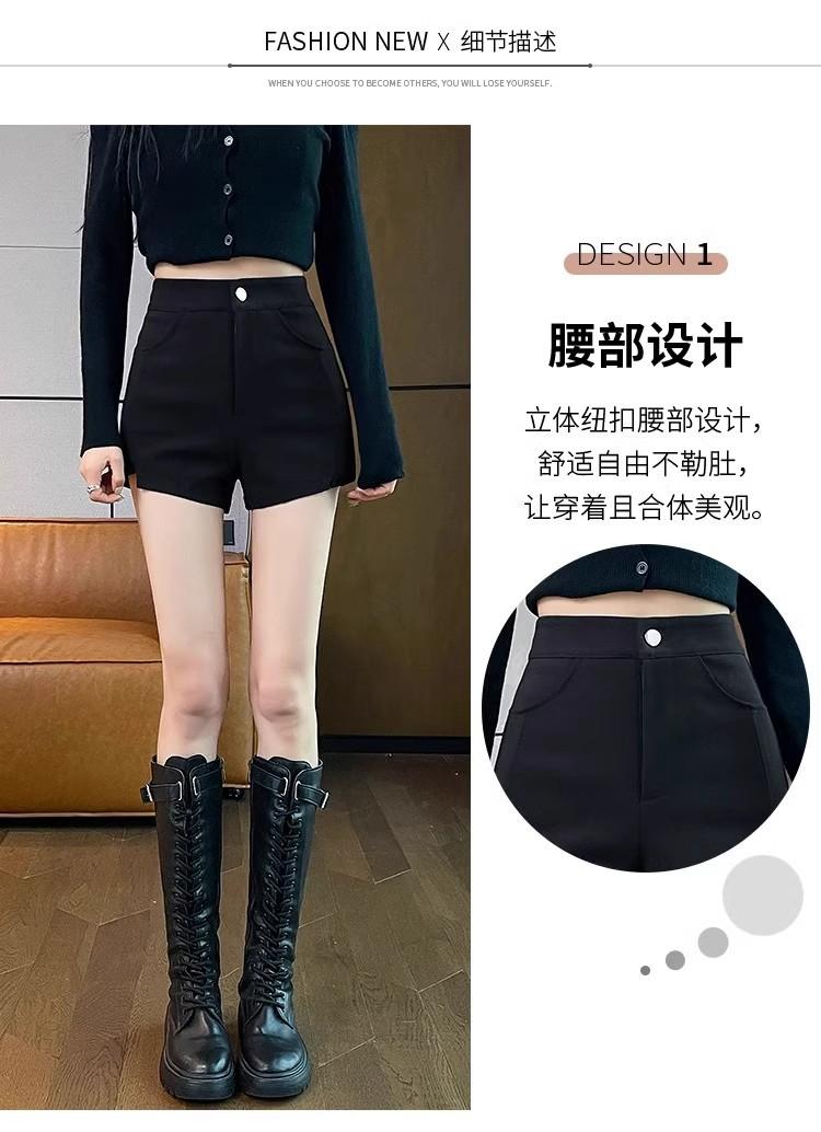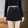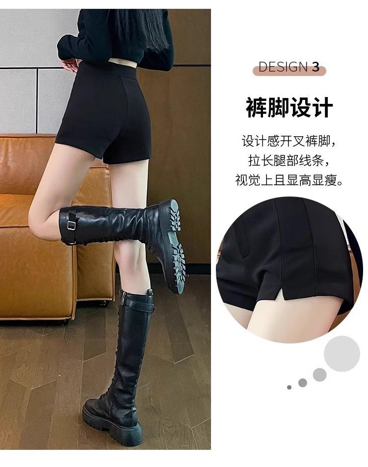 2024 Pantalones Cortos de Traje Negros para Mujer Verano Nuevo Casual Cintura Alta Elásticos Diseño Slim Sentido Abertura Cadera Pantalones Cortos Hot