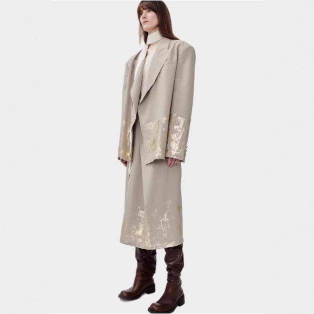 Blazer Largo para Mujeres Petite Primavera 2025 Moda Coreana Estilo Celebridad de Internet Holgado Adelgazante Moda Casual