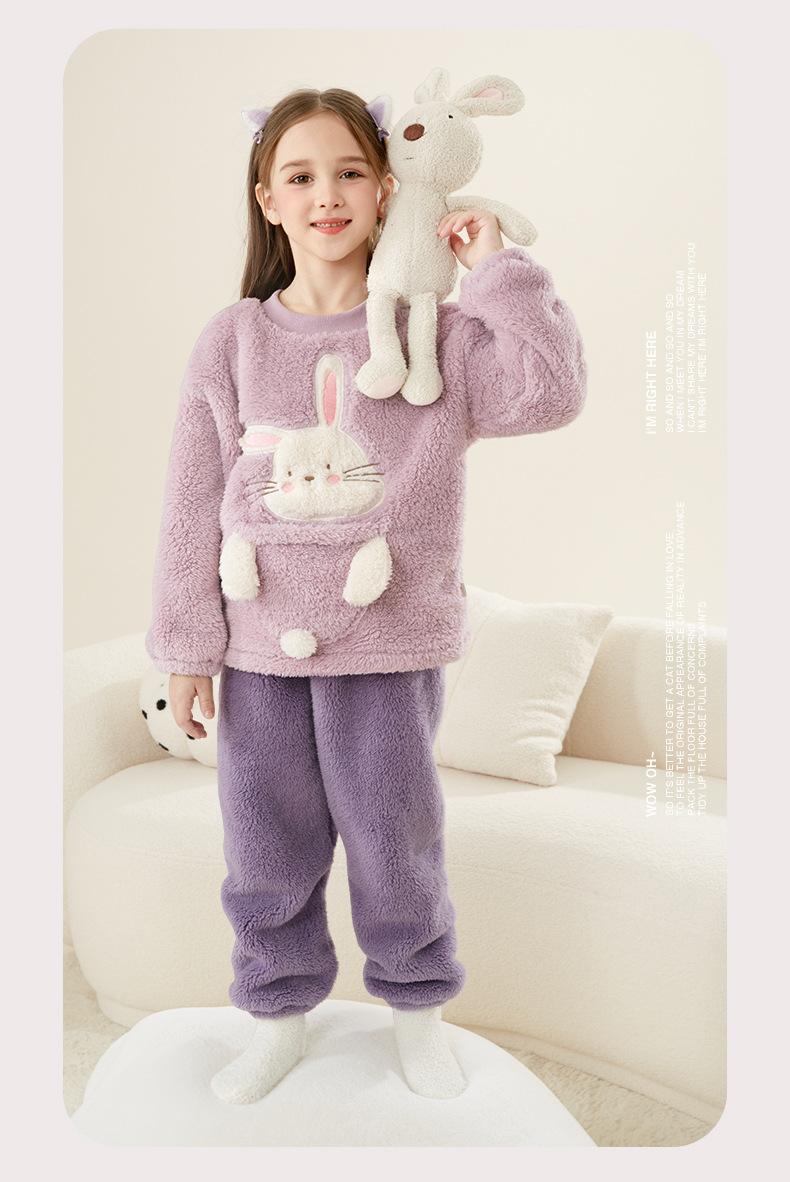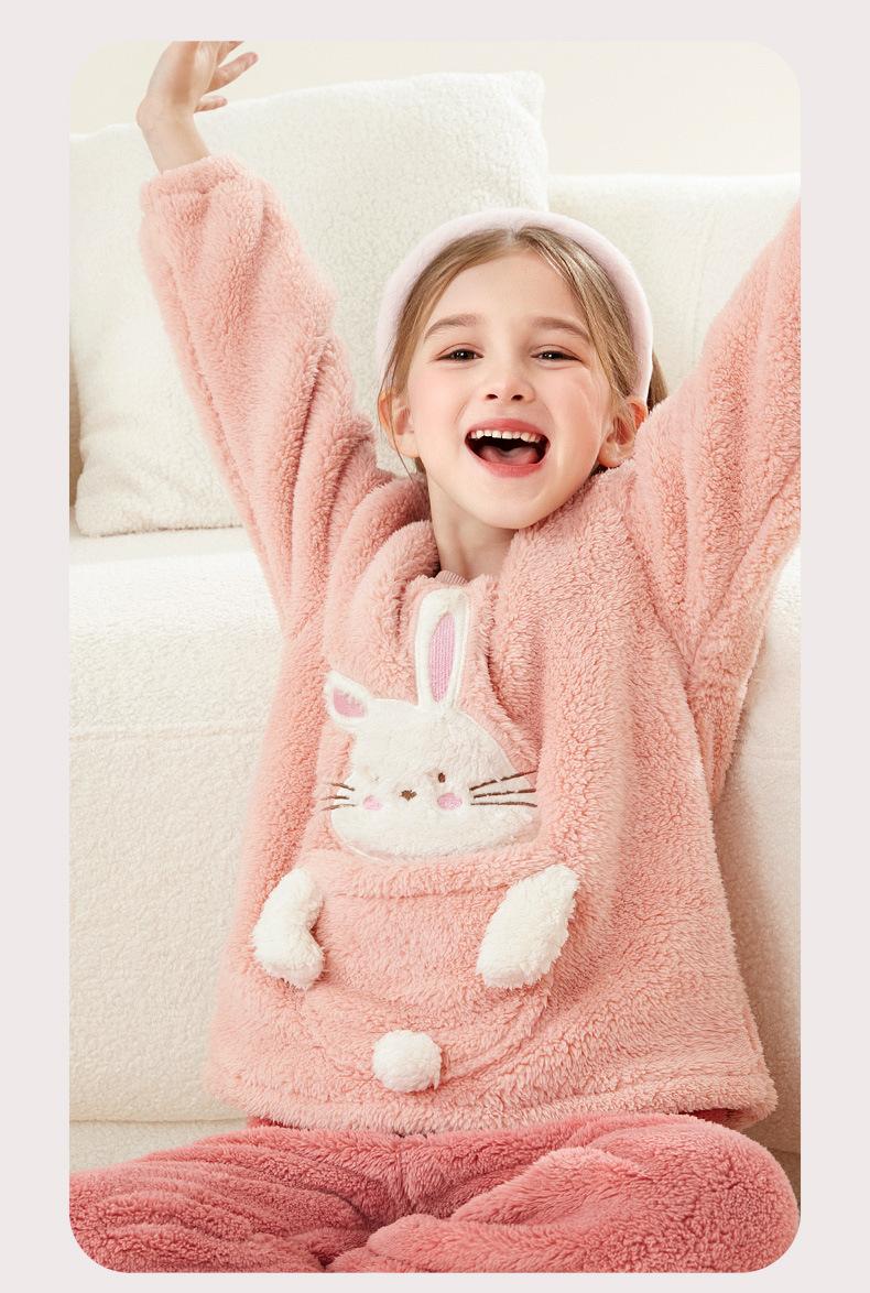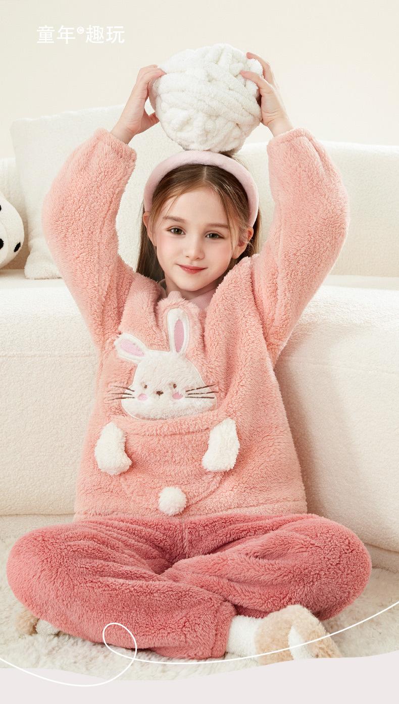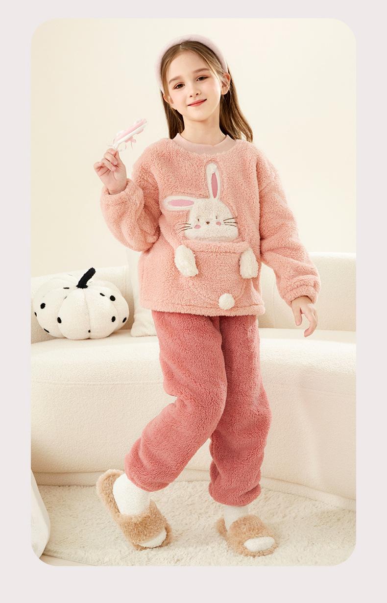Pijamas de invierno para niñas, estilo occidental, gruesos y grandes, de forro polar coral, para el hogar, 2024