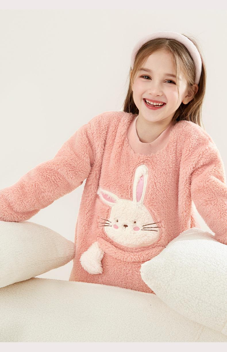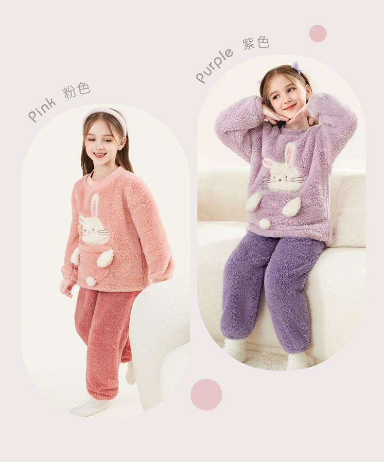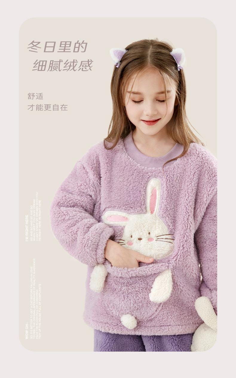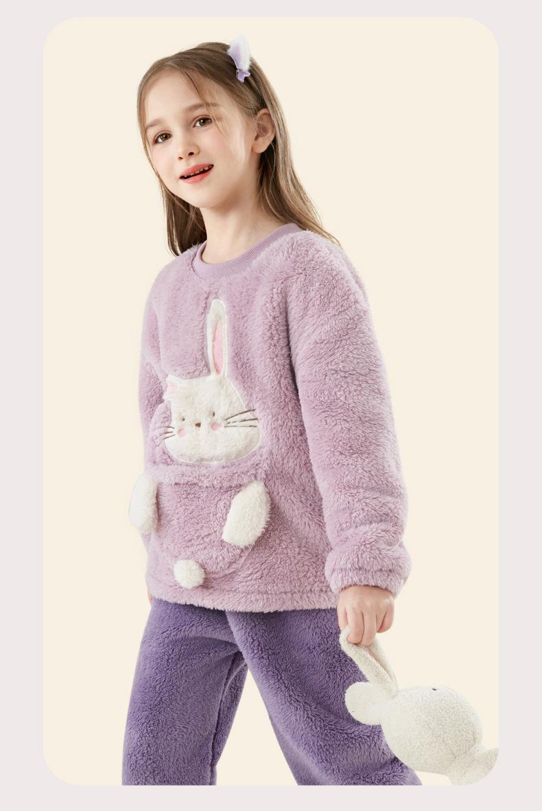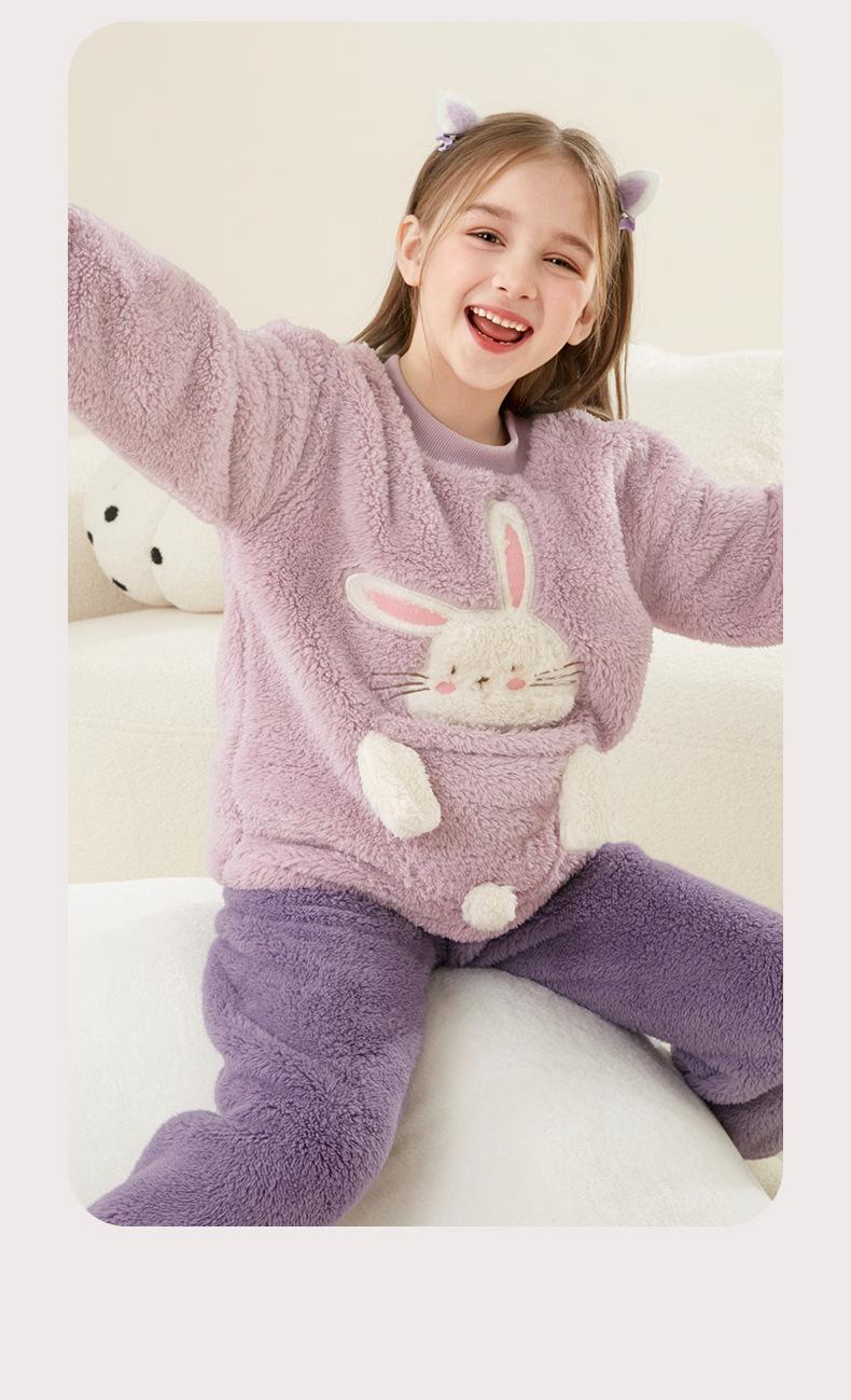 Pijamas de invierno para niñas, estilo occidental, gruesos y grandes, de forro polar coral, para el hogar, 2024