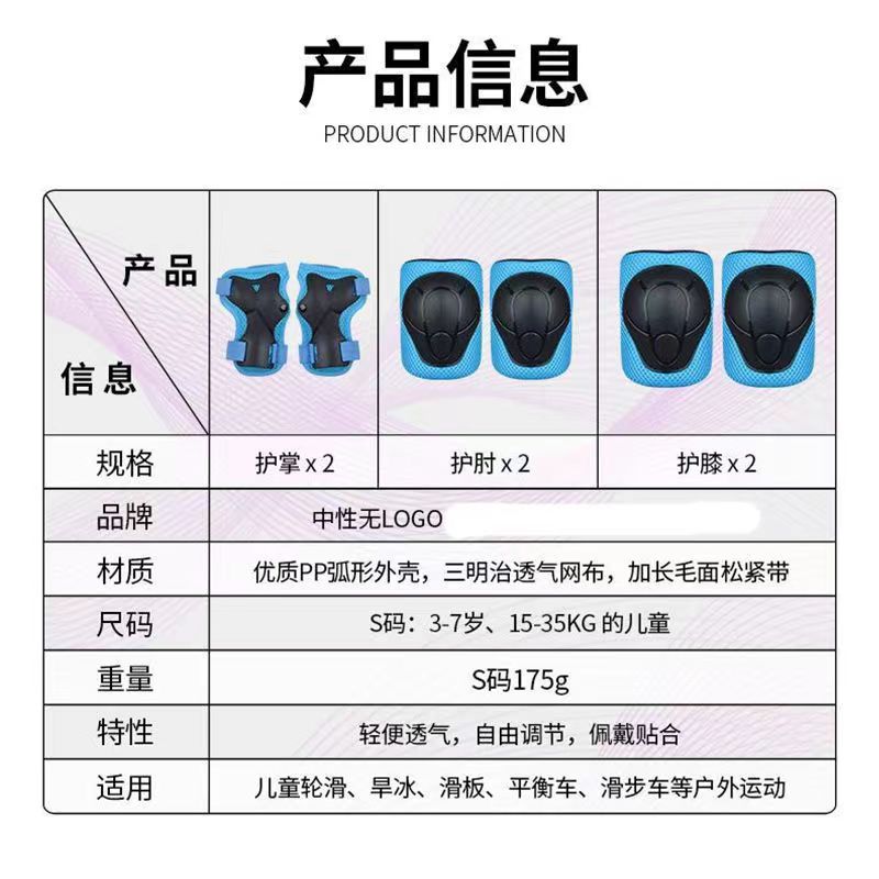 [Especificaciones del embalaje]: Juego de equipo de protección para niños de 7 piezas, un juego incluye: 2 rodilleras, 2 coderas, 2 protectores de palma y 1 casco.