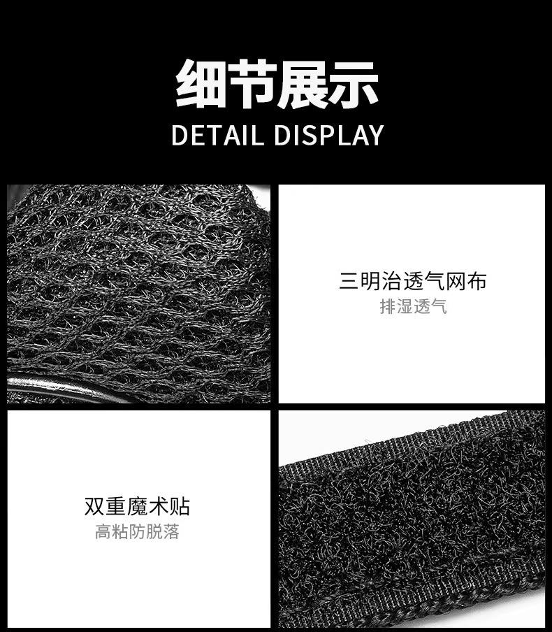 [Material]: carcasa de PP resistente a los impactos, malla transpirable tipo sándwich, banda elástica ajustable, velcro fuerte, terciopelo cómodo