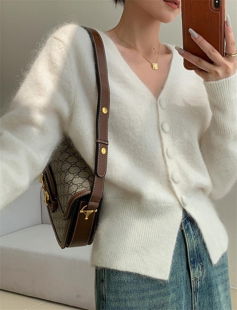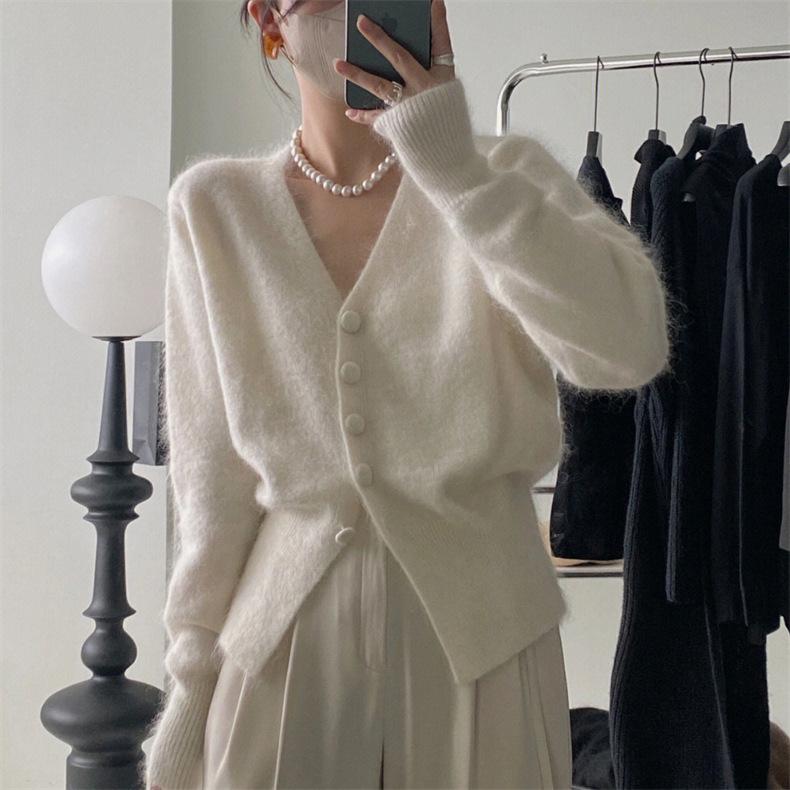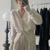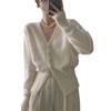 Cárdigan de punto estilo japonés de color sólido estilo occidental para mujer, otoño 2024, nuevo, holgado, con cuello en V, informal, con cintura ajustada