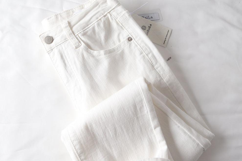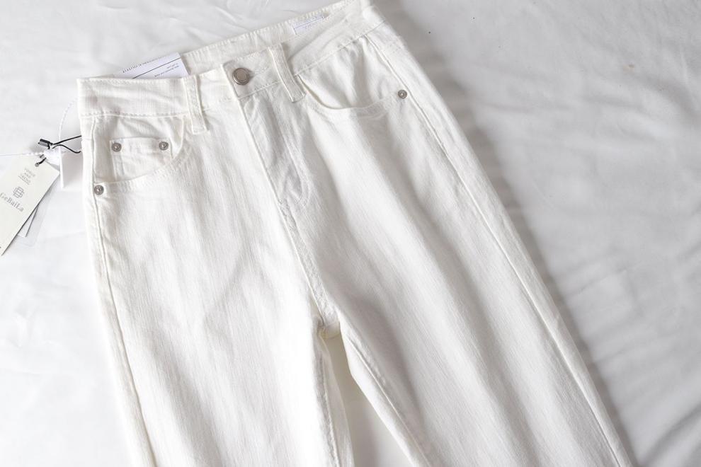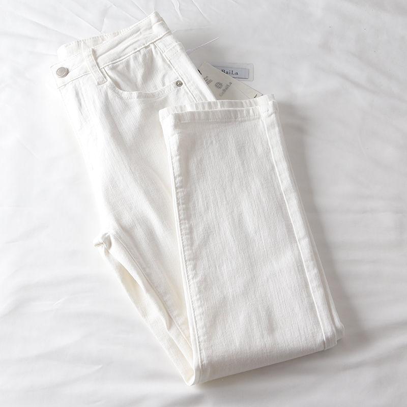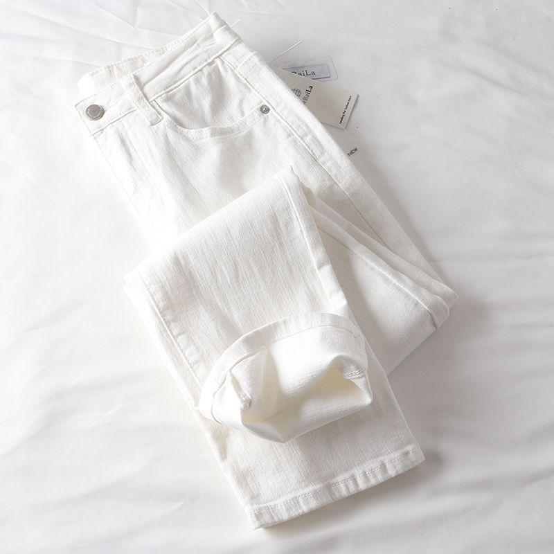 Pantalones vaqueros elásticos blancos para mujer, verano 2024, finos, sueltos, de cintura alta, ajustados, estilo harén, nabo