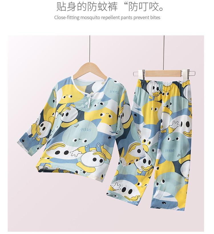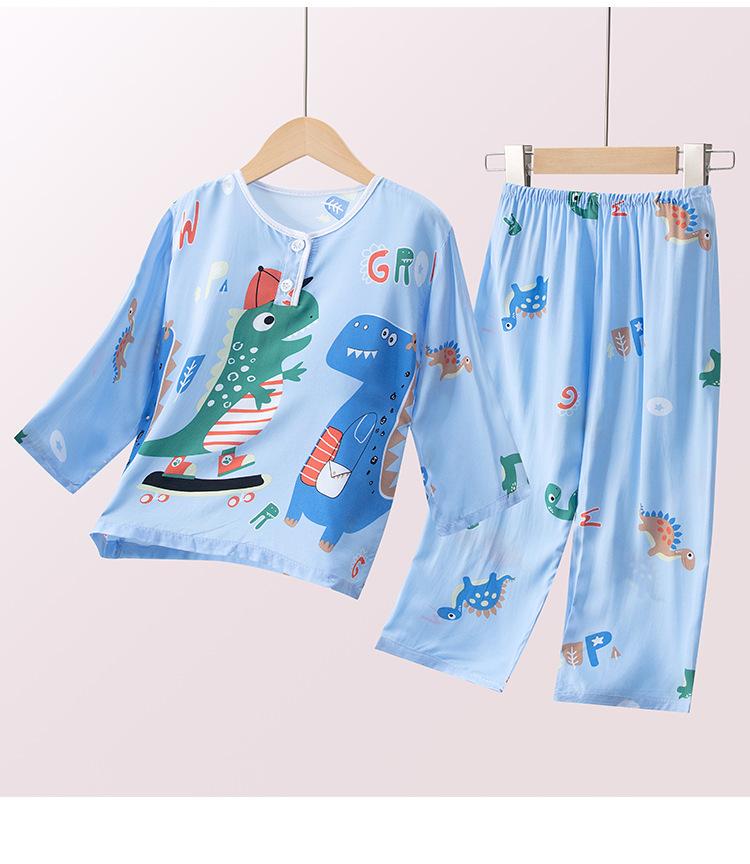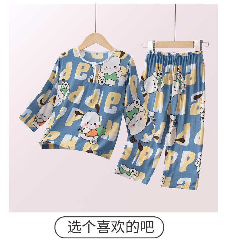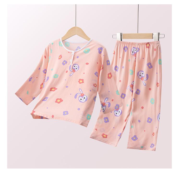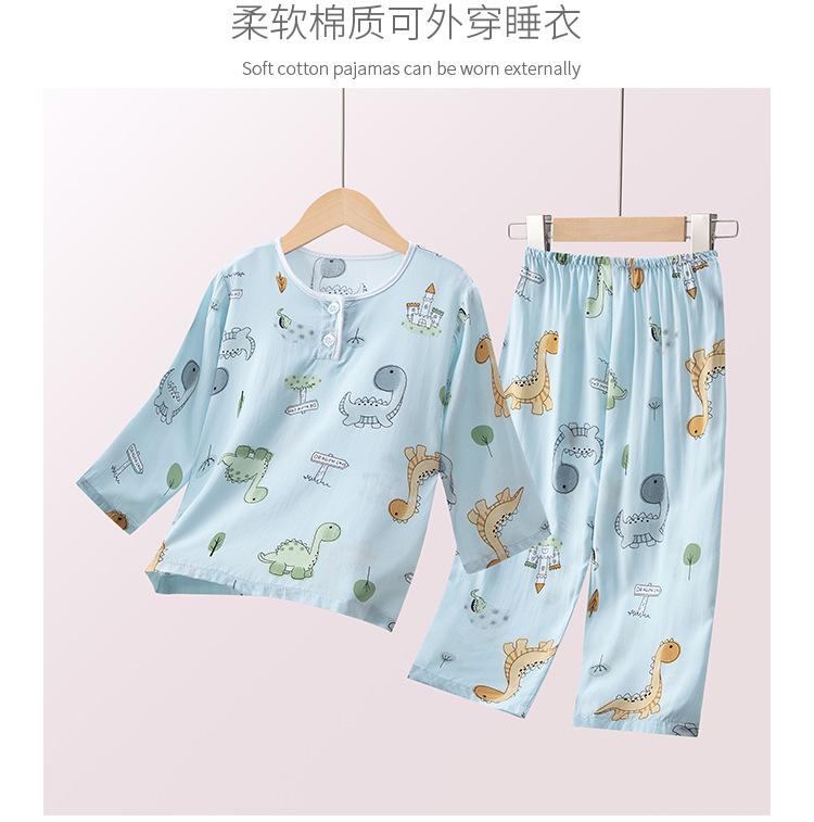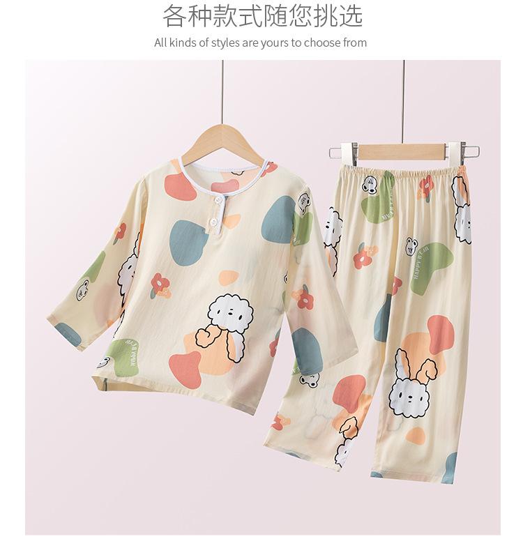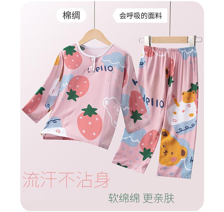 Pijamas de seda de algodón para niños de verano, ropa de casa para niñas, traje de seda fina de algodón para niños y niñas, ropa de aire acondicionado para bebés