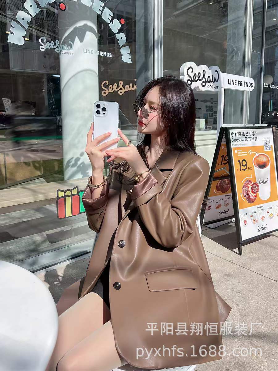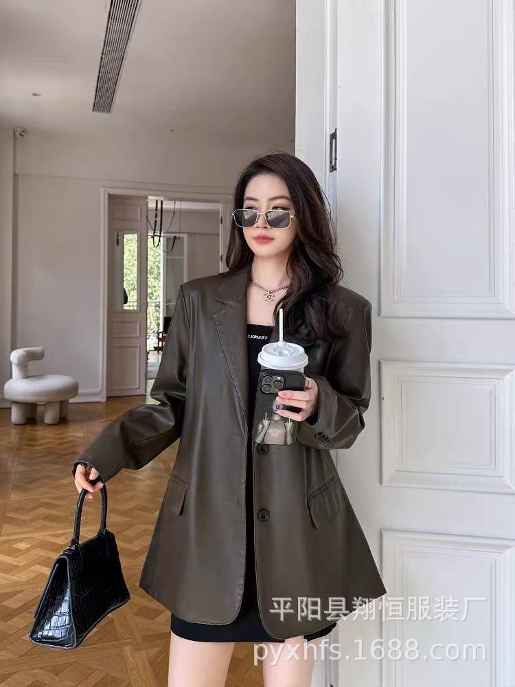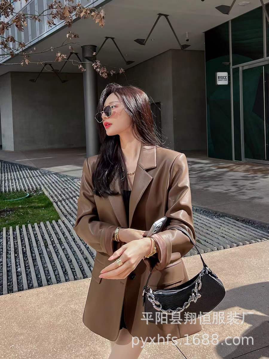 Traje de moda para mujer, abrigo de cuero de moda, otoño e invierno, nuevo estilo, para la calle, holgado, casual, chaqueta de traje