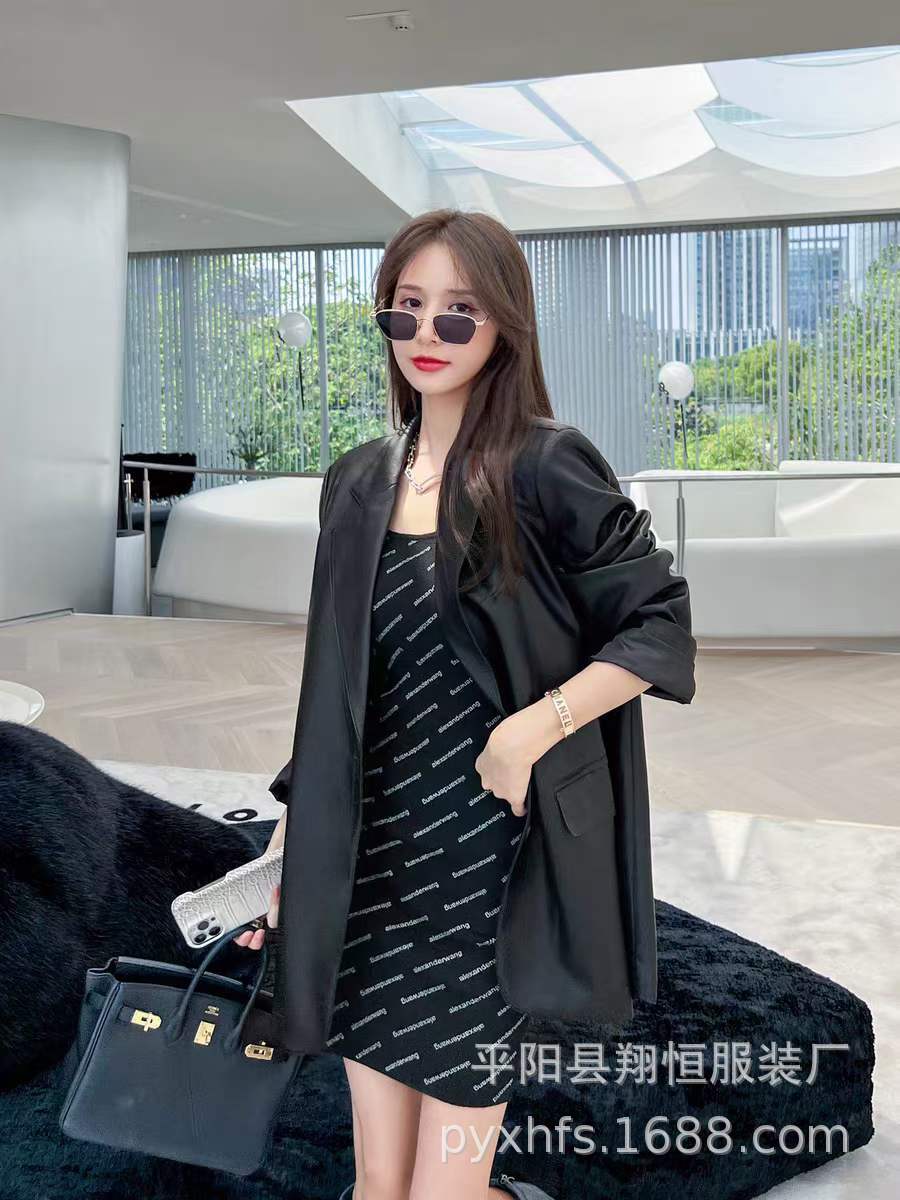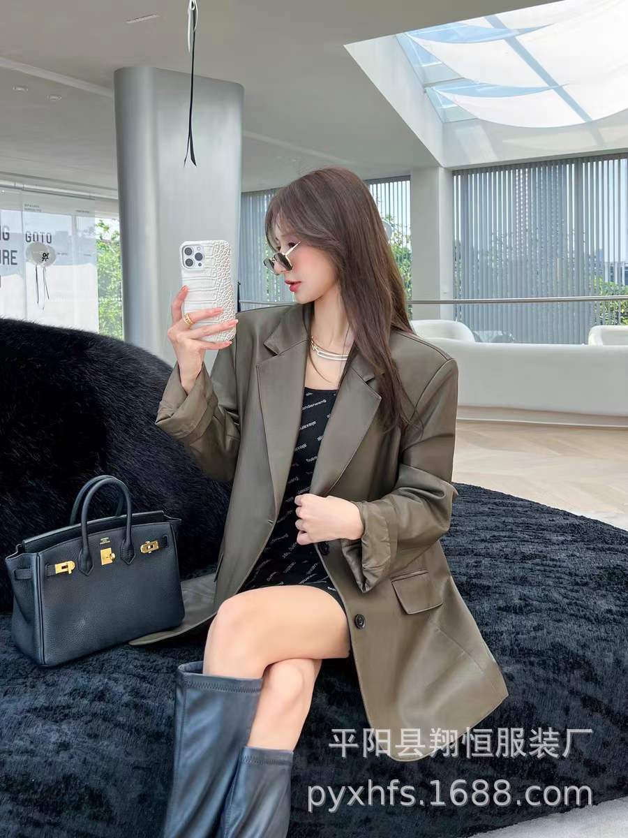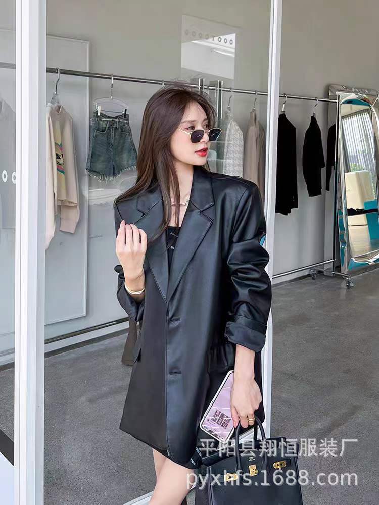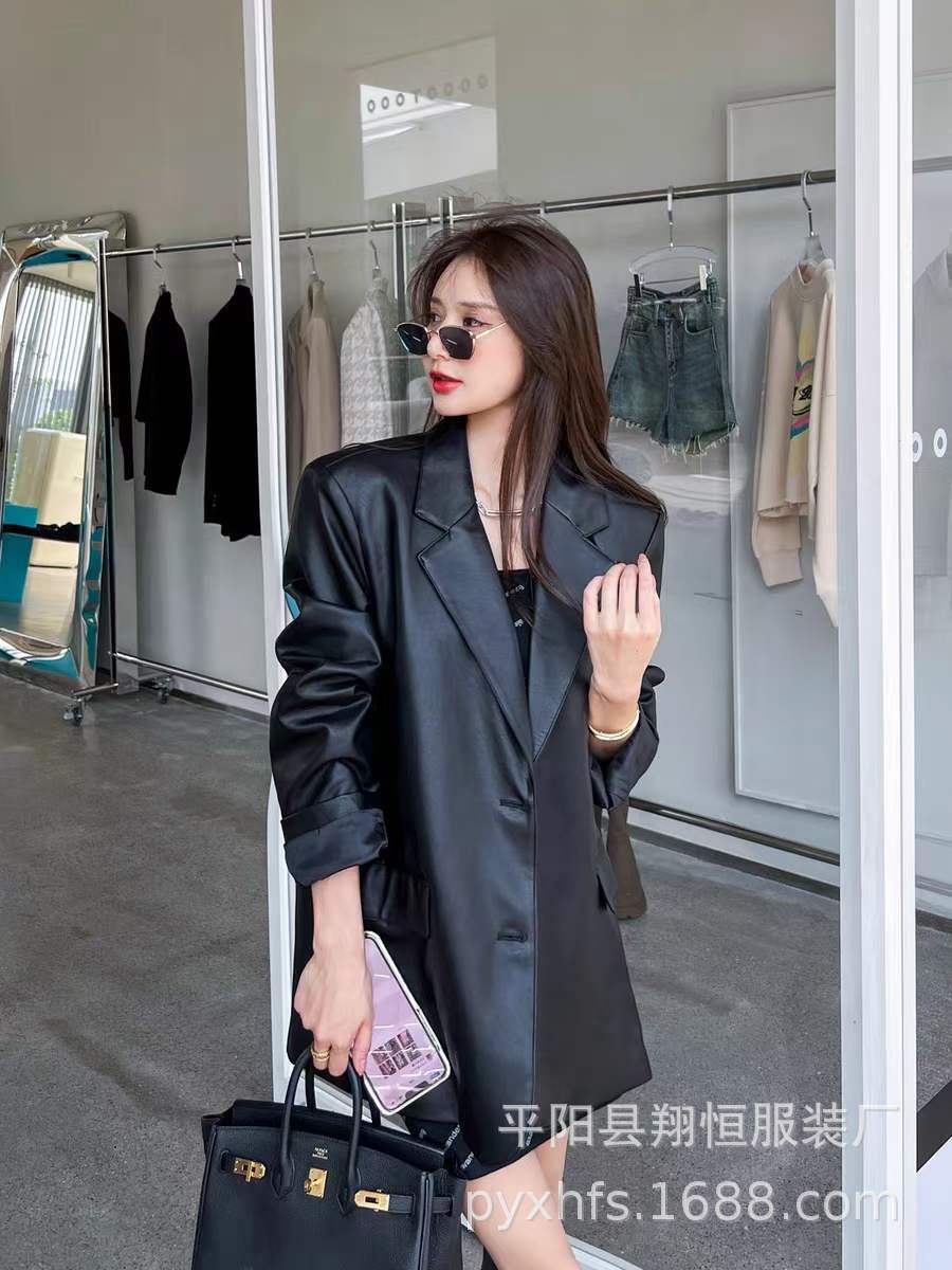 Traje de moda para mujer, abrigo de cuero de moda, otoño e invierno, nuevo estilo, para la calle, holgado, casual, chaqueta de traje