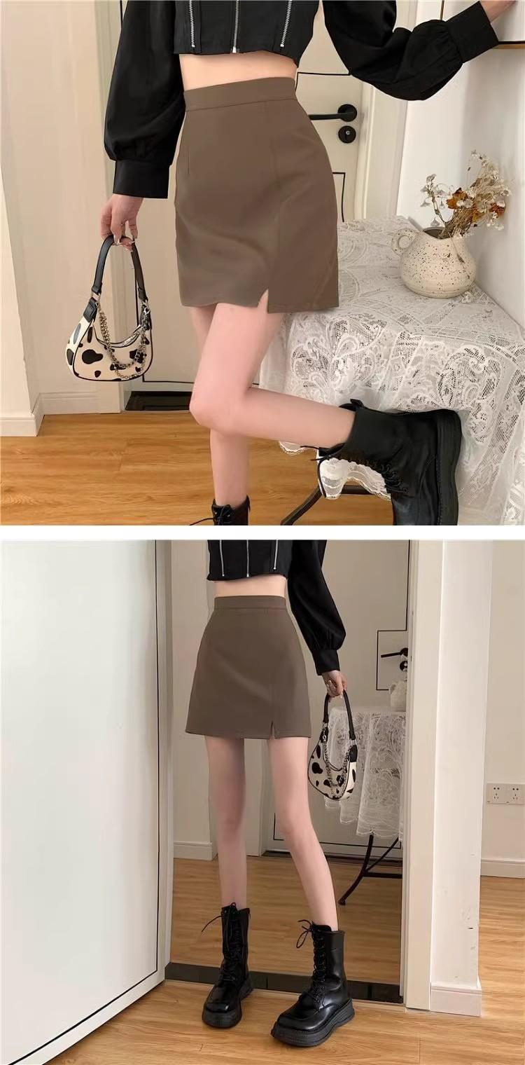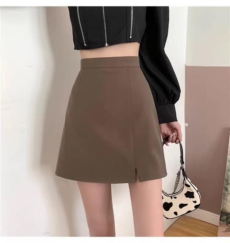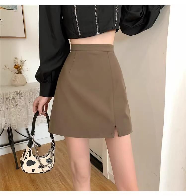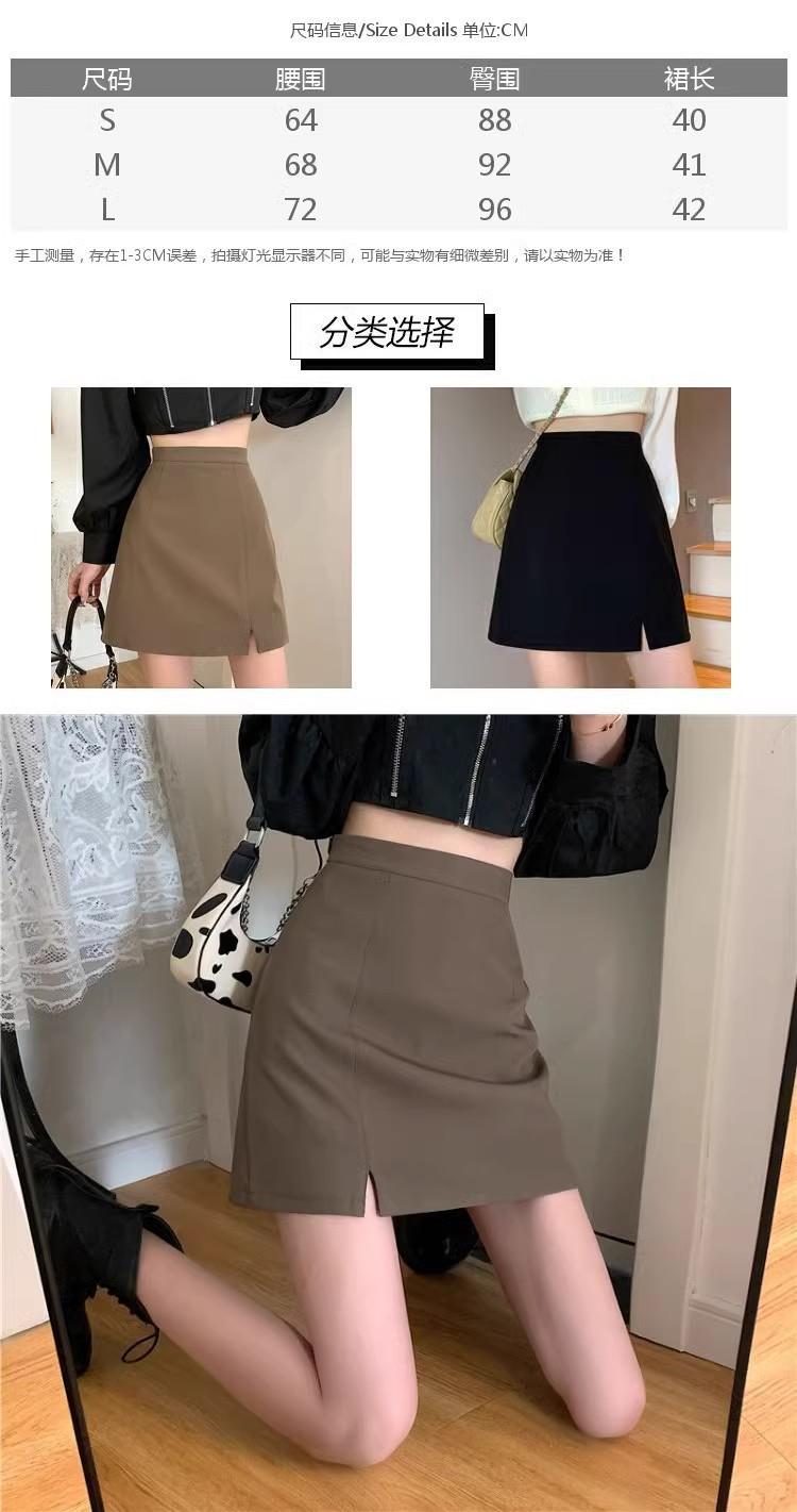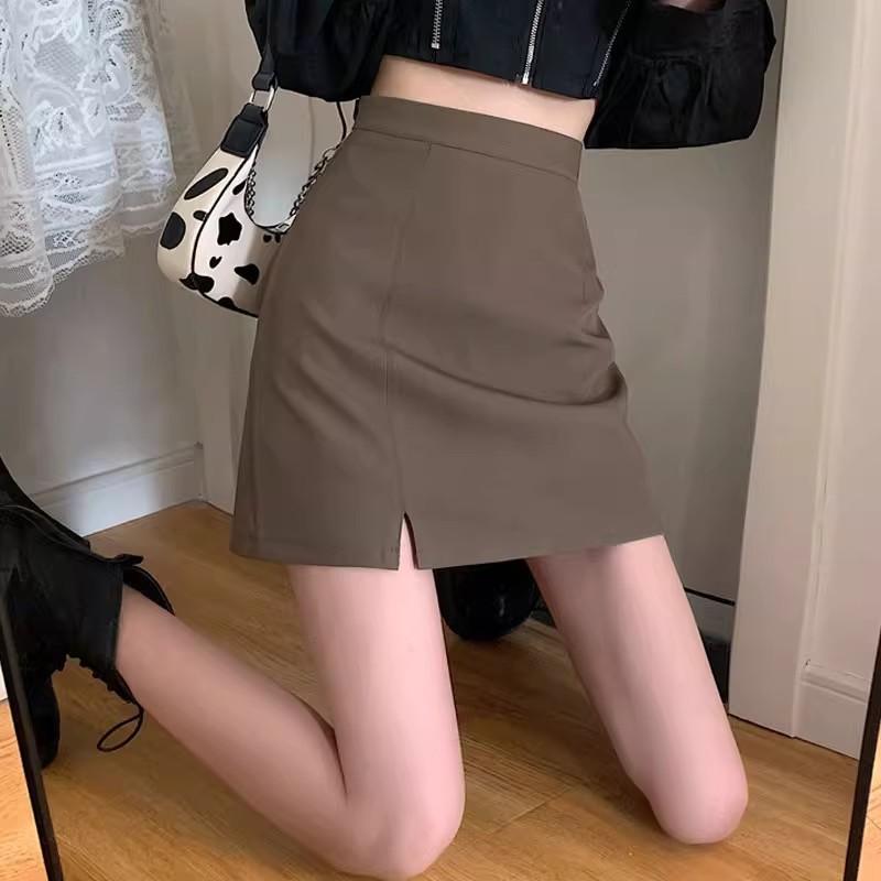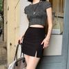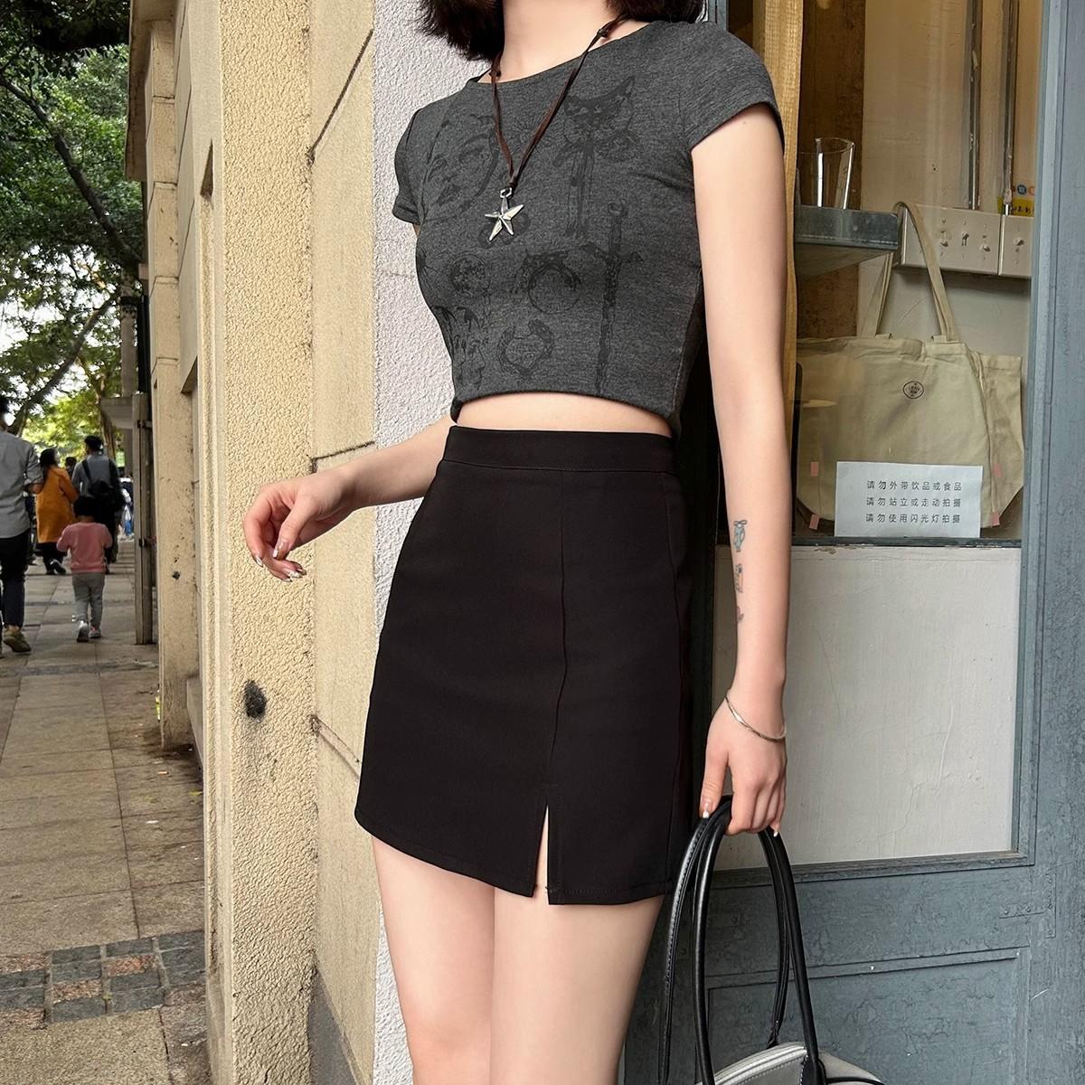 Falda negra con abertura estilo retro americano SNRT para mujer, de primavera y verano, cintura alta, corte A, sexy, combinable con todo
