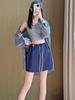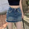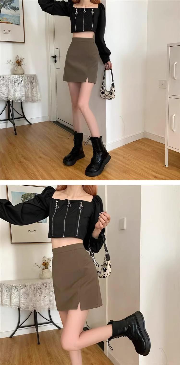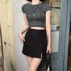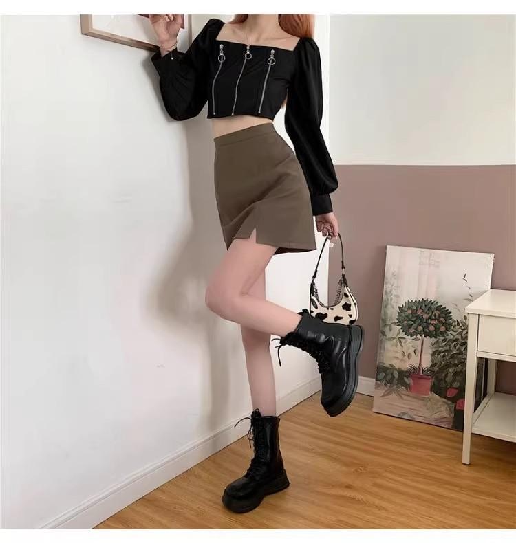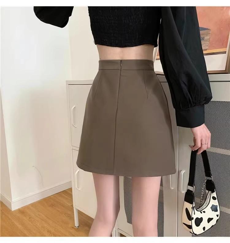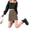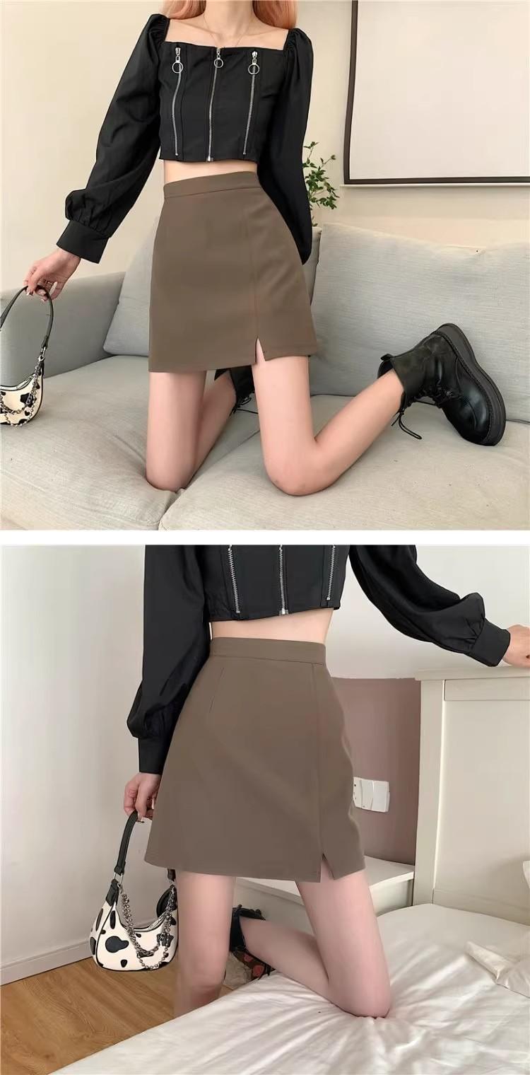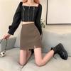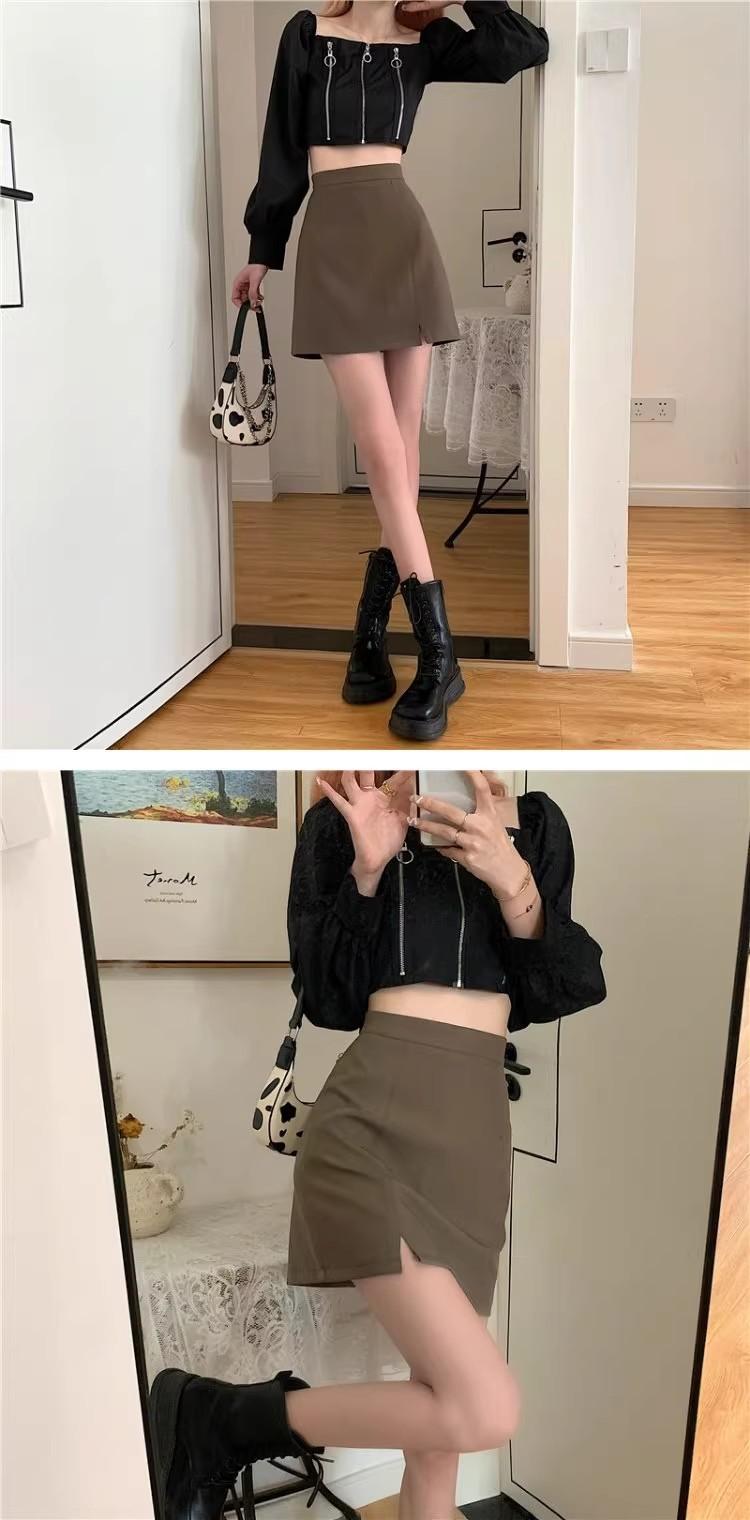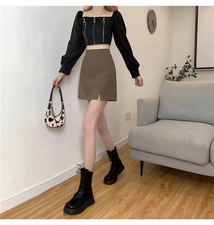 Falda negra con abertura estilo retro americano SNRT para mujer, de primavera y verano, cintura alta, corte A, sexy, combinable con todo