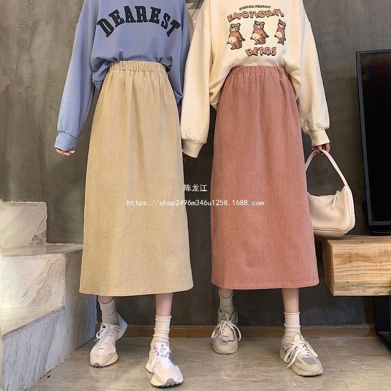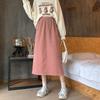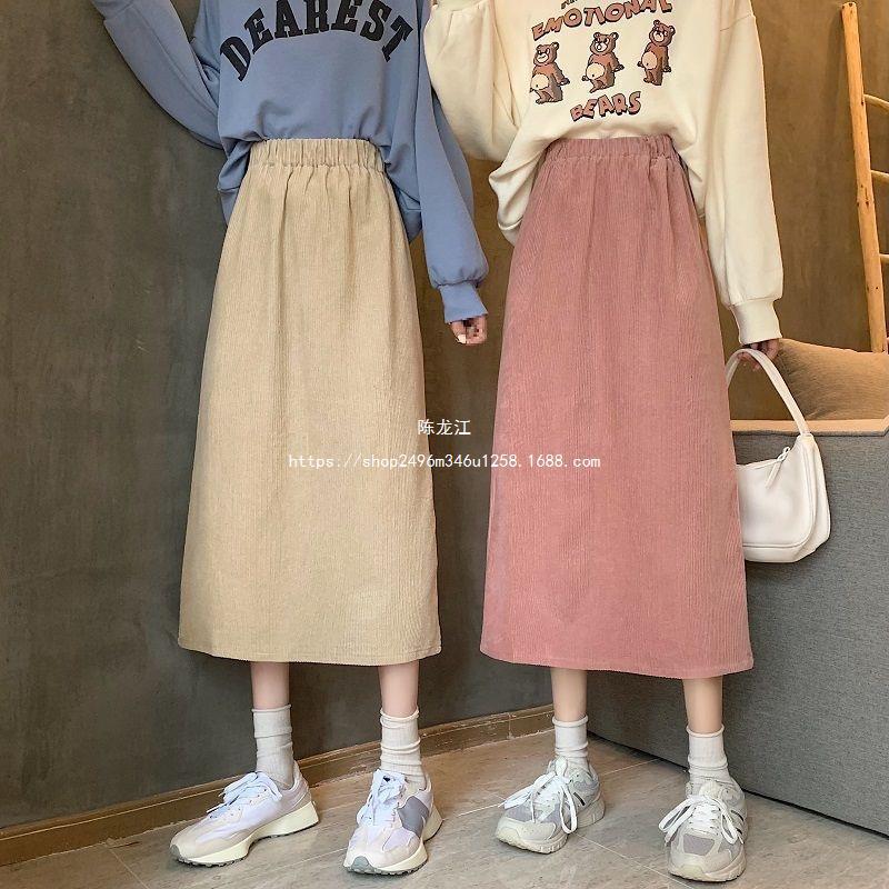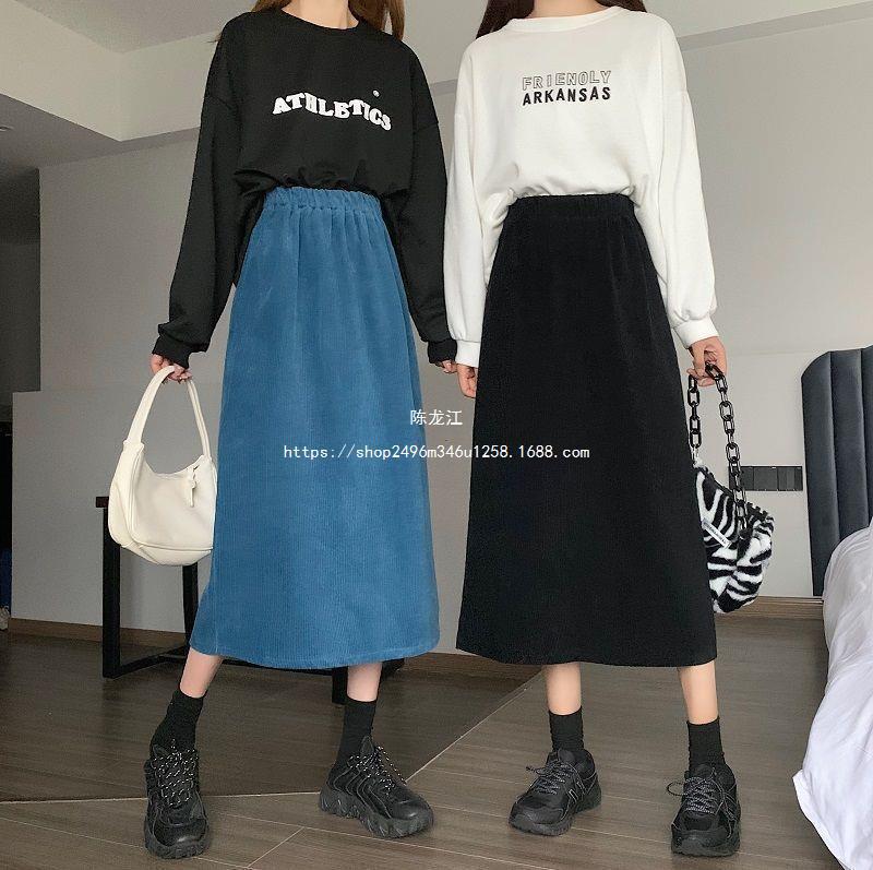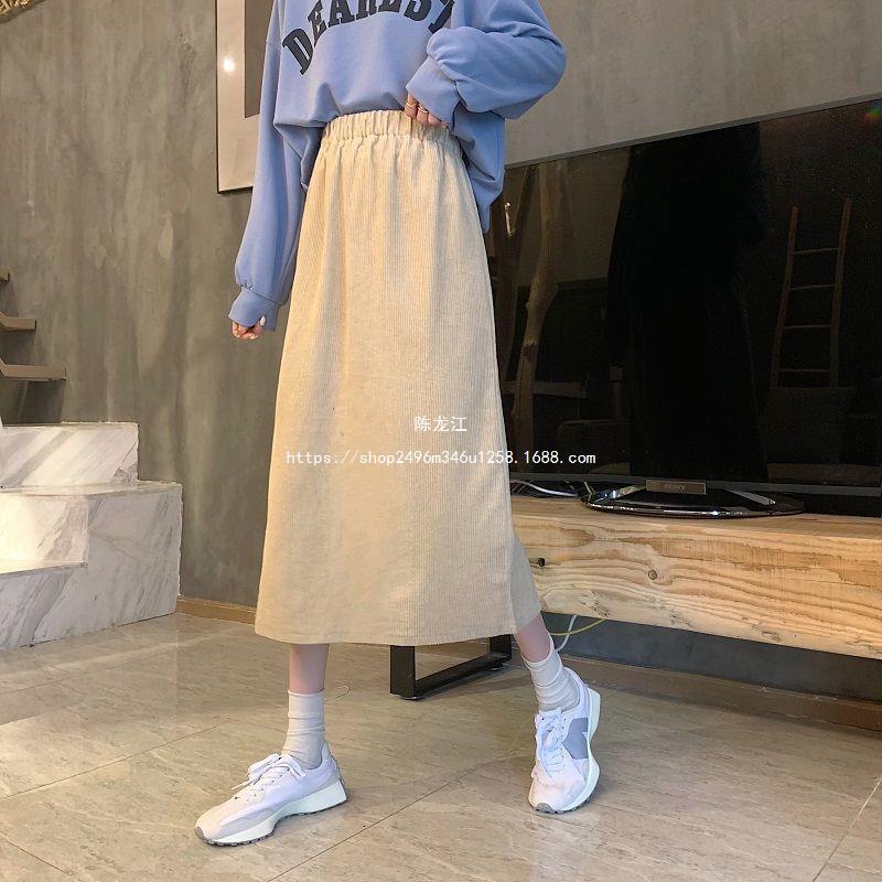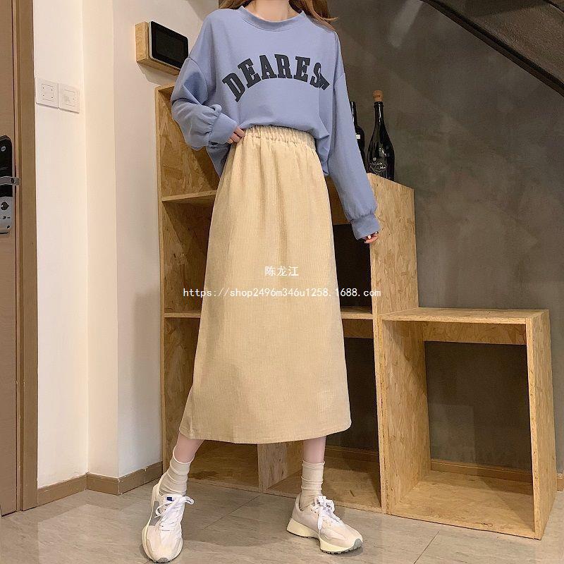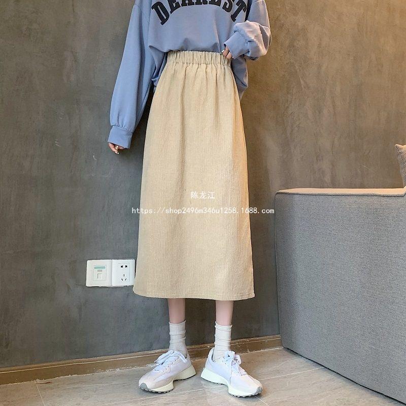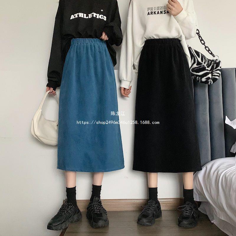Falda de cintura alta de talla grande con corte A y abertura para mujer, falda negra de cadera para chica gordita, falda de pana de longitud media para otoño e invierno 2023
