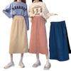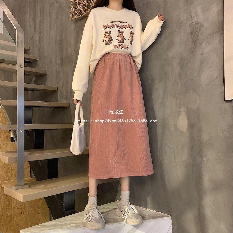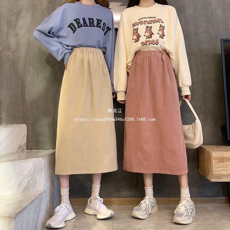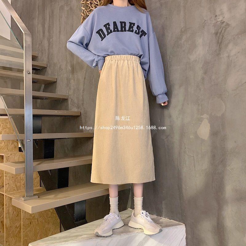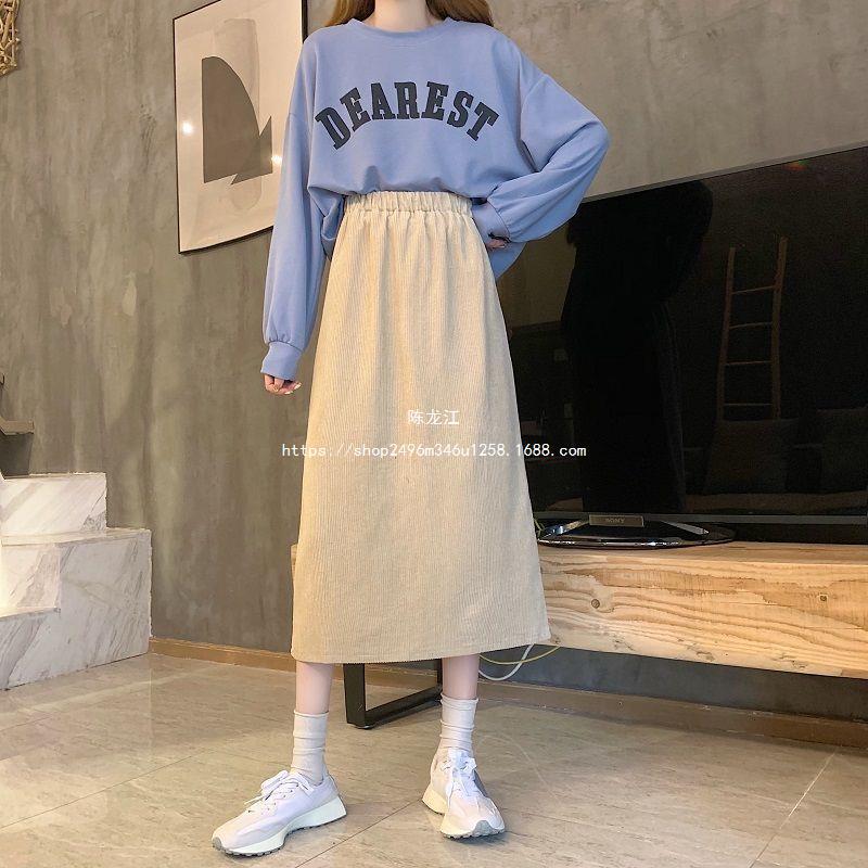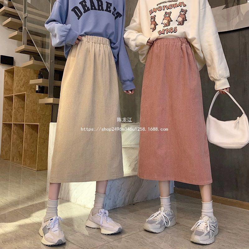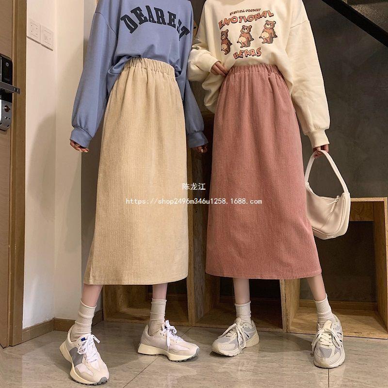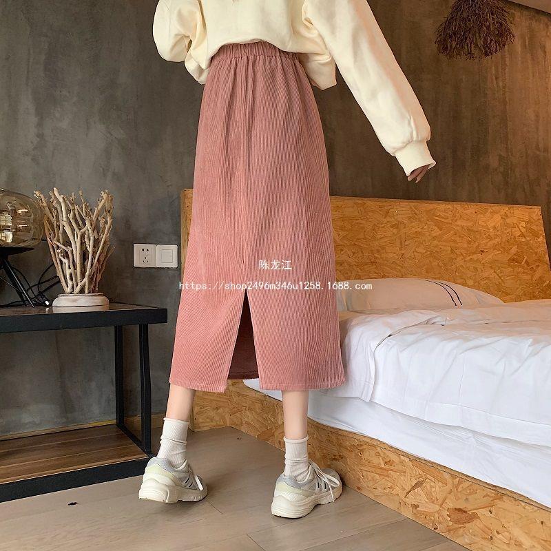 Falda de cintura alta de talla grande con corte A y abertura para mujer, falda negra de cadera para chica gordita, falda de pana de longitud media para otoño e invierno 2023
