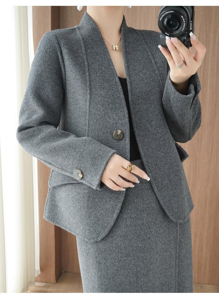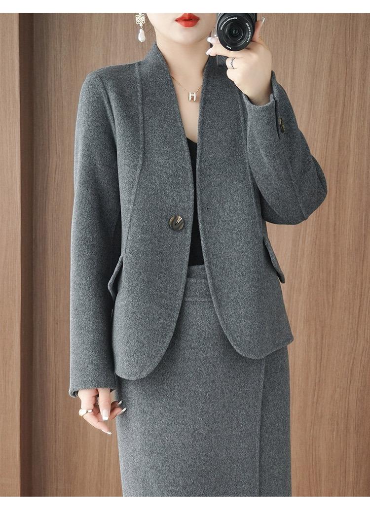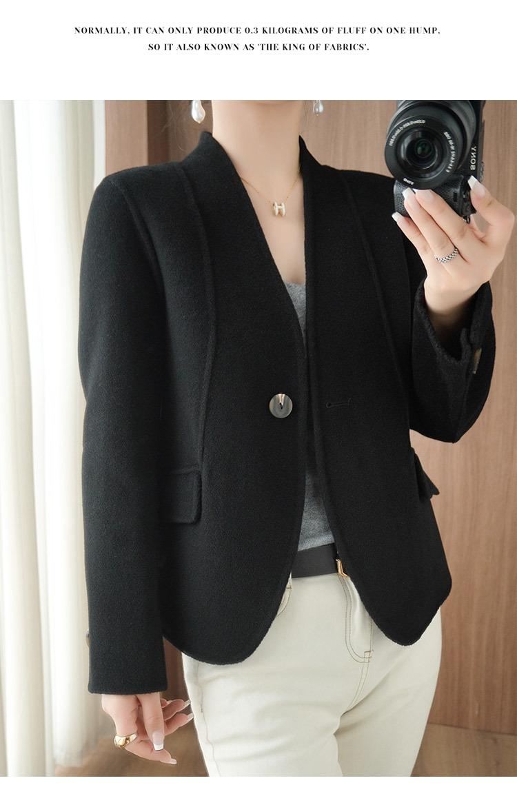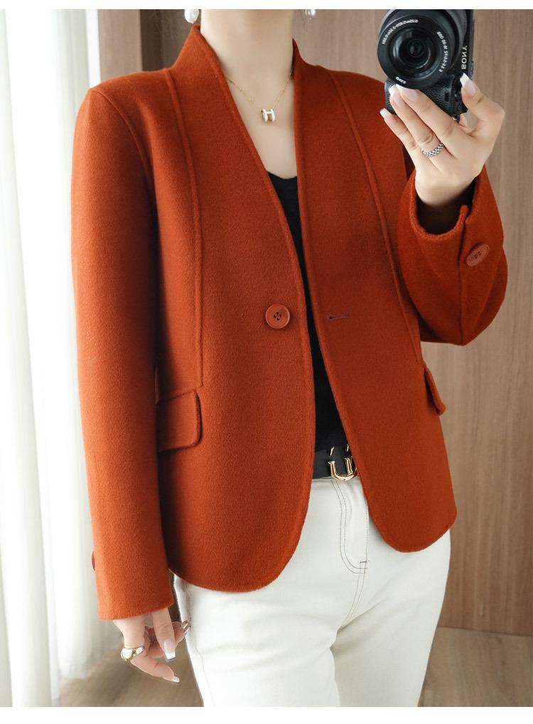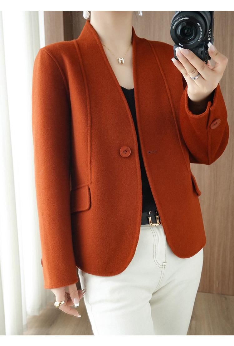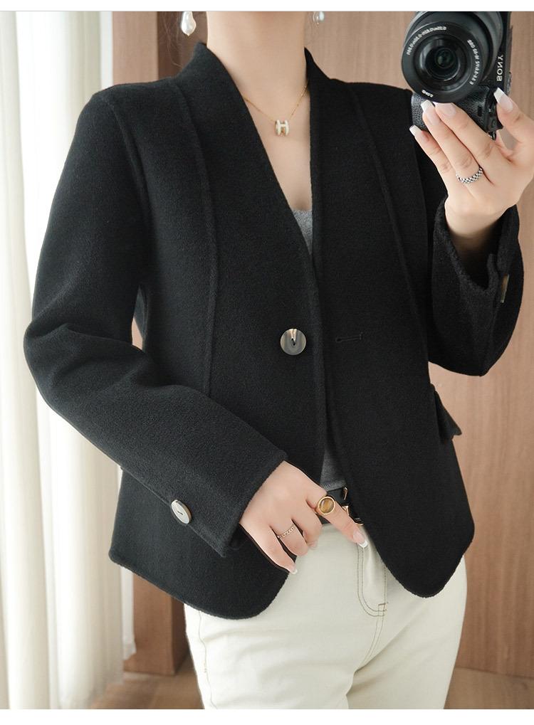 Traje sencillo de un botón Chaqueta de lana Otoño e Invierno Elegante para mujer Nuevo Suelto Pequeño Abrigo de lana de doble cara