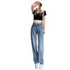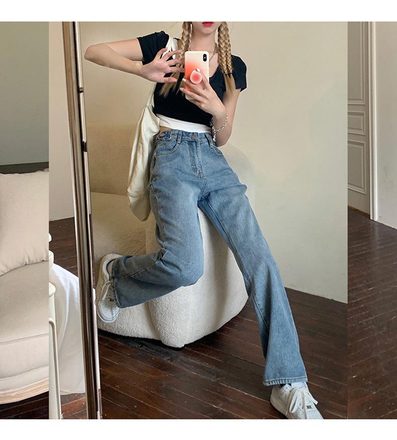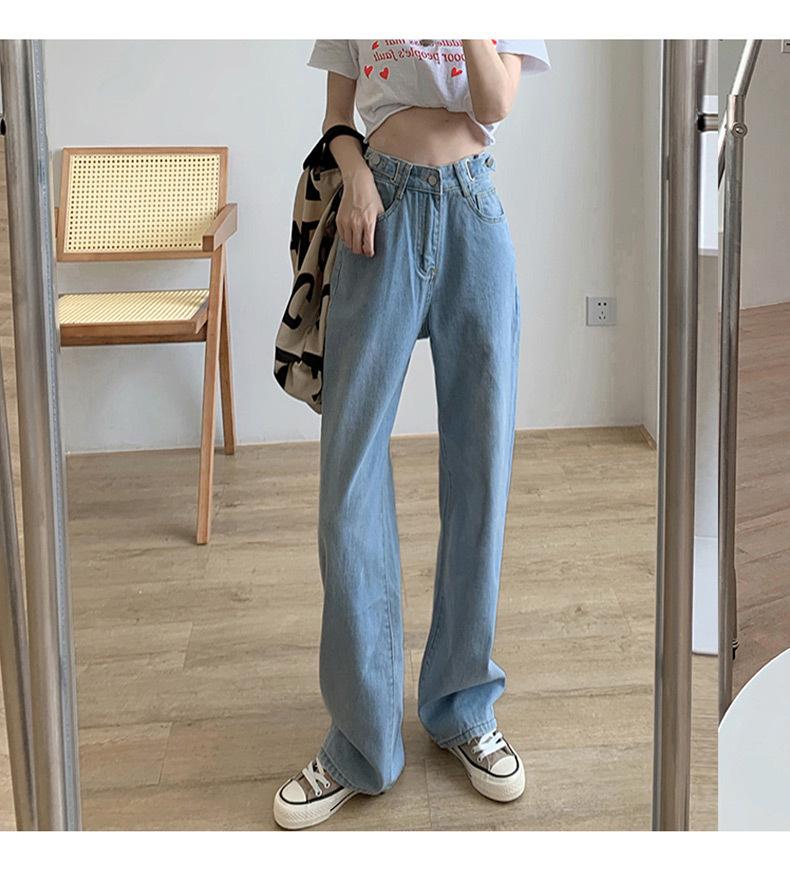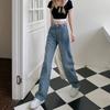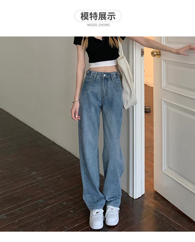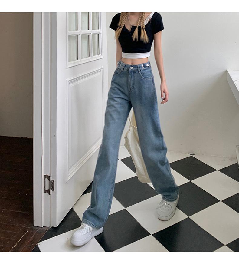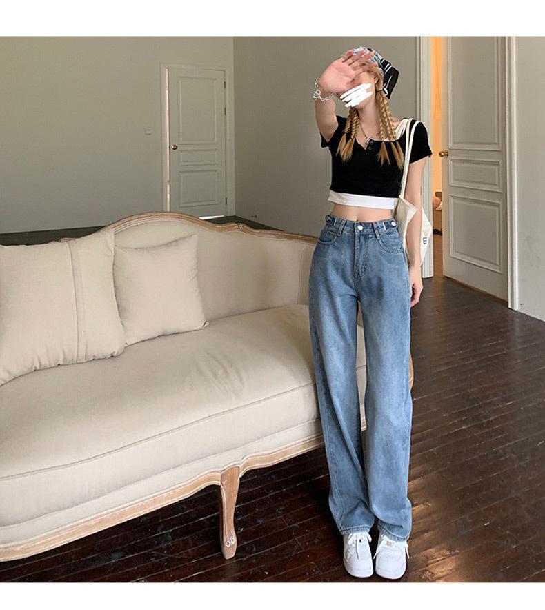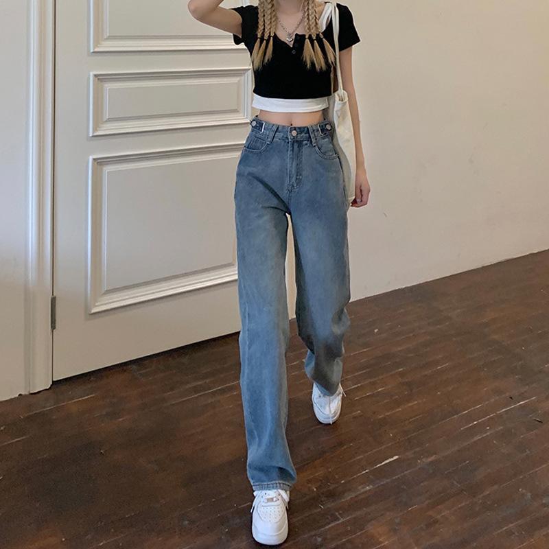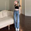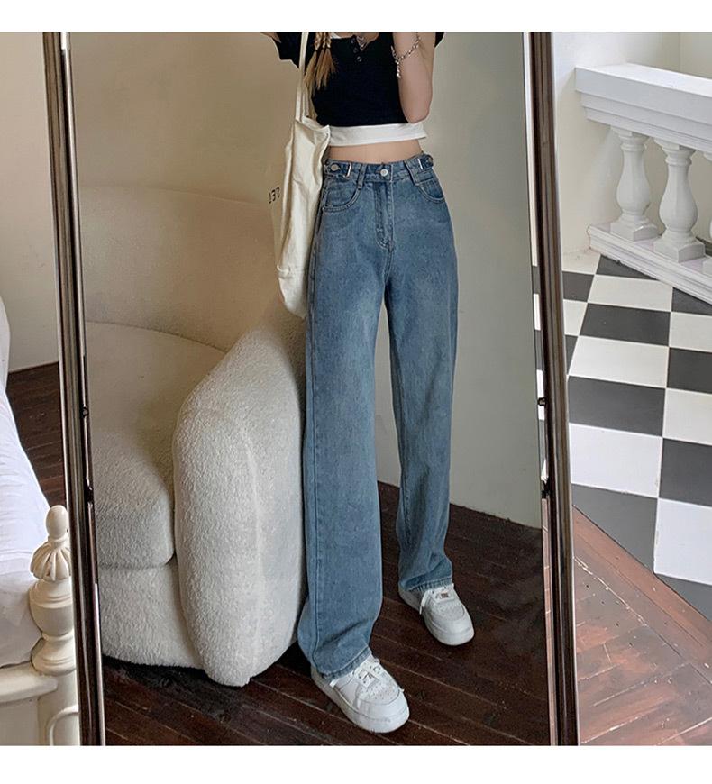 Pantalones vaqueros rectos de cintura alta para mujer, primavera y otoño, estilo americano, pantalones cortos de pierna ancha, aspecto ajustado, pantalones largos hasta el suelo para mujer