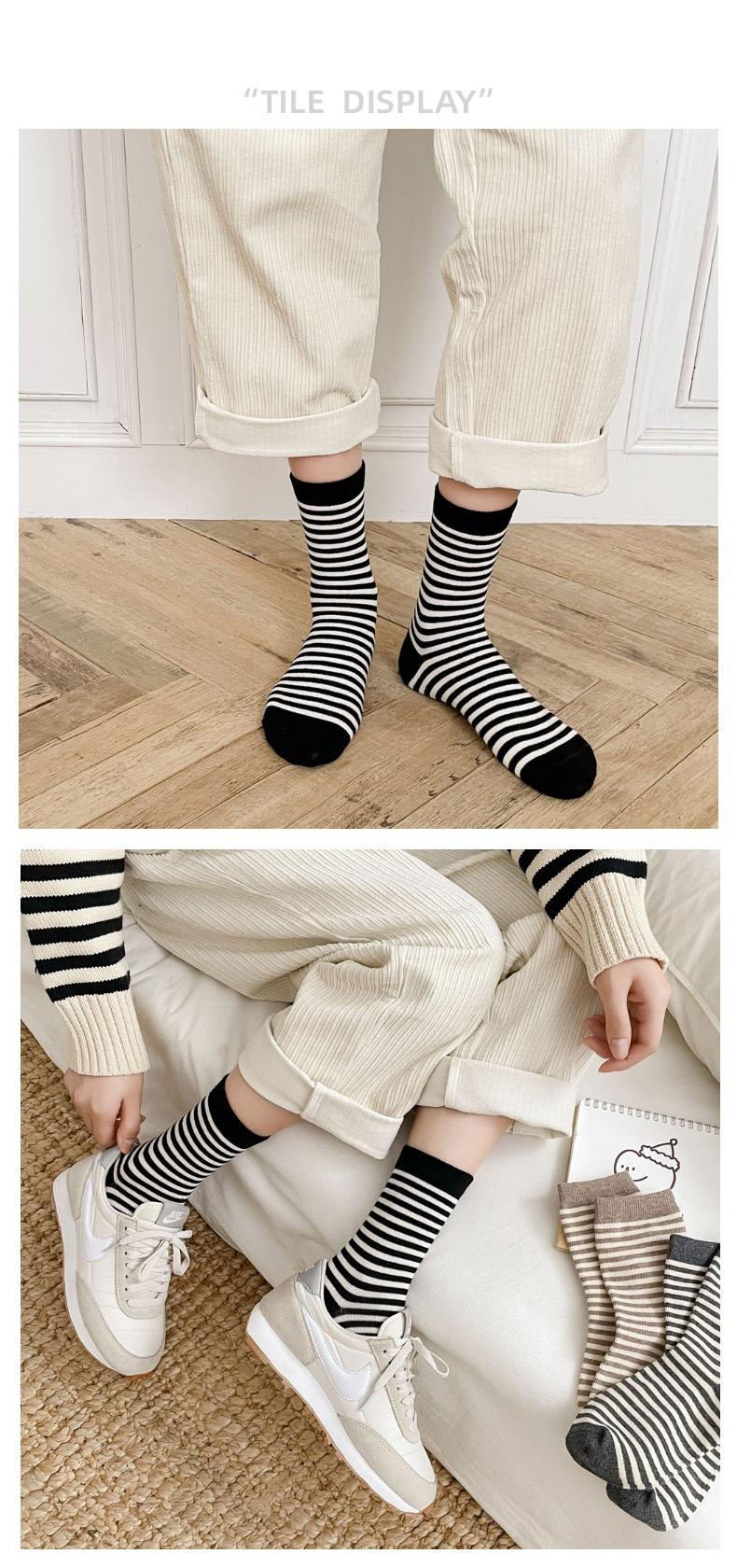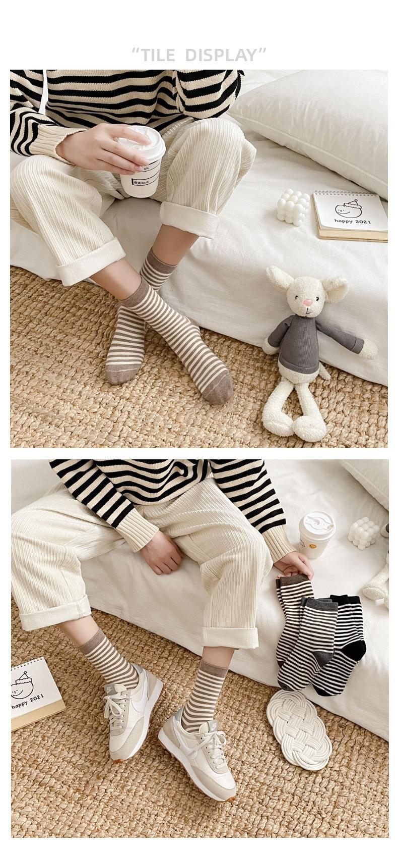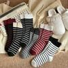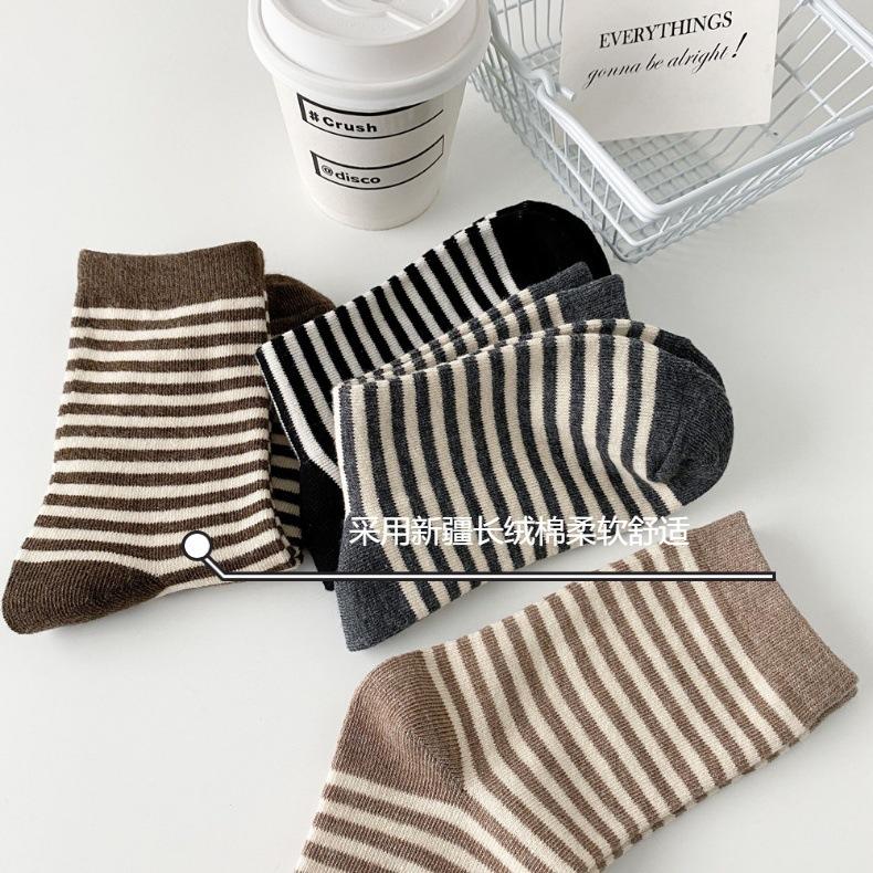 Calcetines de algodón a rayas de color café para mujer, hasta media pantorrilla, estilo japonés, populares, de red roja, cálidos, venta al por mayor, para otoño e invierno