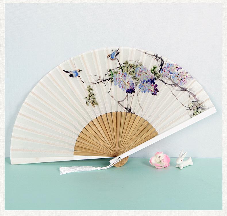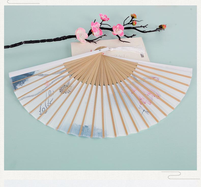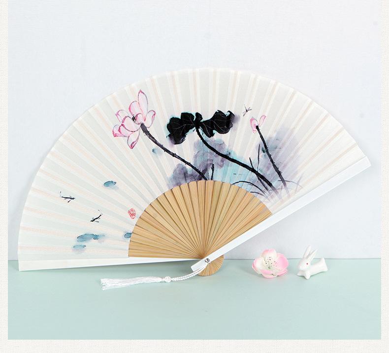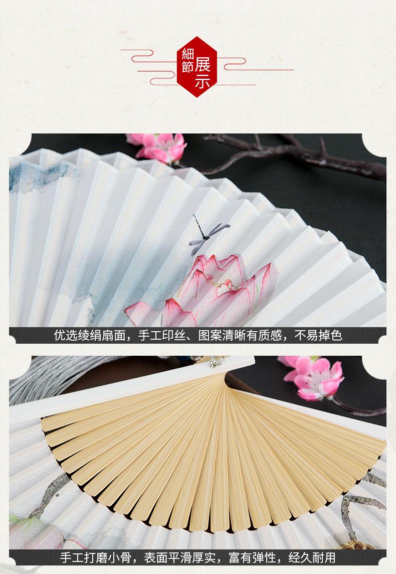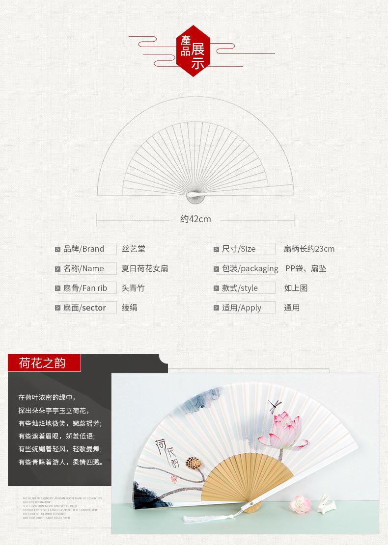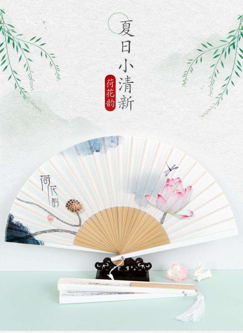 Abanico plegable de verano para mujer, estilo chino antiguo retro, abanico plegable portátil clásico de loto, regalo creativo