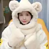 Gorro de oso bufanda de felpa para mujer invierno lindo guantes de invierno de tres piezas con capucha bufanda integrada otoño e invierno cálido