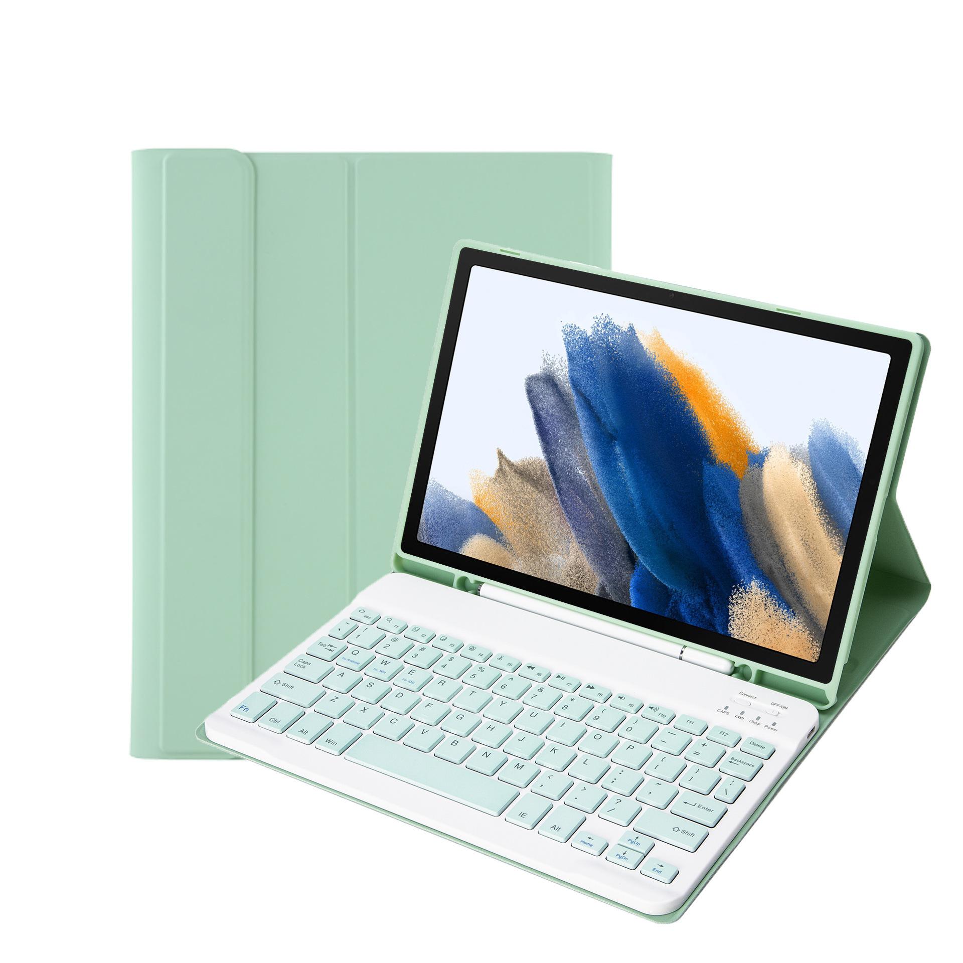 Tableta aplicable: Para Samsung Tab A8 2021 (SM-X205/X200) Carcasa de TPU color caramelo ranura para lápiz funda de cuero con teclado Bluetooth