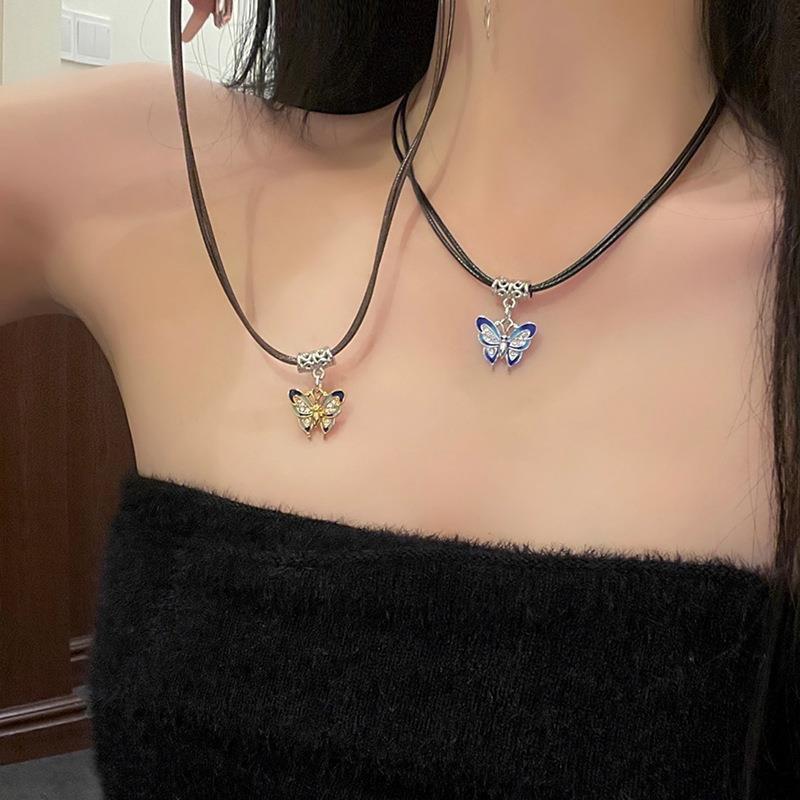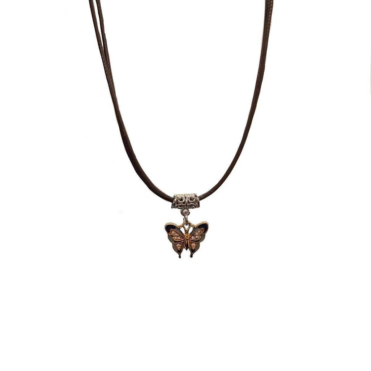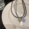 Collar retro de cuero con cuerda y mariposa para mujer, nuevo, sensación de verano, cadena doble para clavícula, dulce, genial, chicas calientes, gargantilla, marea, regalo