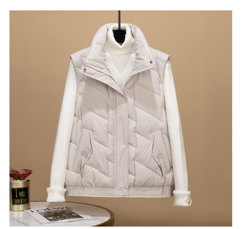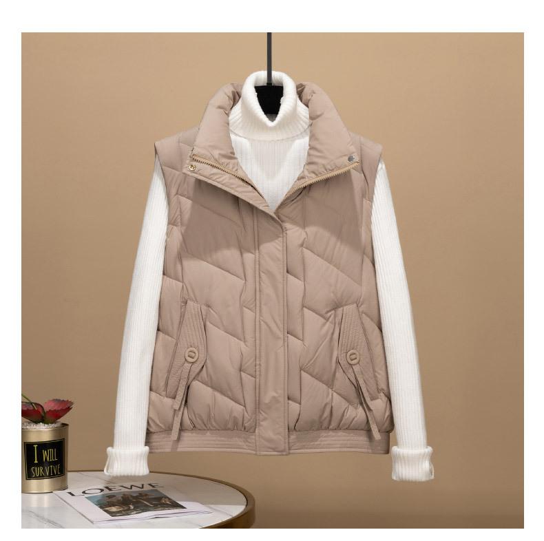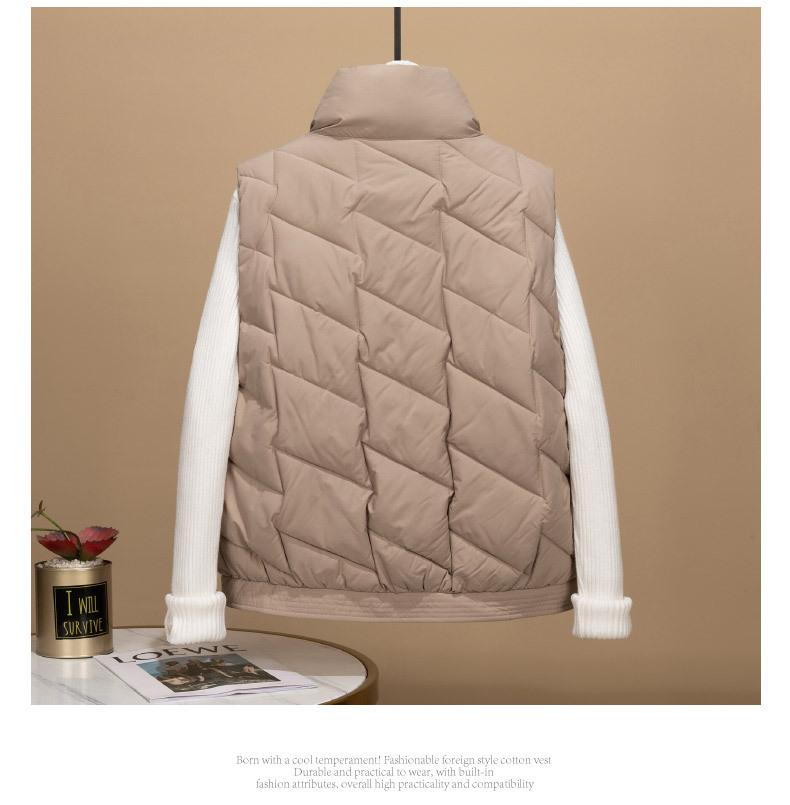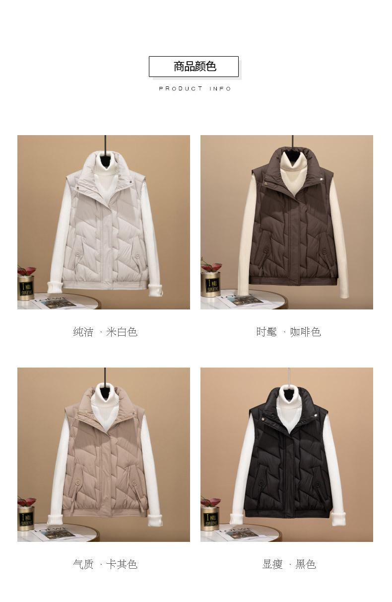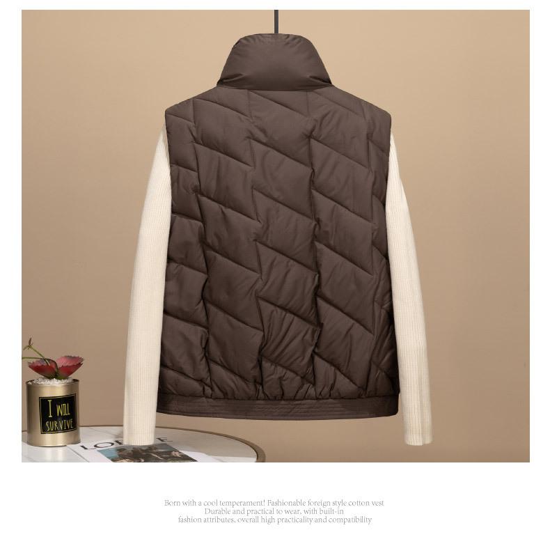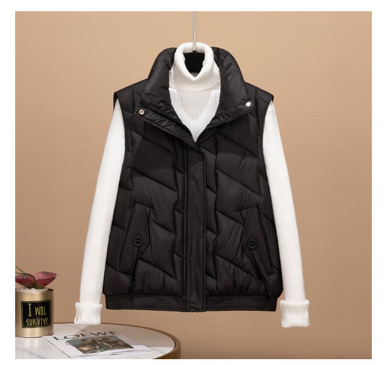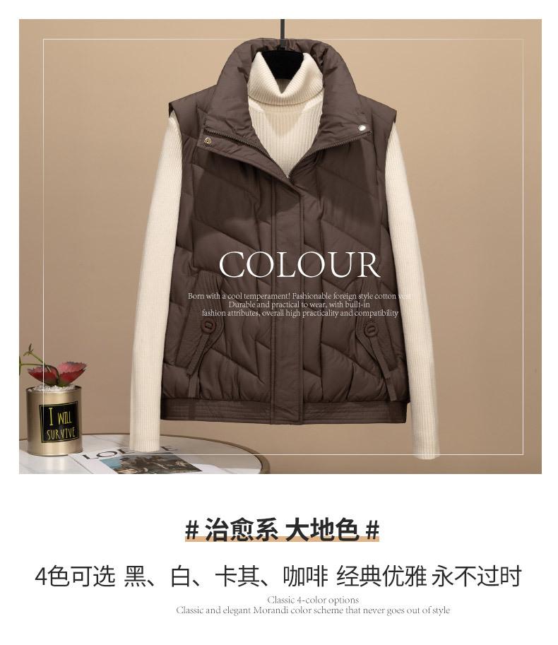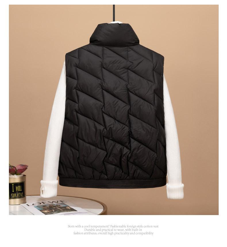 Transfronterizo para otoño e invierno chaleco corto para mujer chaleco de algodón suelto Europa y Estados Unidos color sólido cuello alto abrigo chaleco marea