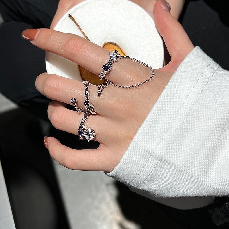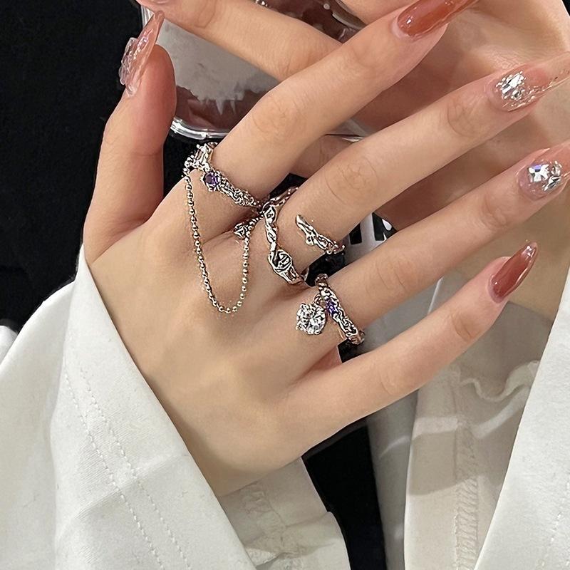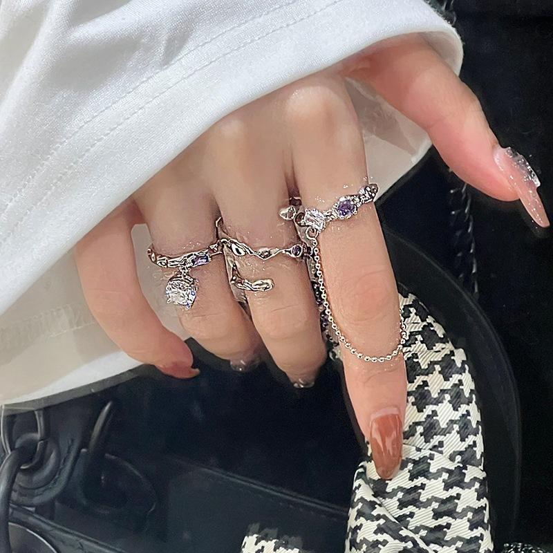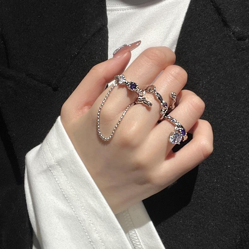 Anillo de Borla de Zirconia Púrpura para Mujer Moda Retro Elegante Simple Plata S925 Anillo Abierto Hip-Hop Anillo de Dedo Trendy