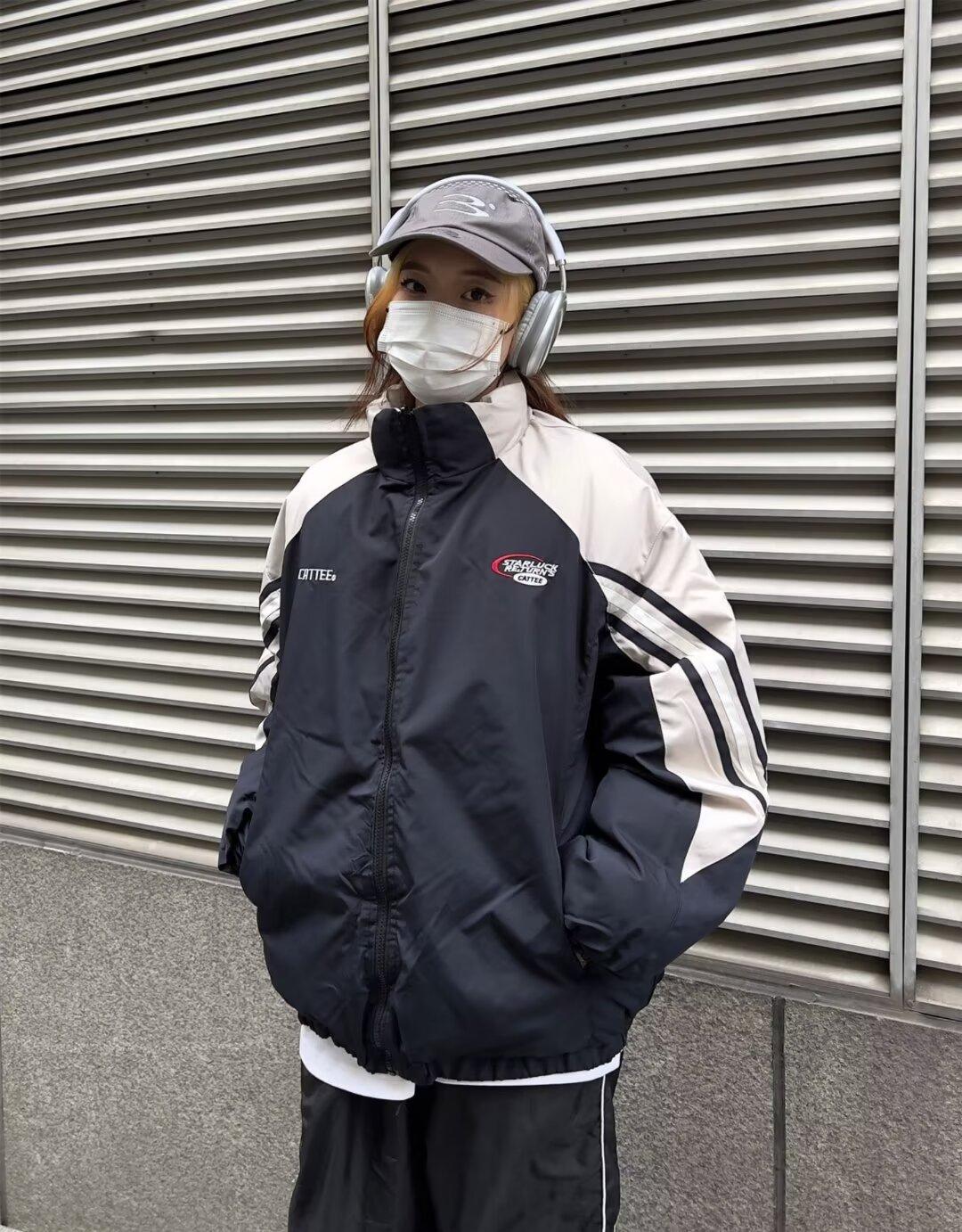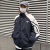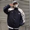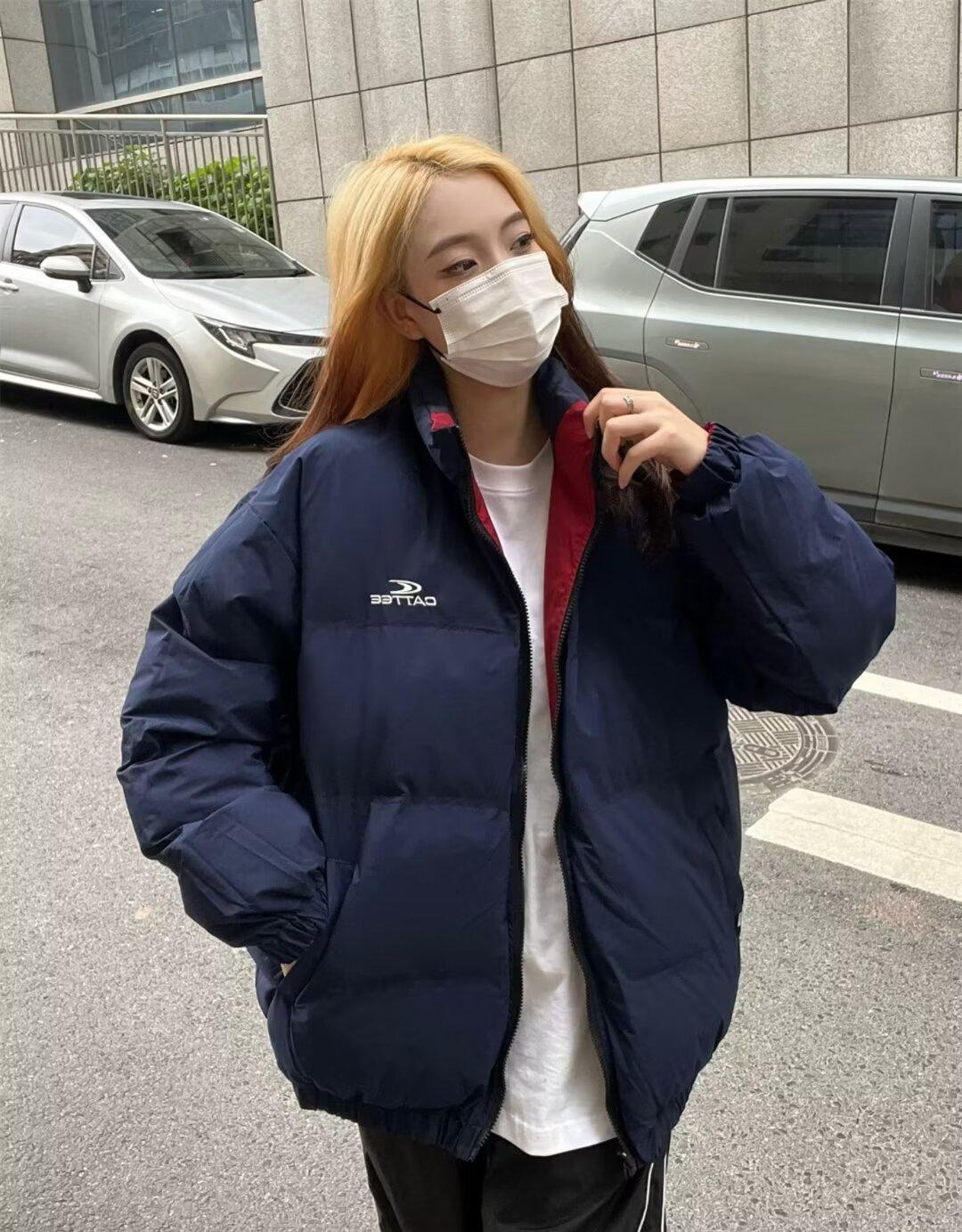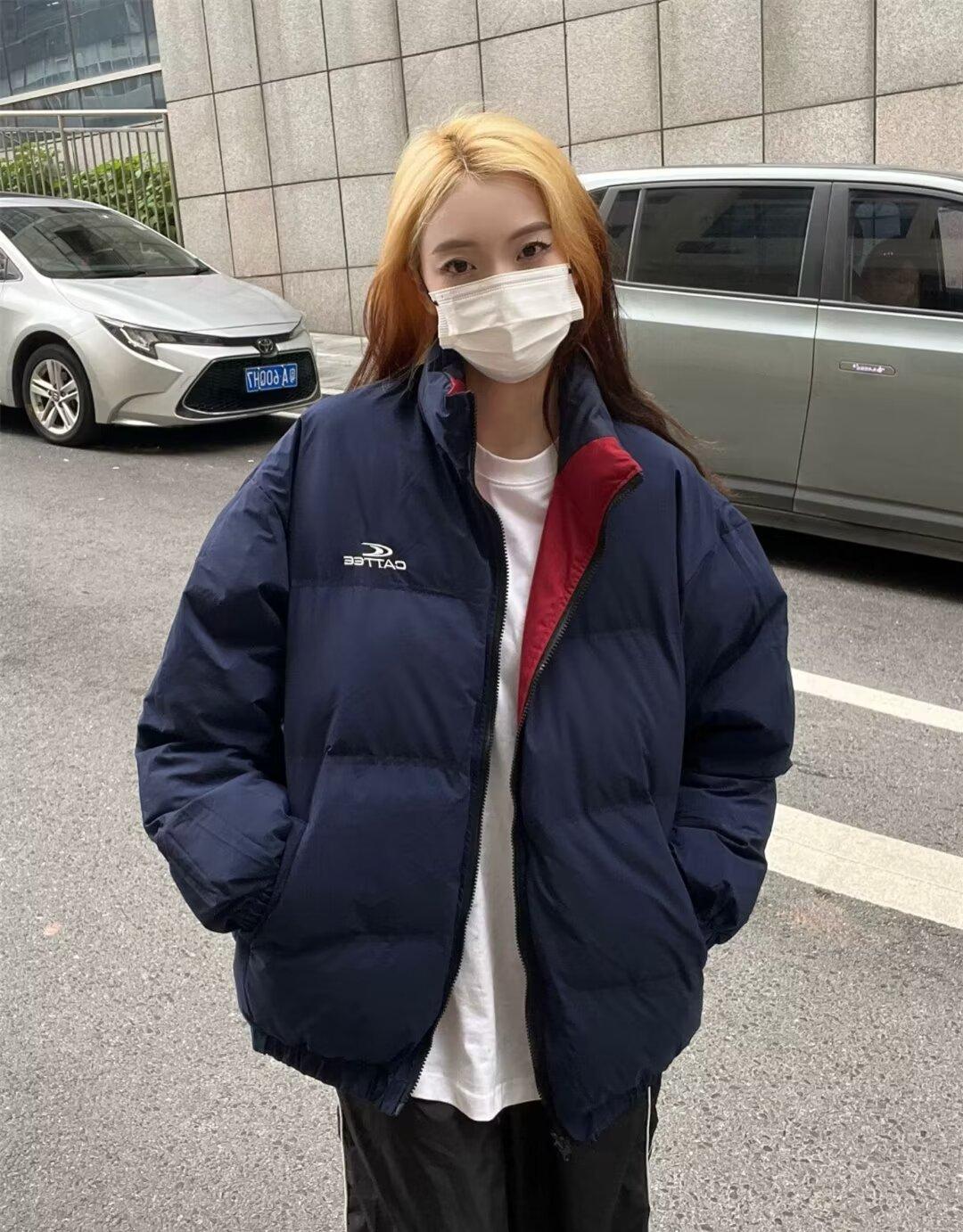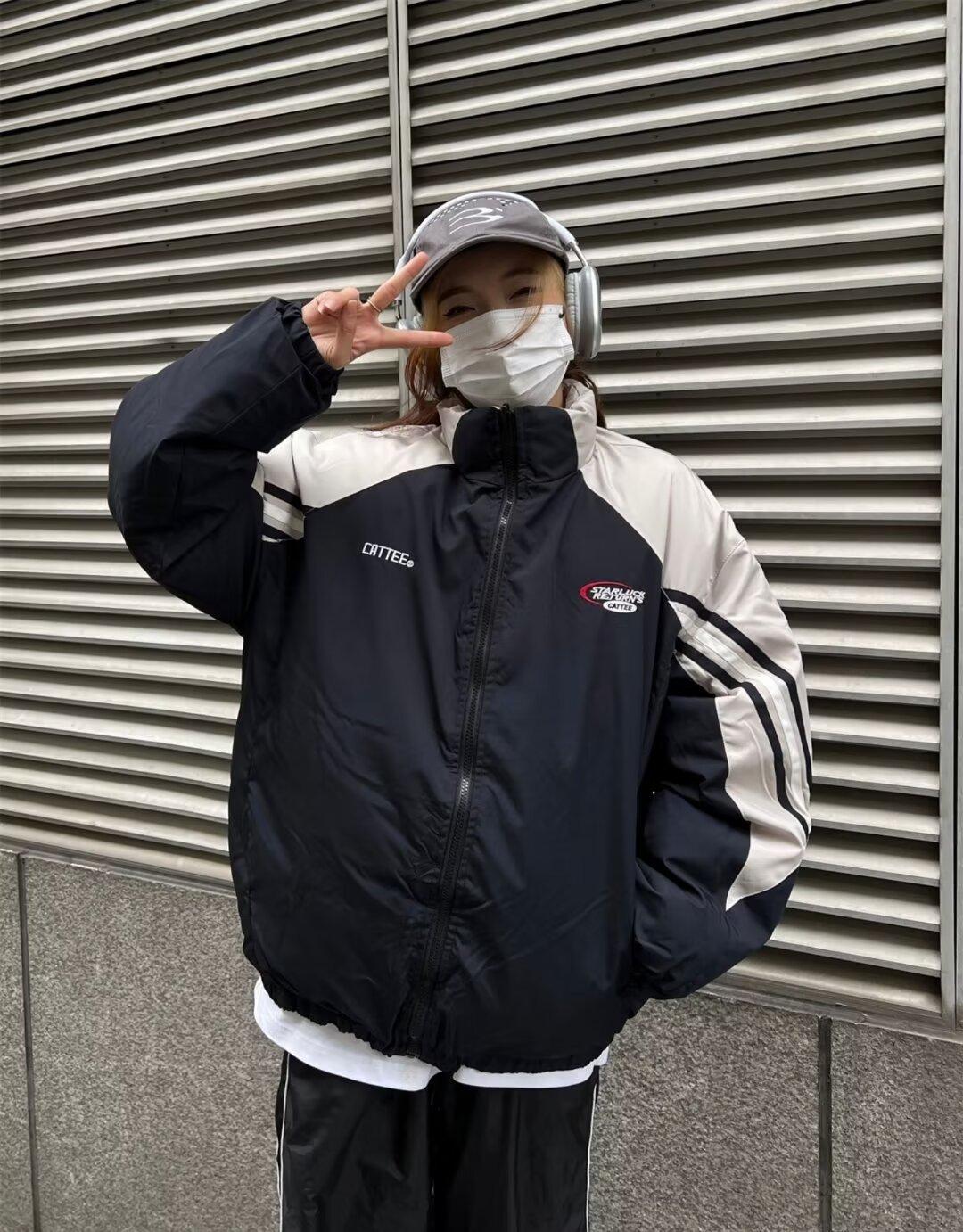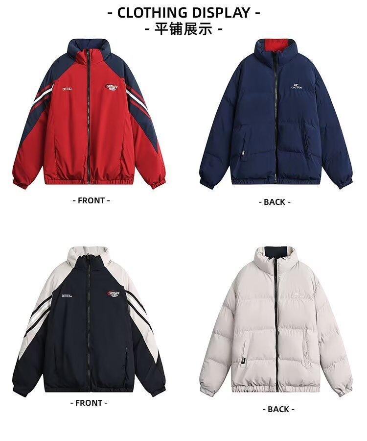 Abrigo acolchado de algodón a juego con colores de dos caras estilo retro americano de primavera y otoño para parejas, chaqueta de abrigo con cuello alto y acolchado de algodón.