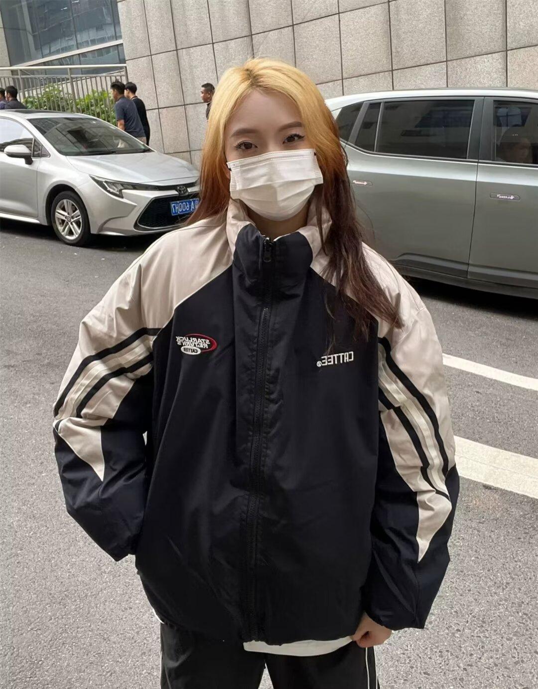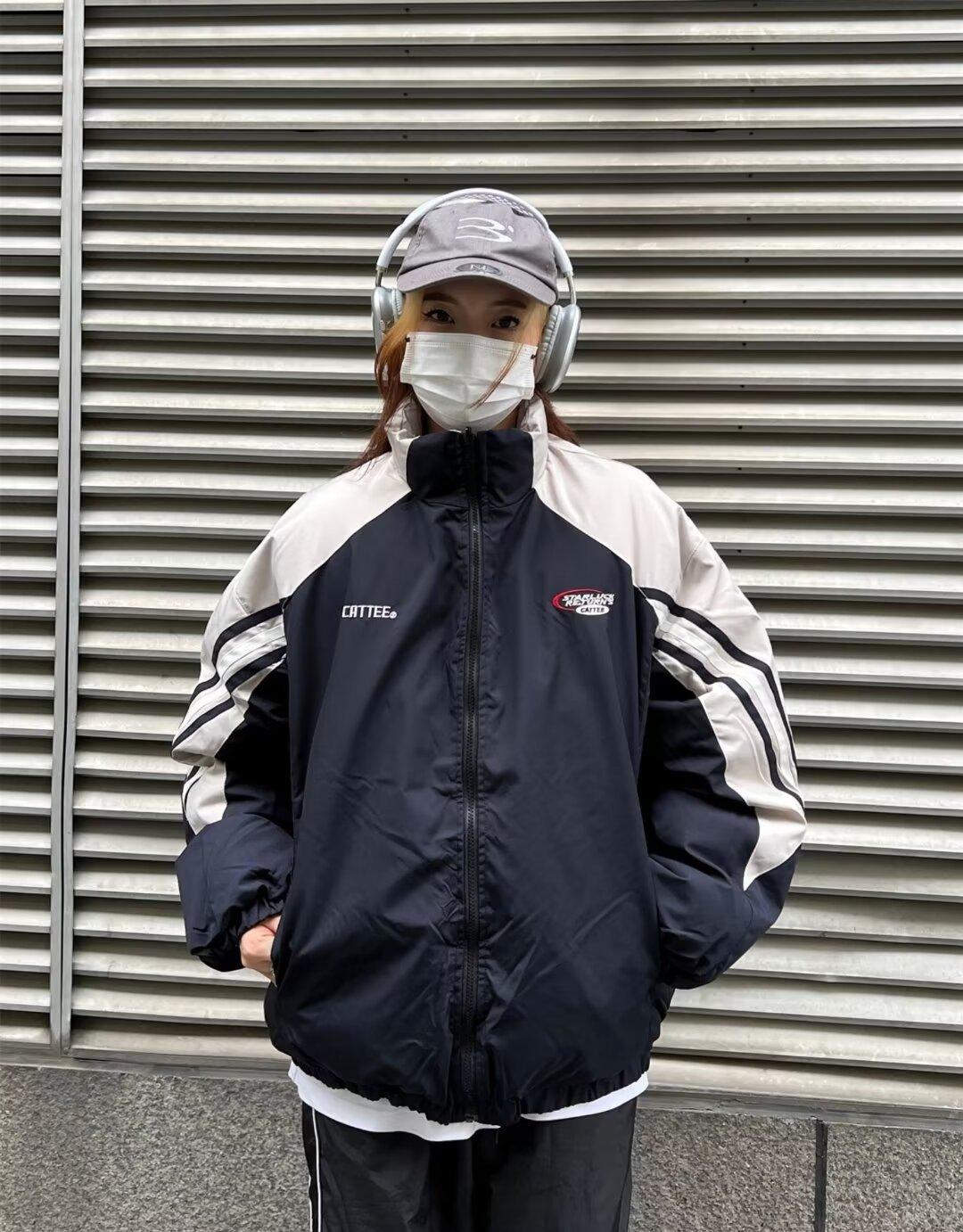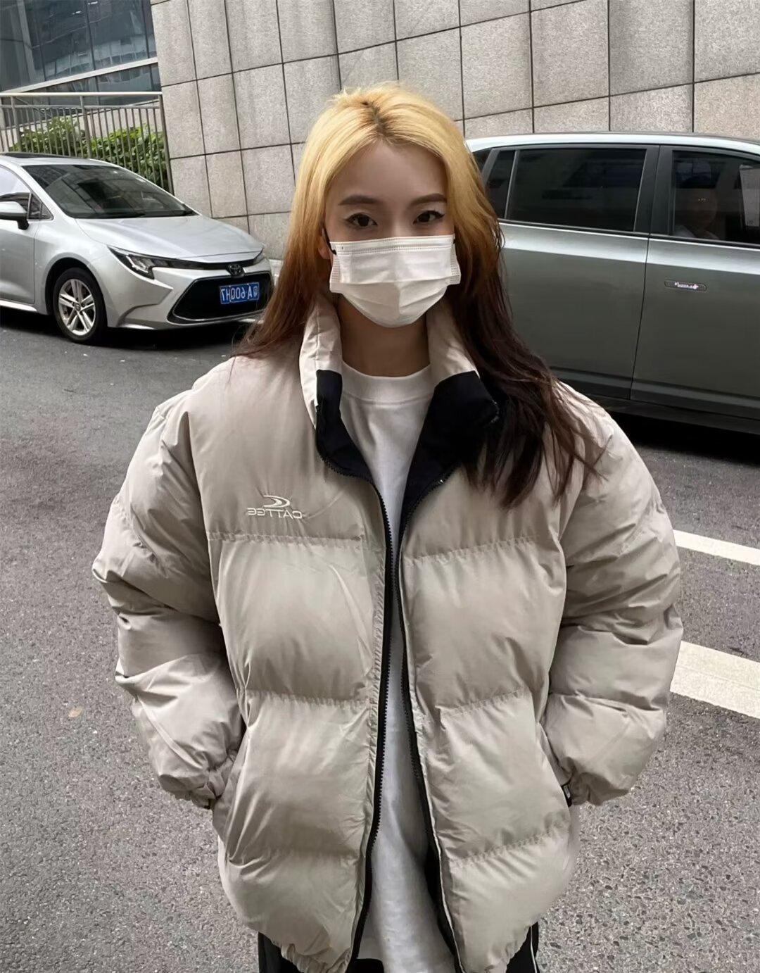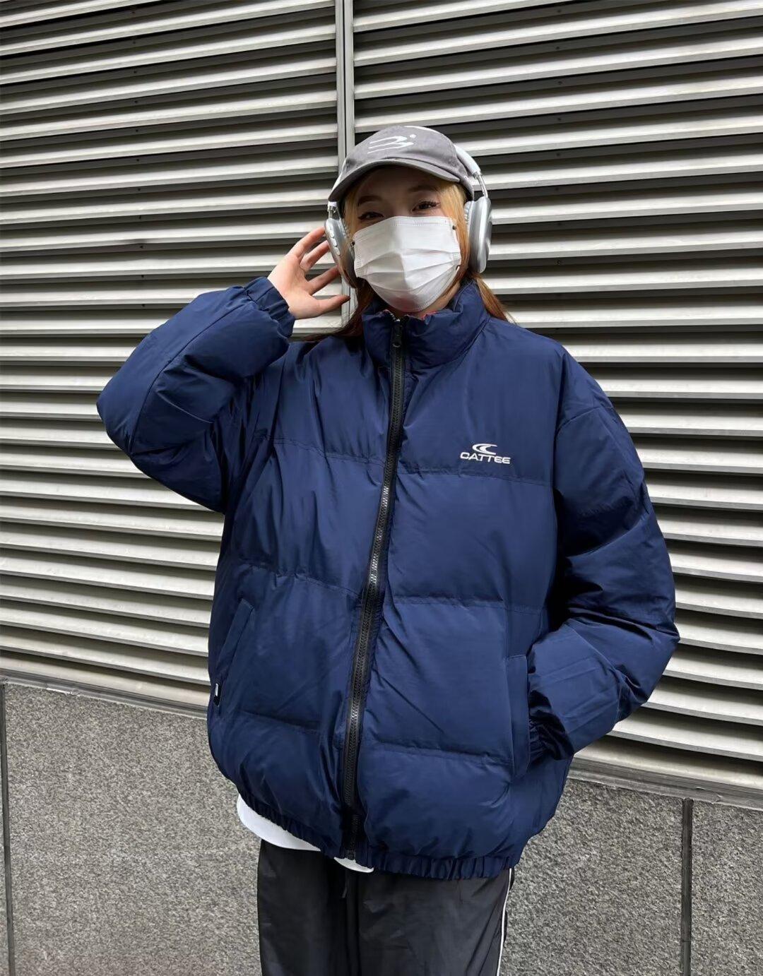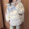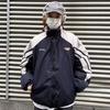 Abrigo acolchado de algodón a juego con colores de dos caras estilo retro americano de primavera y otoño para parejas, chaqueta de abrigo con cuello alto y acolchado de algodón.