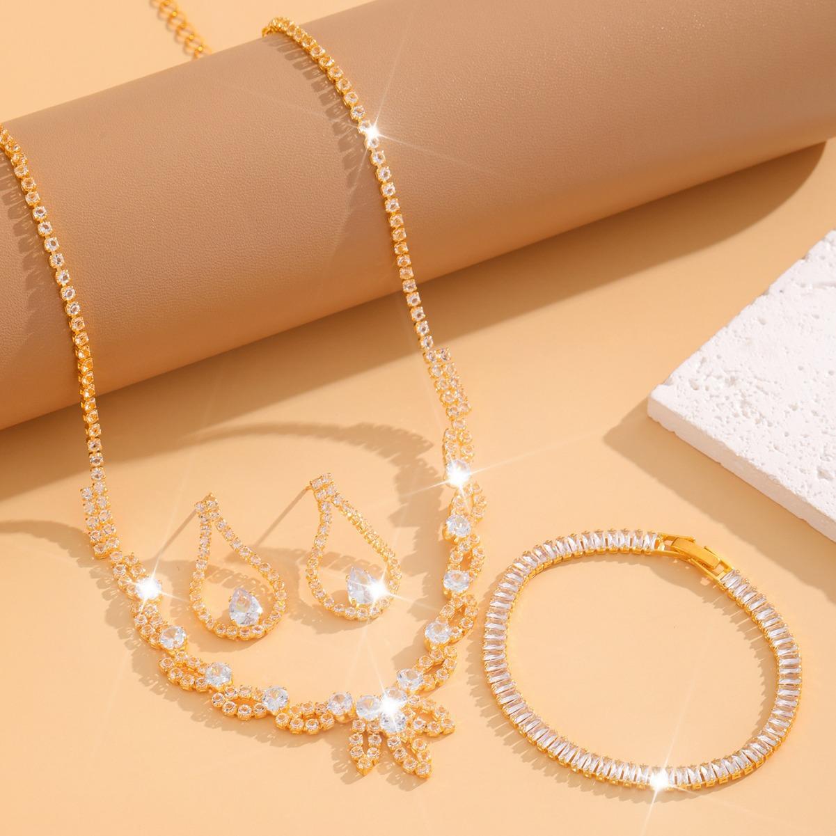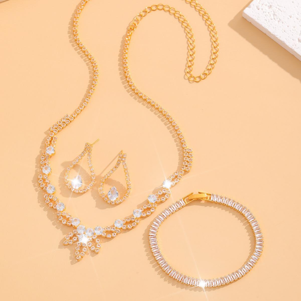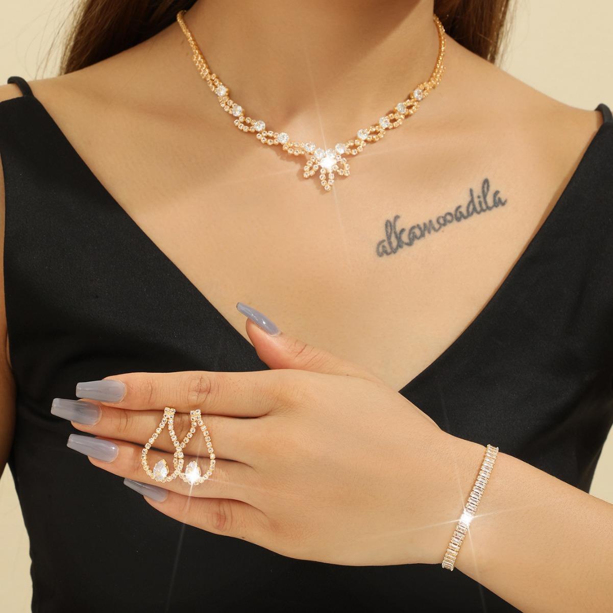 Fuente de comercio electrónico transfronterizo Europa y Estados Unidos popular collar de cadena de clavícula de cristal pulsera llena de diamantes pendientes collar traje de mujer