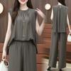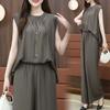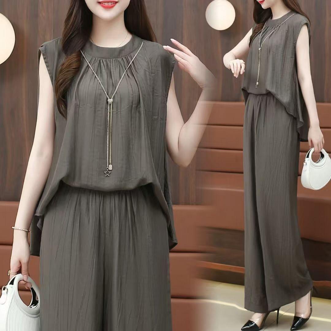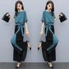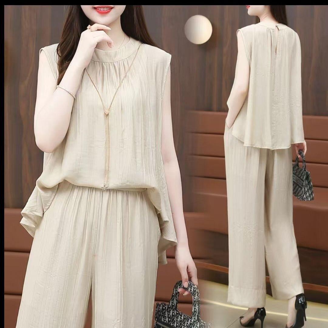 Traje de moda de estilo occidental para mujer, verano 2024, nuevo, elegante, antiedad, suelto, adelgazante, de alta calidad, pantalones de pierna ancha, conjunto de dos piezas