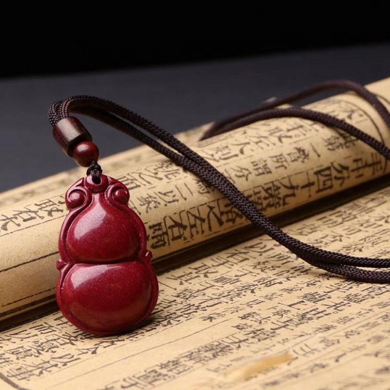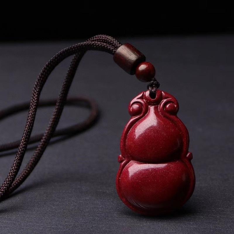 Colgante de calabaza de cinabrio natural para mujer, mineral crudo, arena de oro púrpura del emperador, colgante Fu Lu, collar seguro para pareja masculina