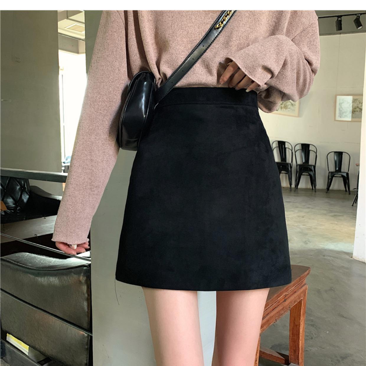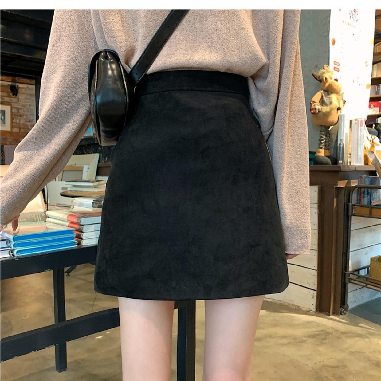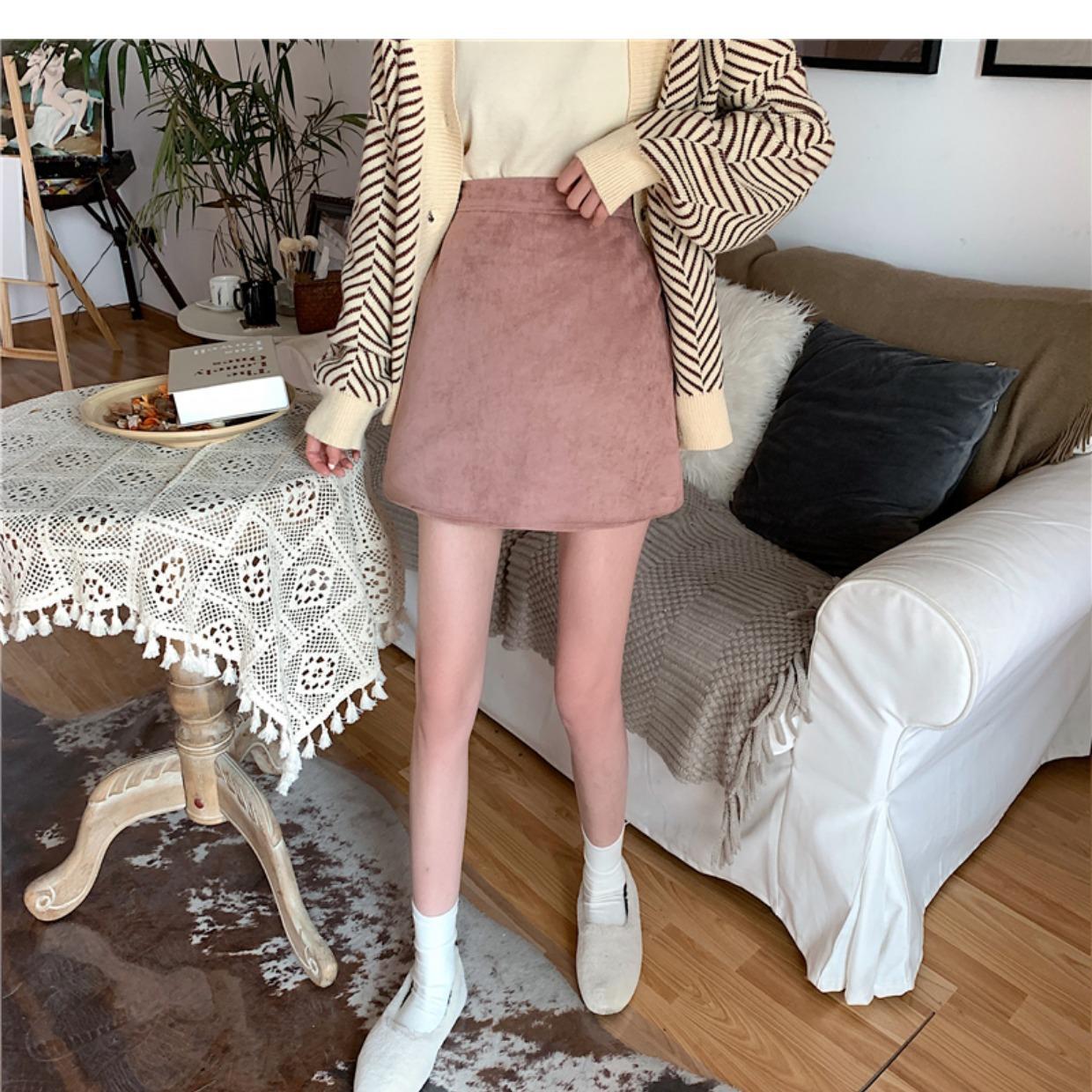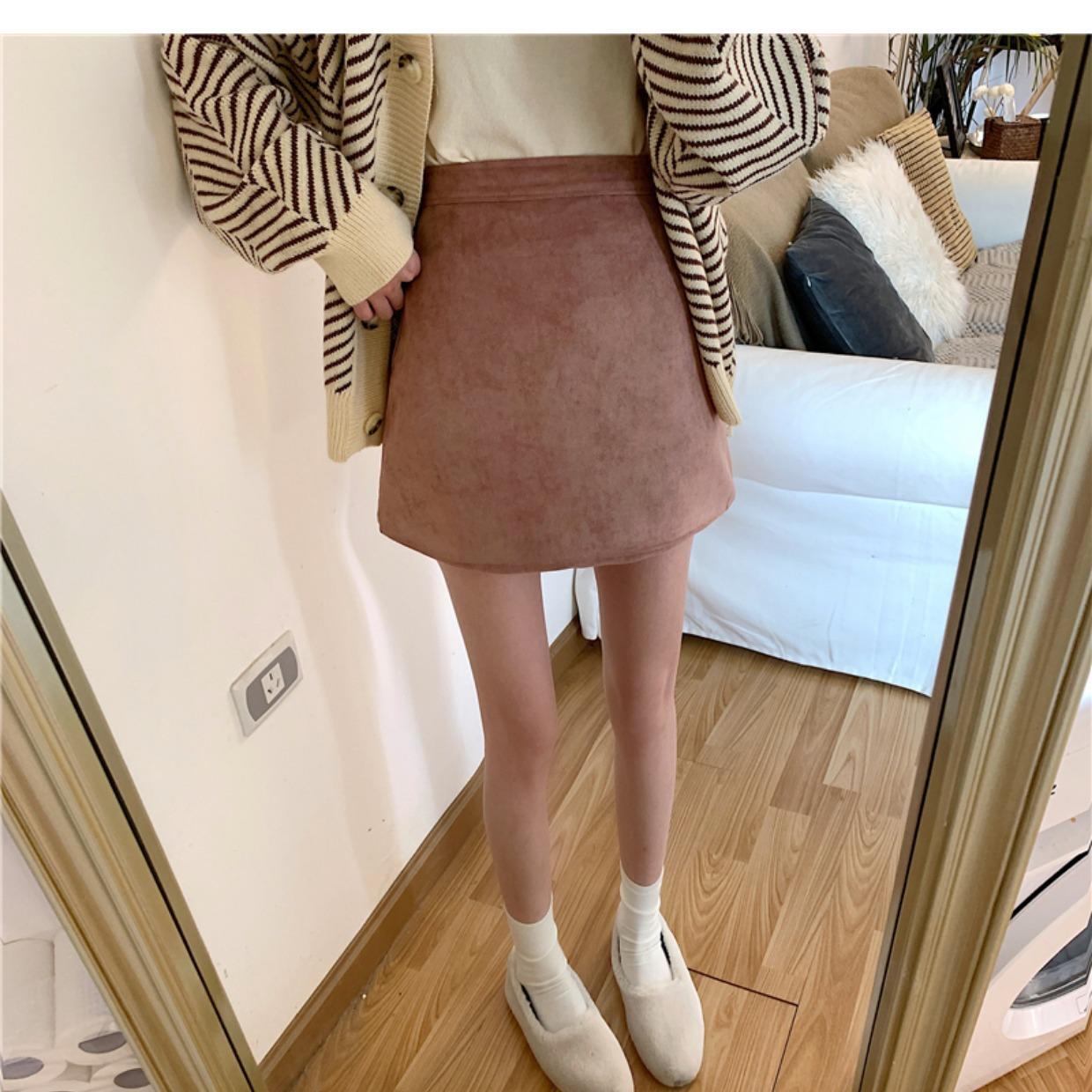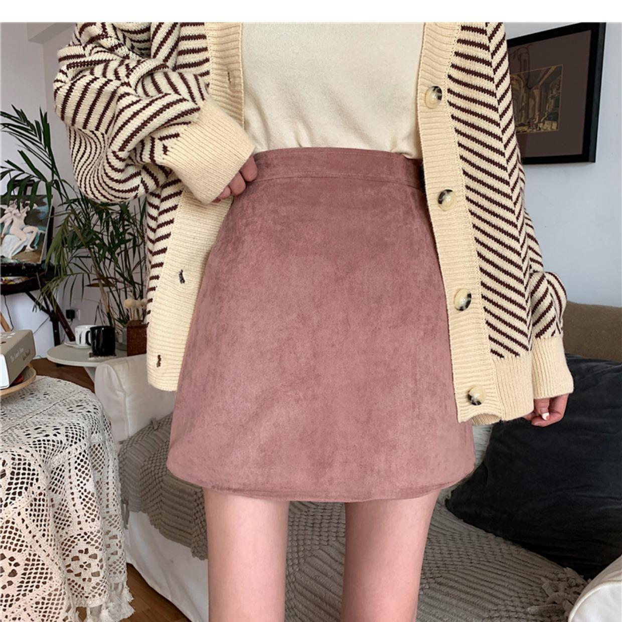 Falda de Forro Polar de Piel de Ciervo para Mujer Falda Corta Línea A 2023 Nuevo Otoño e Invierno Falda de Cadera Falda de Tubo Falda Adelgazante de Cintura Alta