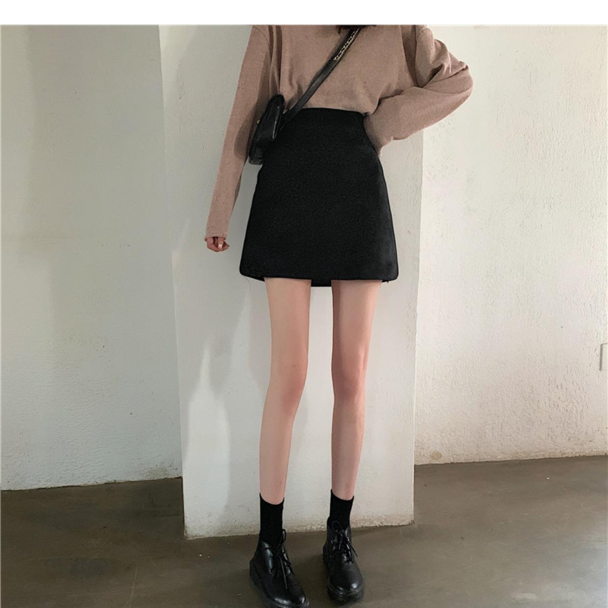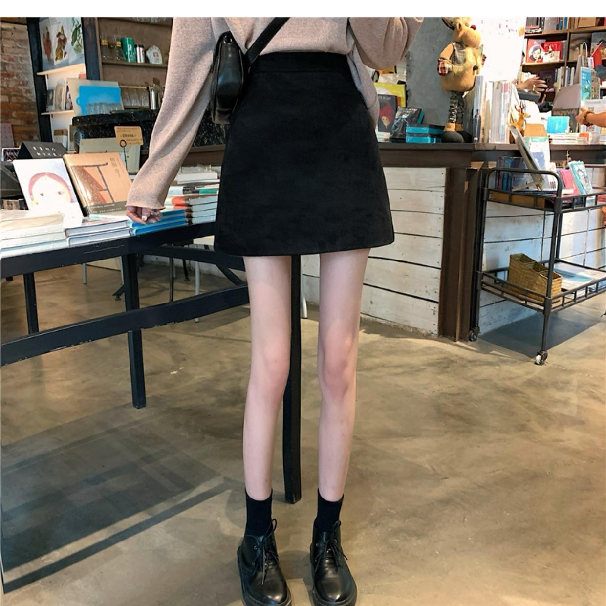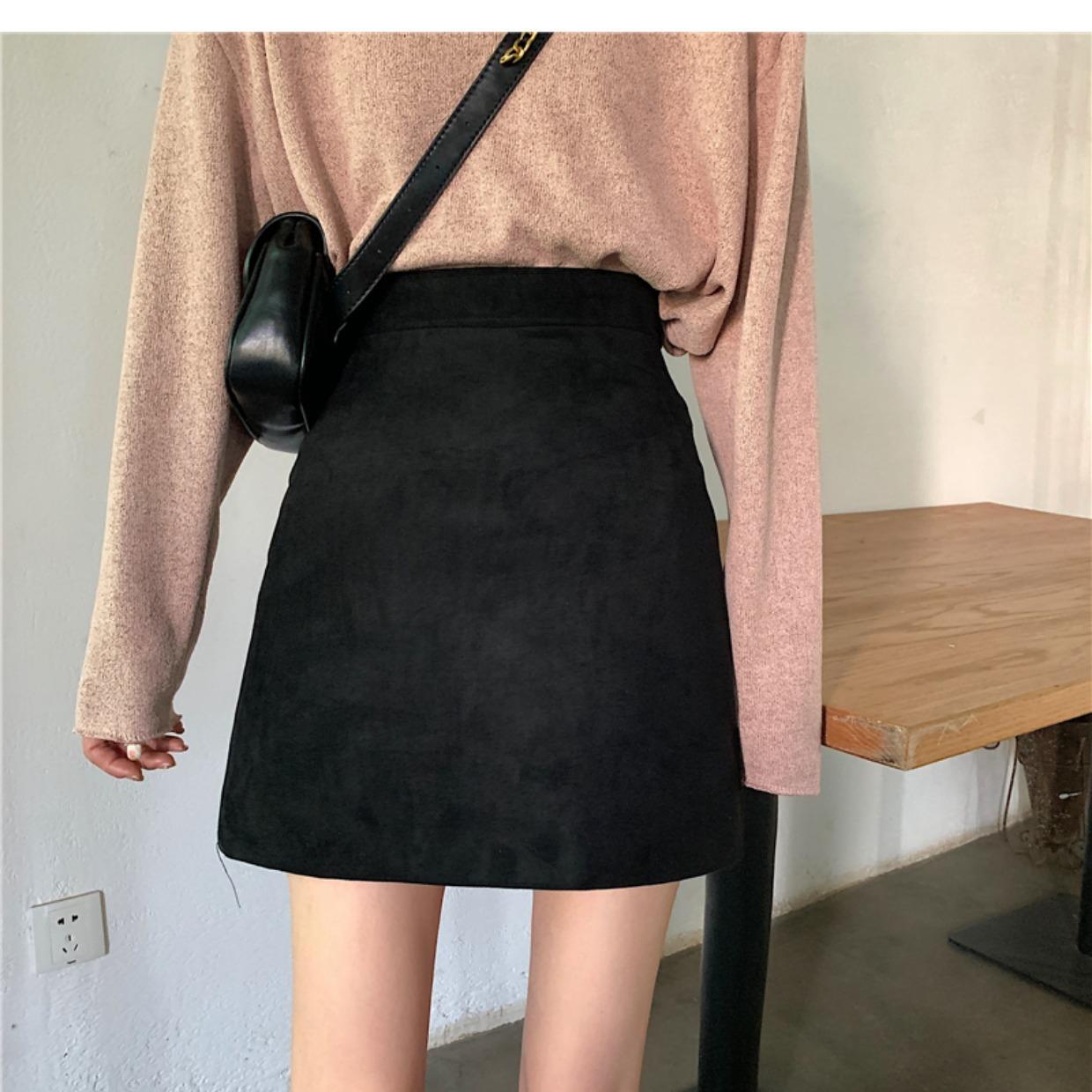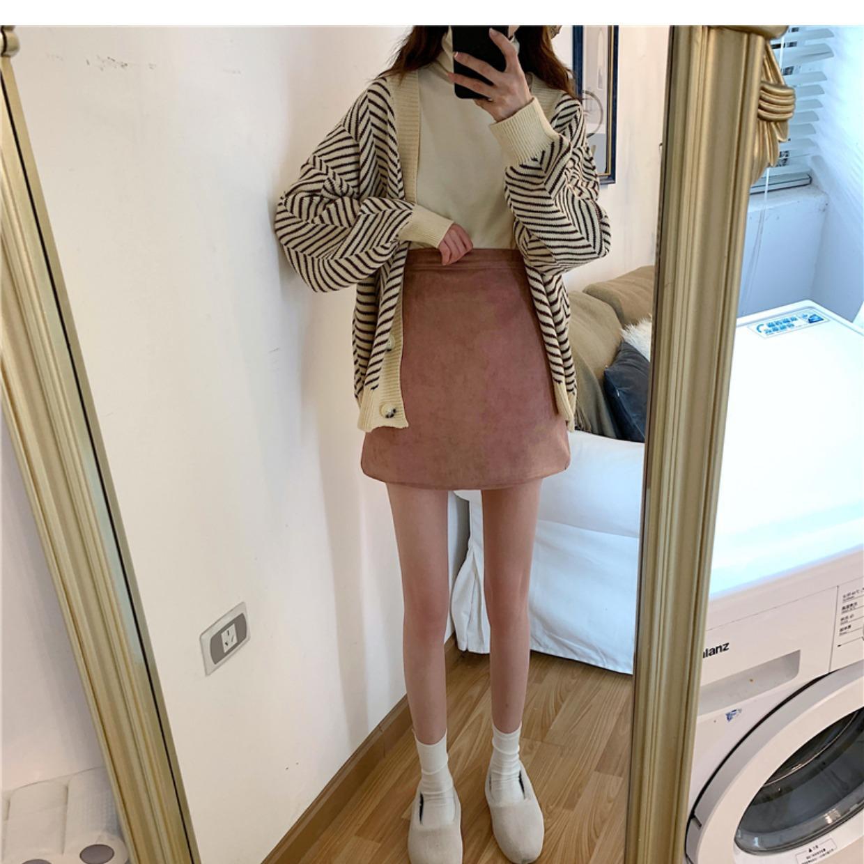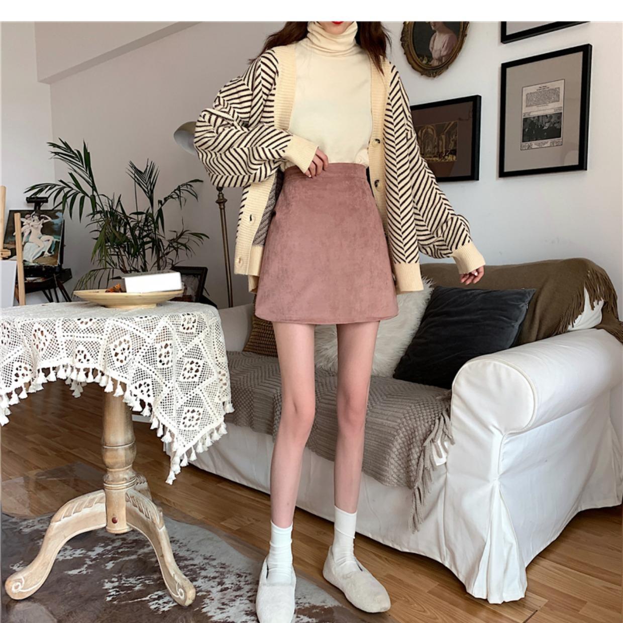 Falda de Forro Polar de Piel de Ciervo para Mujer Falda Corta Línea A 2023 Nuevo Otoño e Invierno Falda de Cadera Falda de Tubo Falda Adelgazante de Cintura Alta
