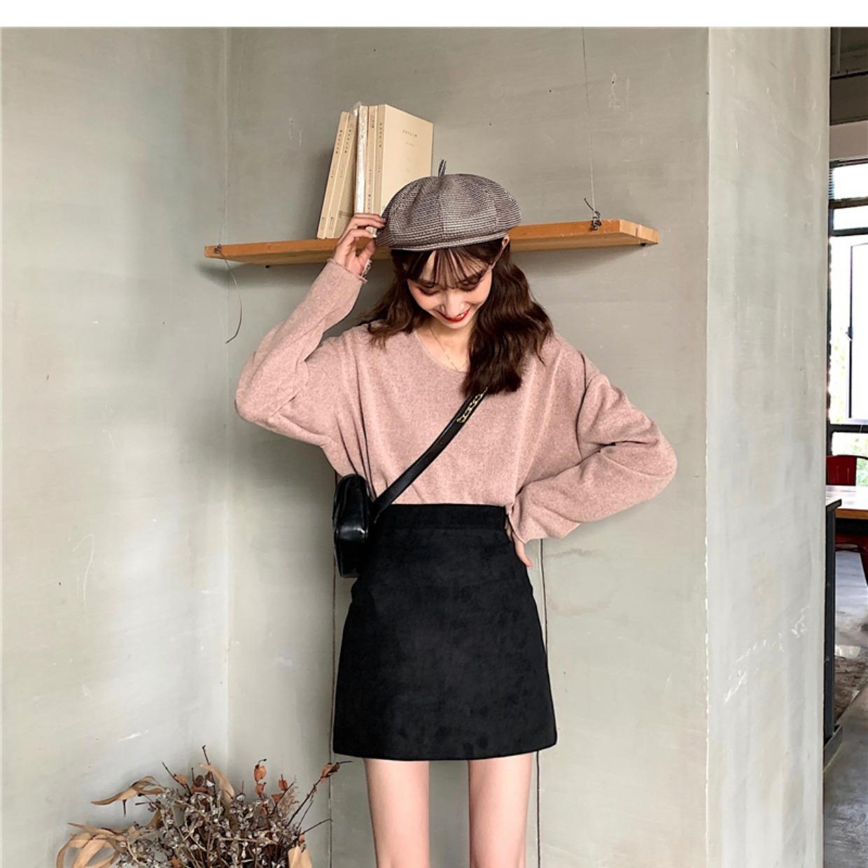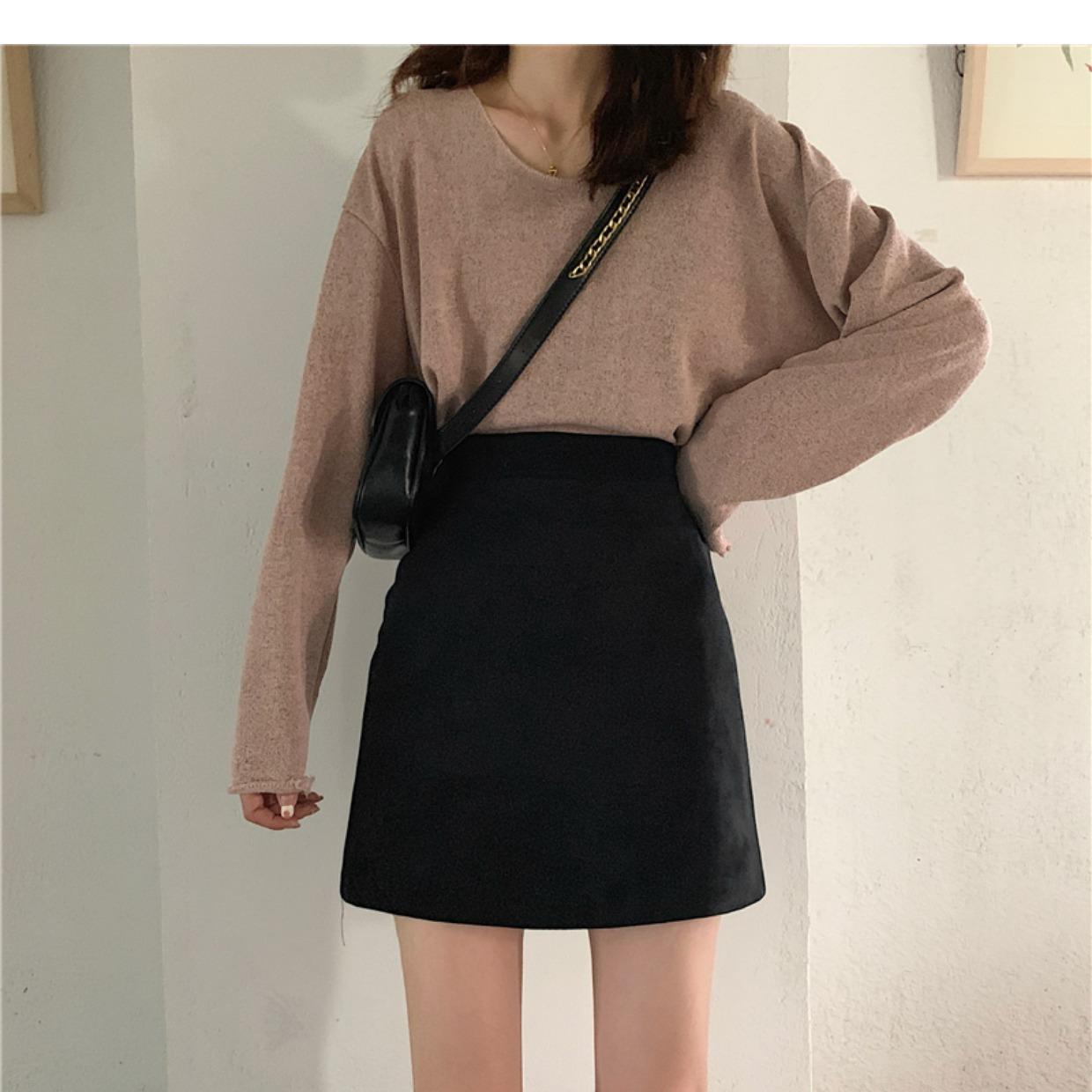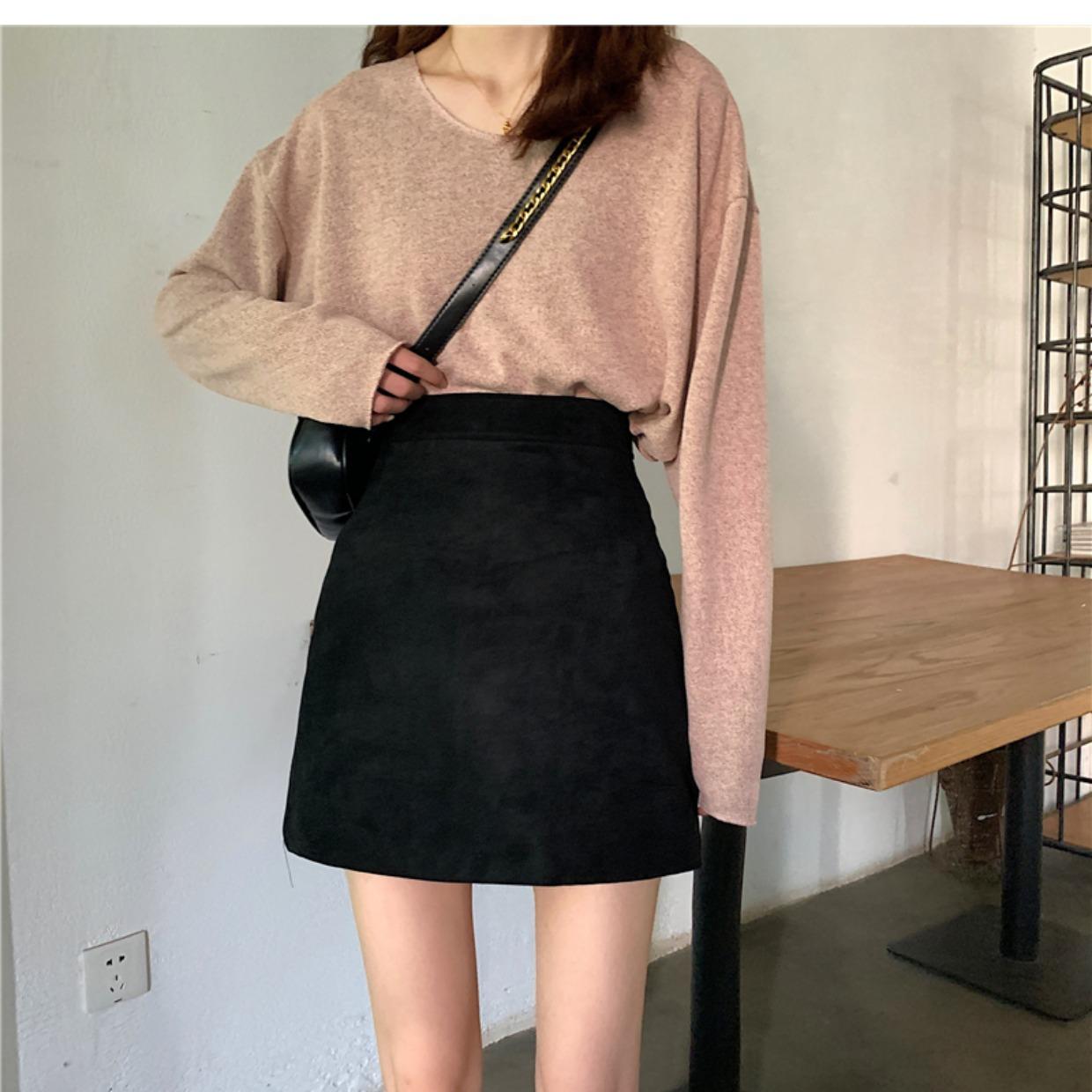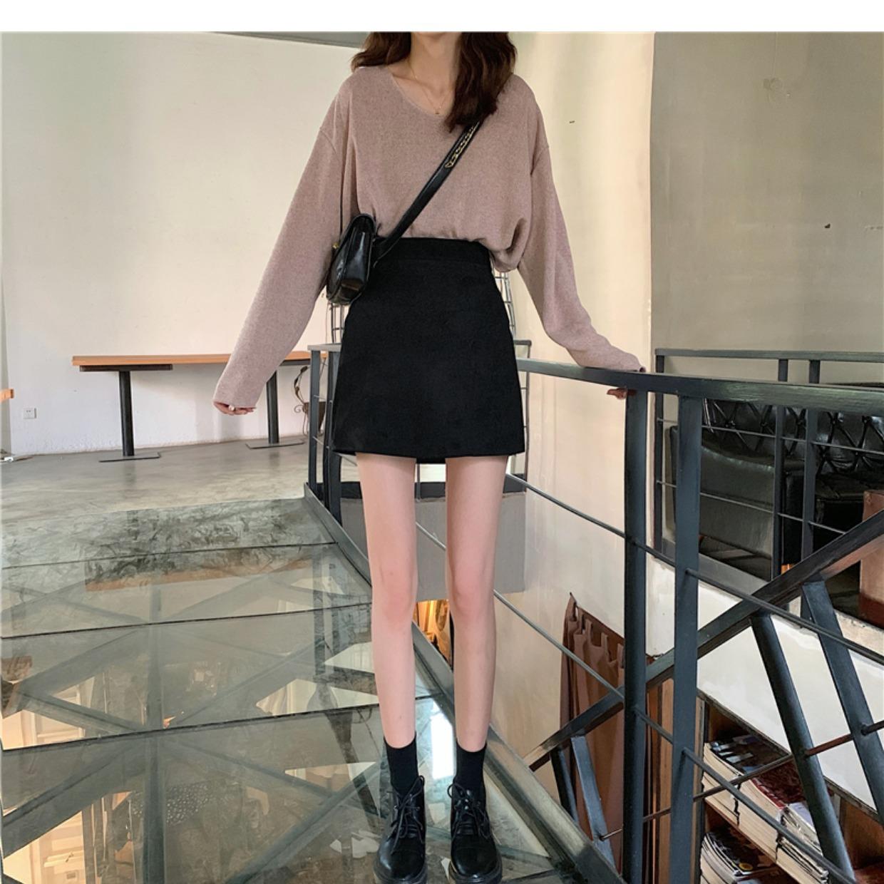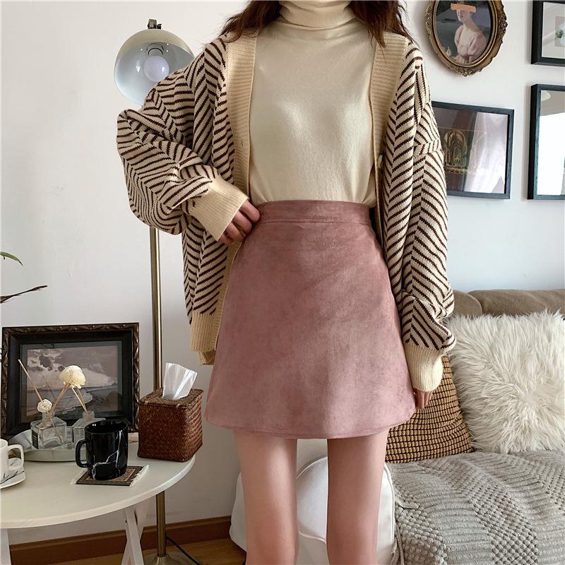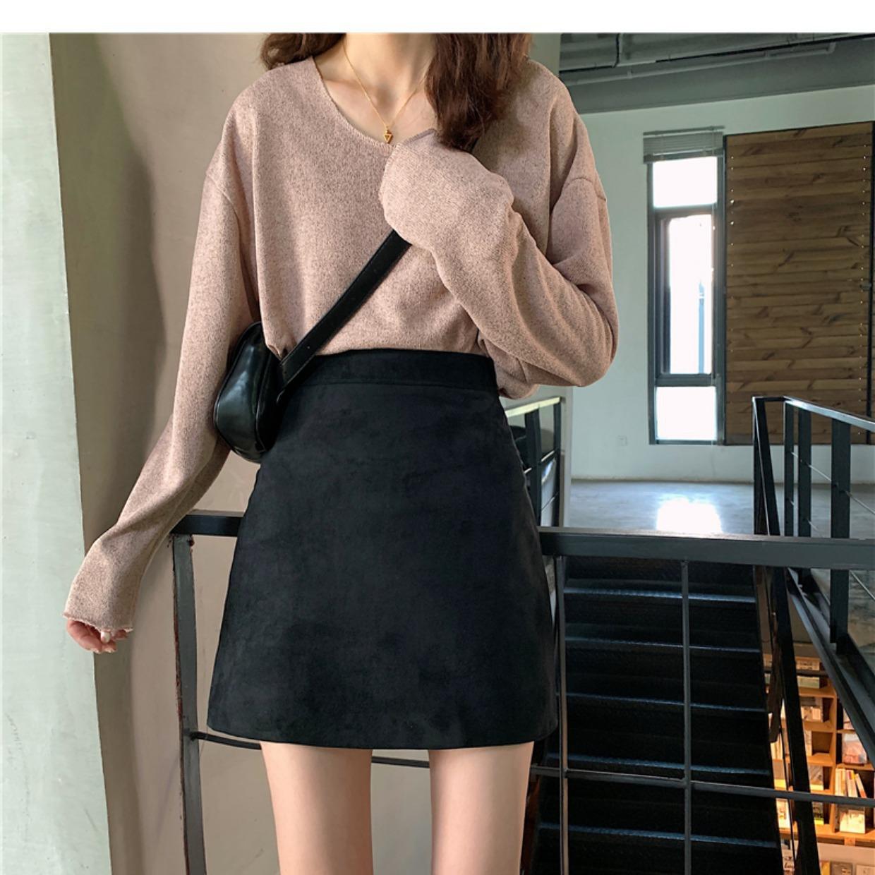 Falda de Forro Polar de Piel de Ciervo para Mujer Falda Corta Línea A 2023 Nuevo Otoño e Invierno Falda de Cadera Falda de Tubo Falda Adelgazante de Cintura Alta