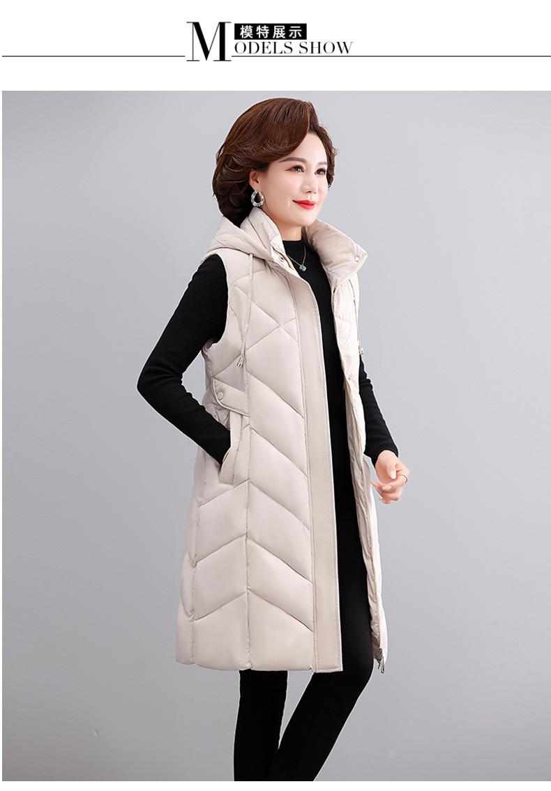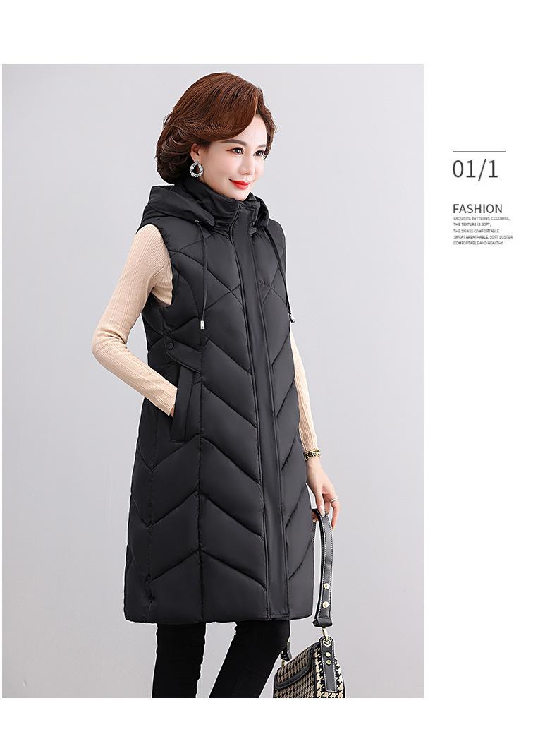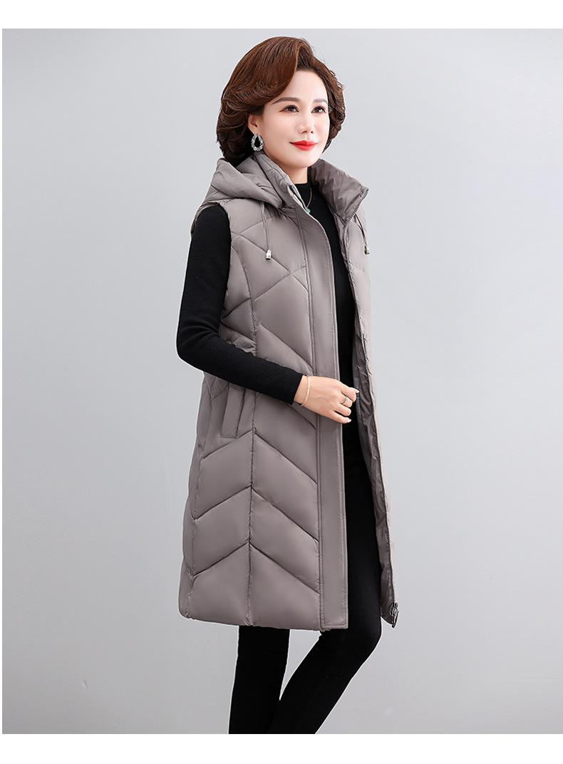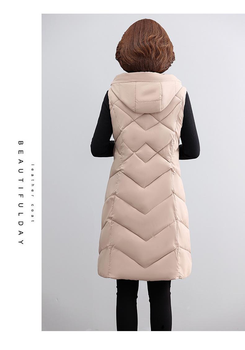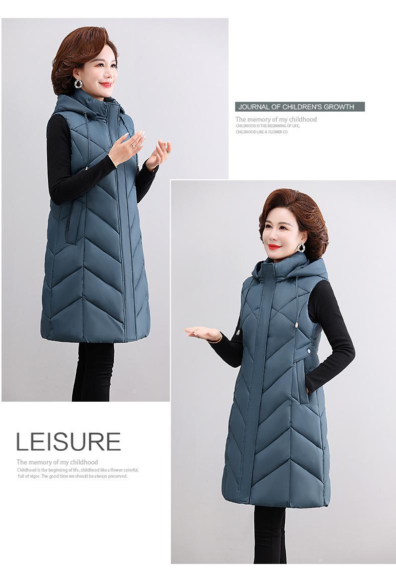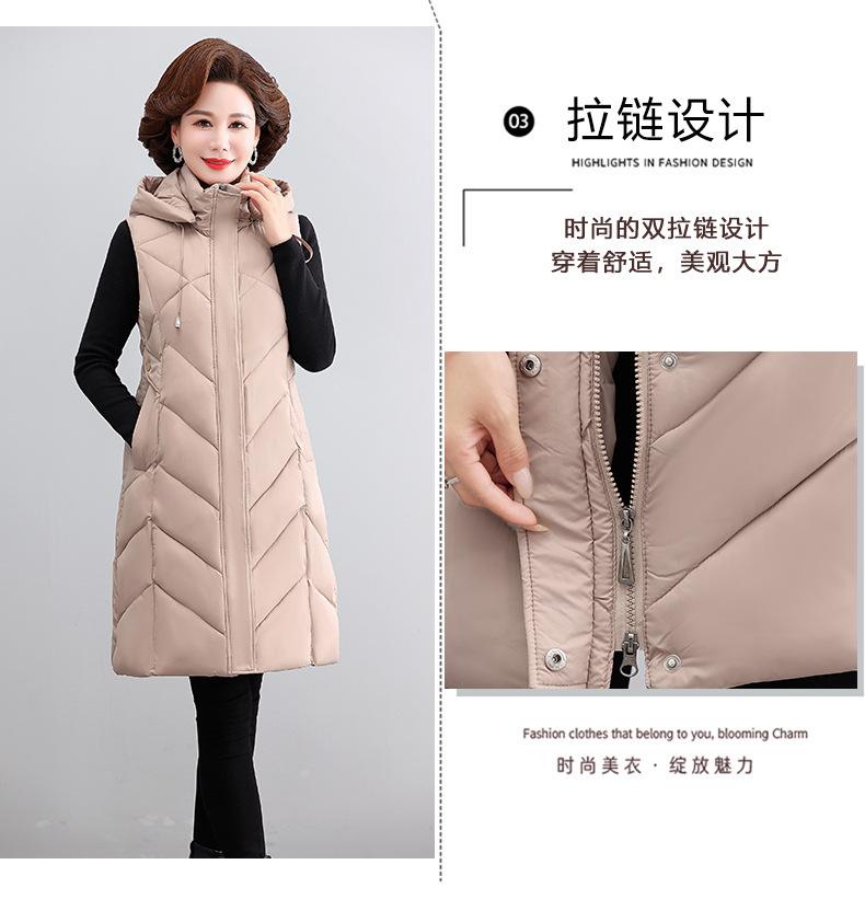2024 otoño e invierno nuevo chaleco de algodón acolchado de plumón para personas de mediana edad y mayores de talla grande para mujer, abrigo chaleco largo con capucha hasta la rodilla