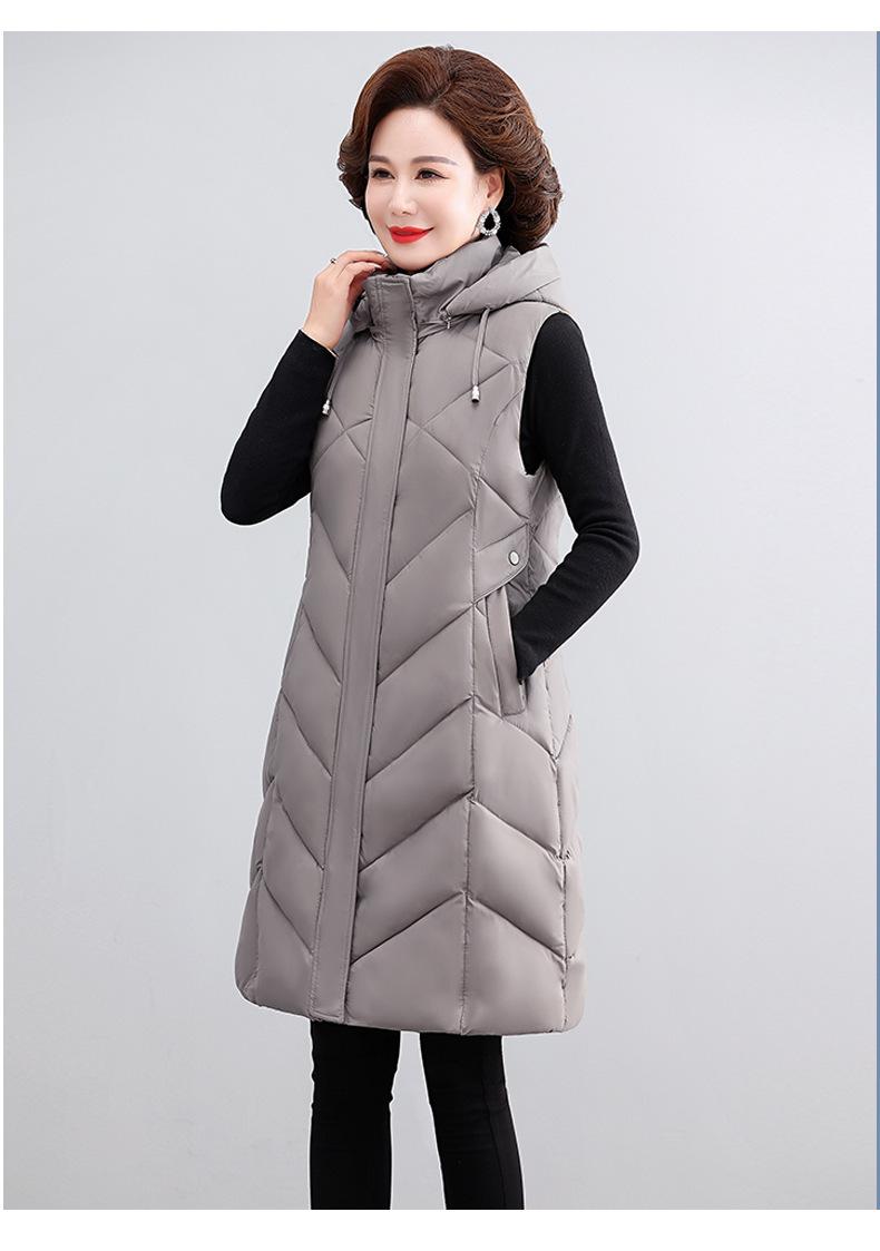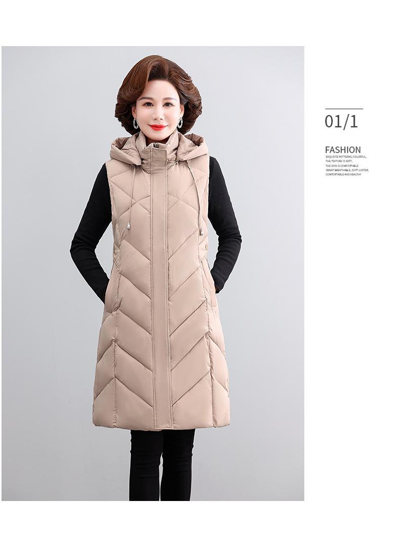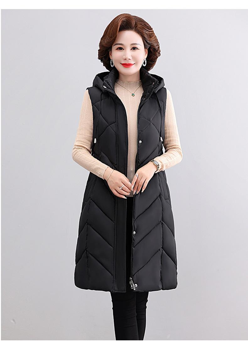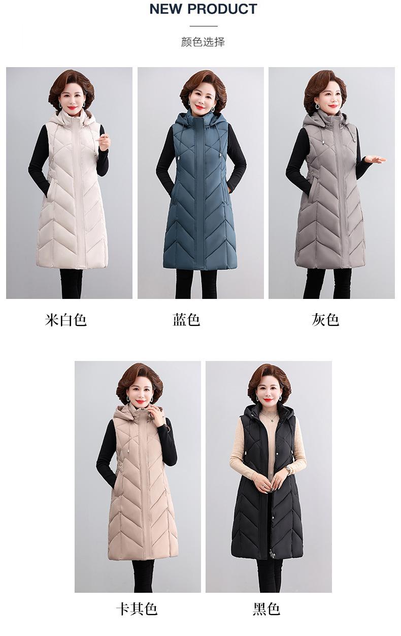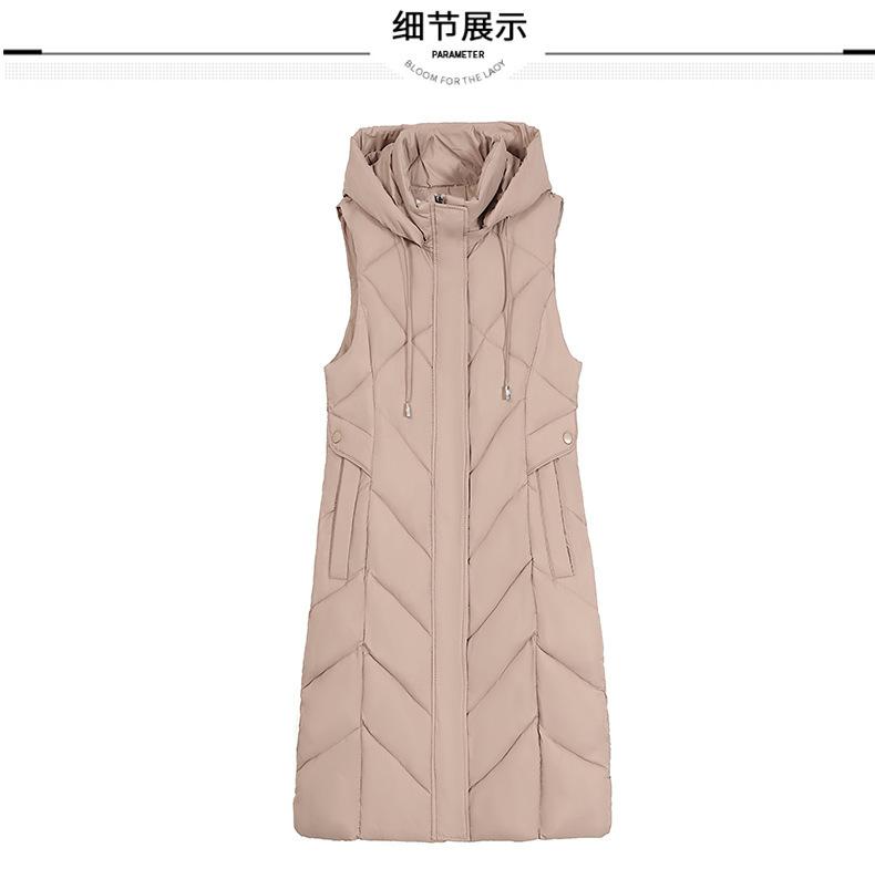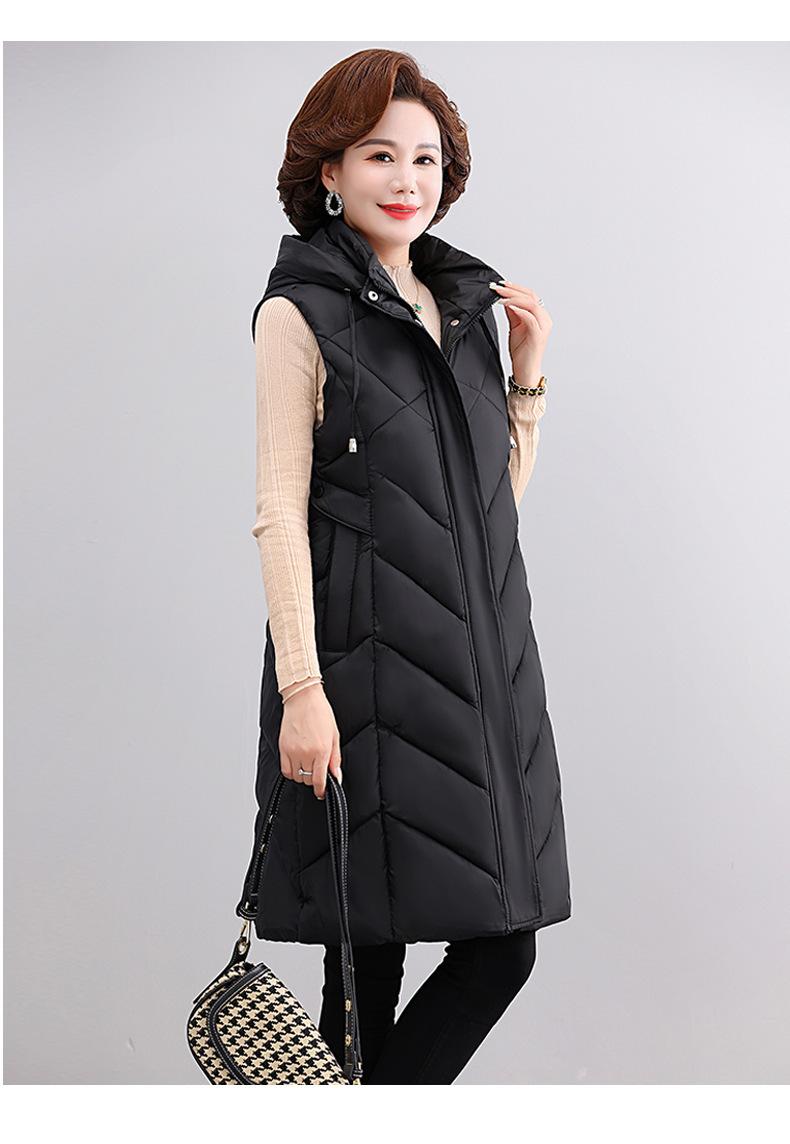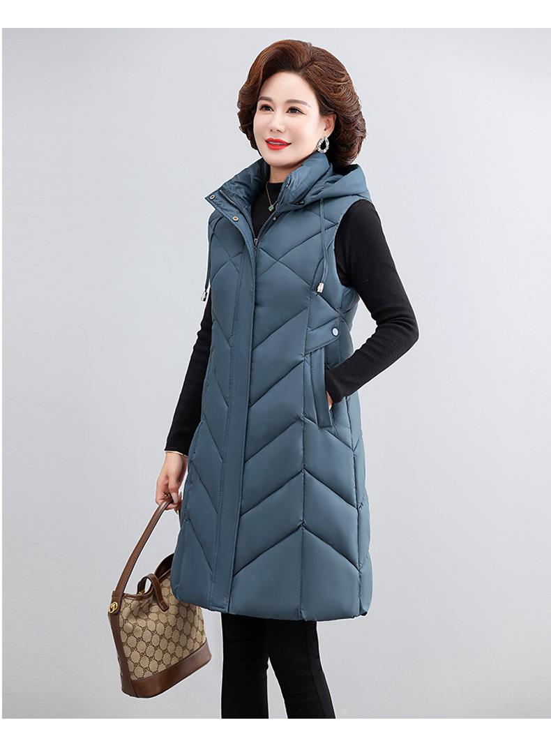 2024 otoño e invierno nuevo chaleco de algodón acolchado de plumón para personas de mediana edad y mayores de talla grande para mujer, abrigo chaleco largo con capucha hasta la rodilla