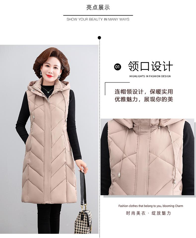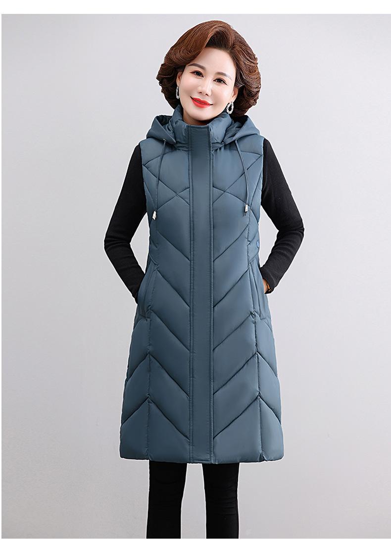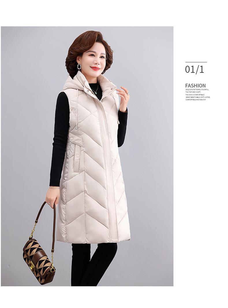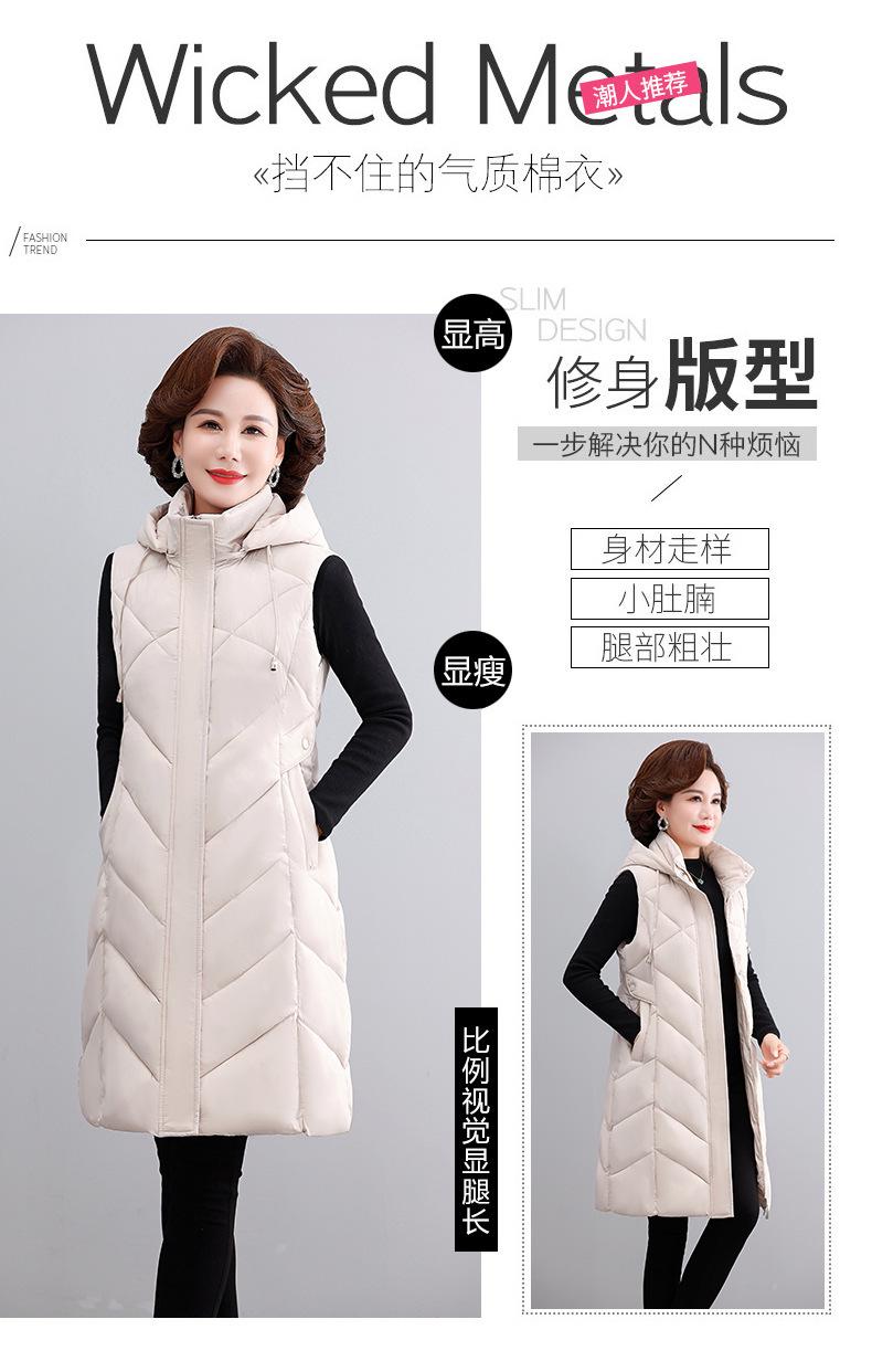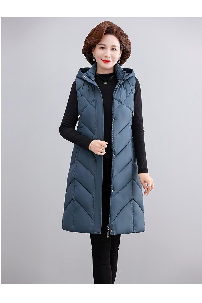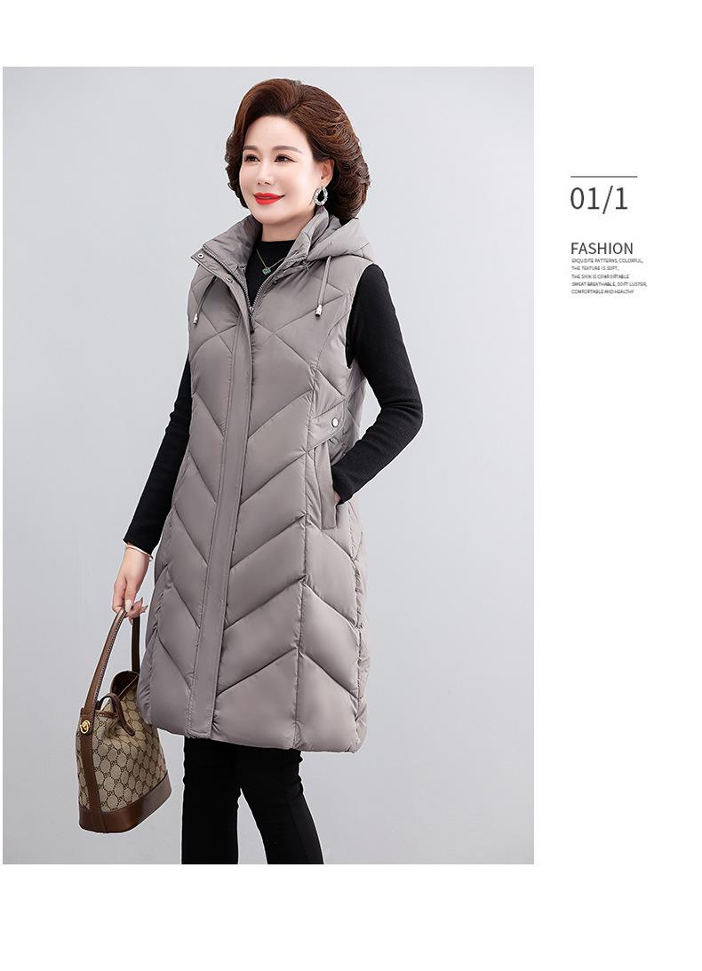 2024 otoño e invierno nuevo chaleco de algodón acolchado de plumón para personas de mediana edad y mayores de talla grande para mujer, abrigo chaleco largo con capucha hasta la rodilla