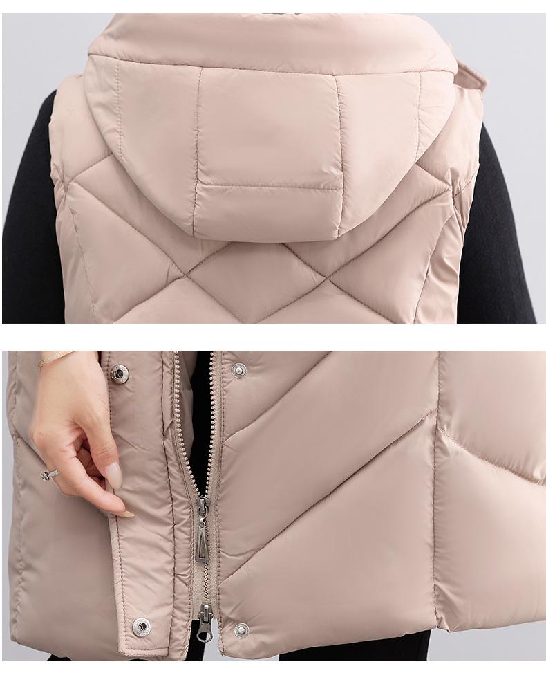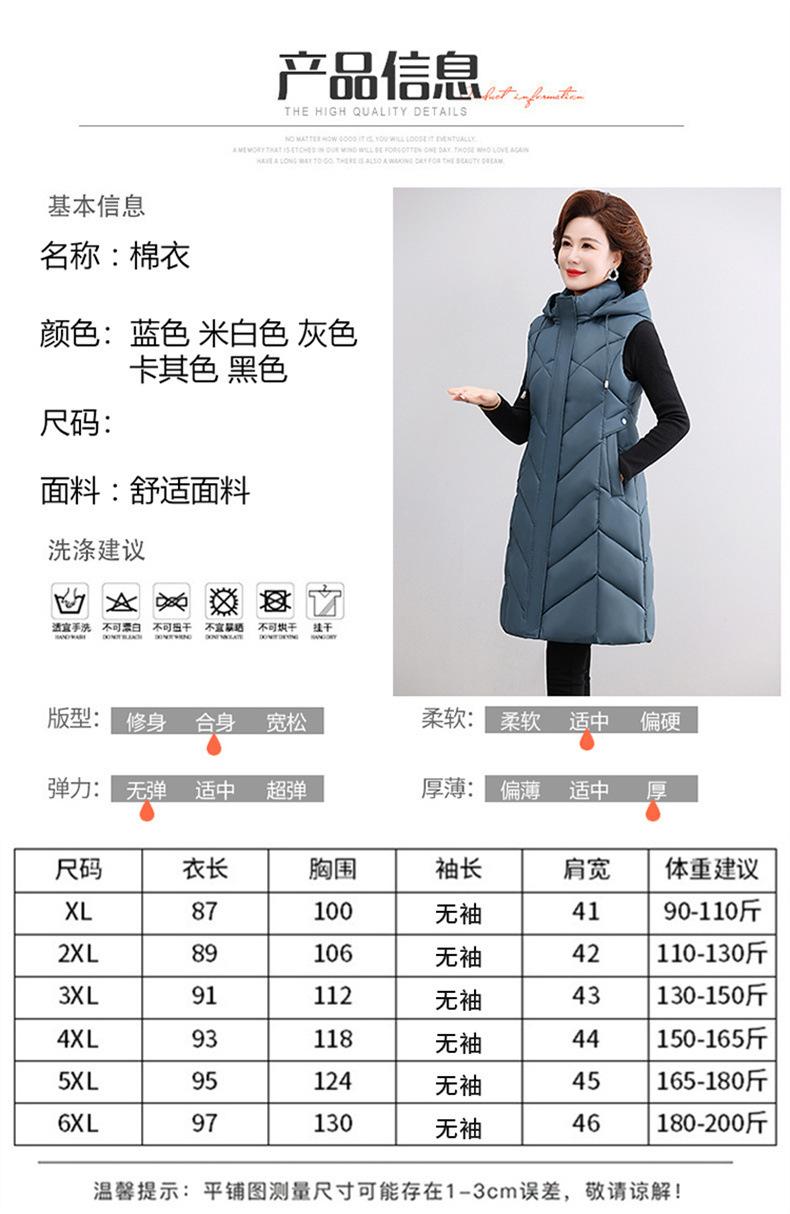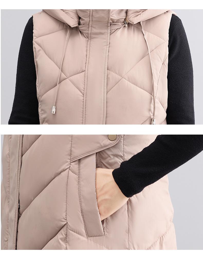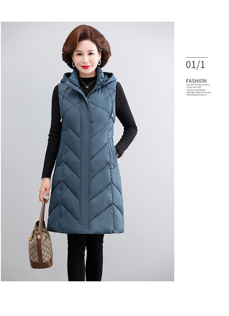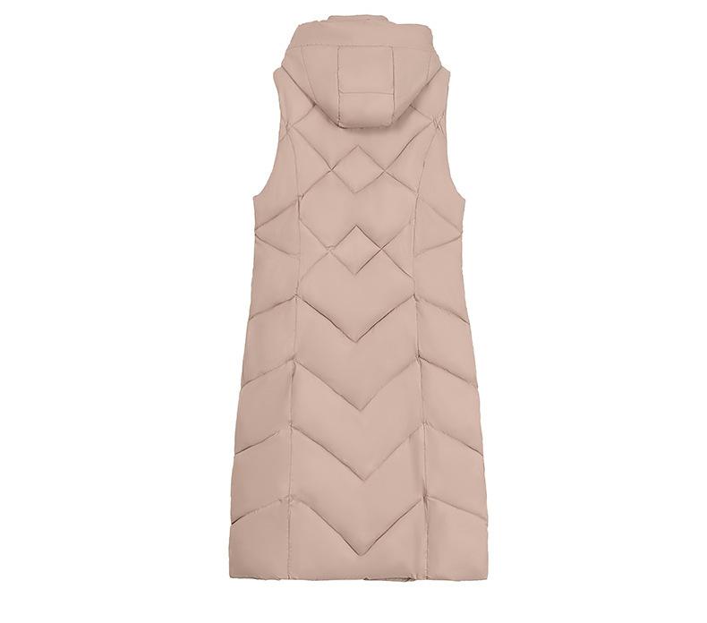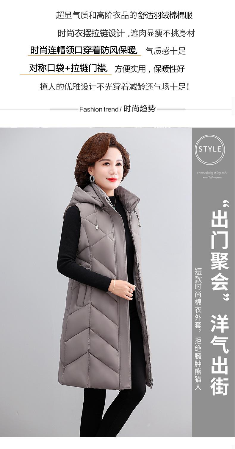 2024 otoño e invierno nuevo chaleco de algodón acolchado de plumón para personas de mediana edad y mayores de talla grande para mujer, abrigo chaleco largo con capucha hasta la rodilla