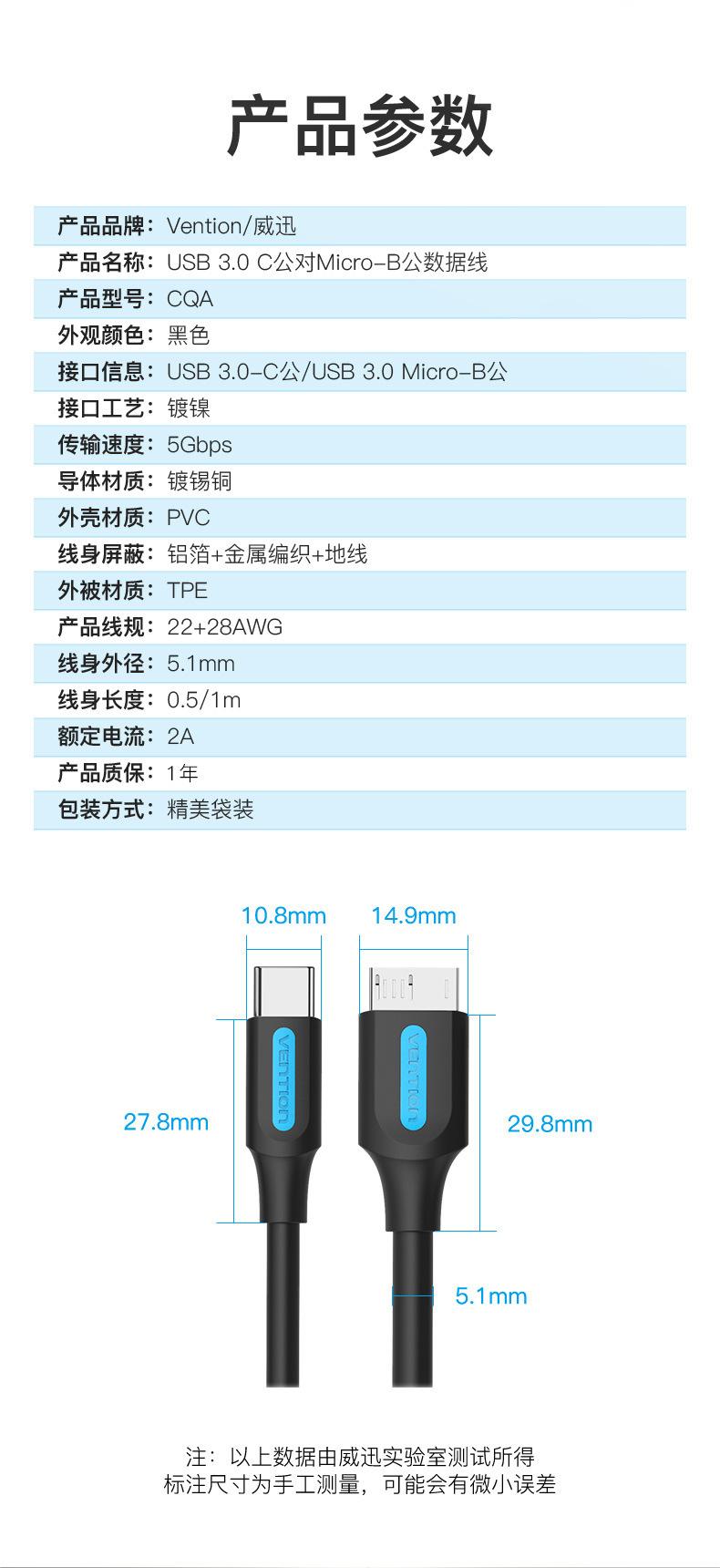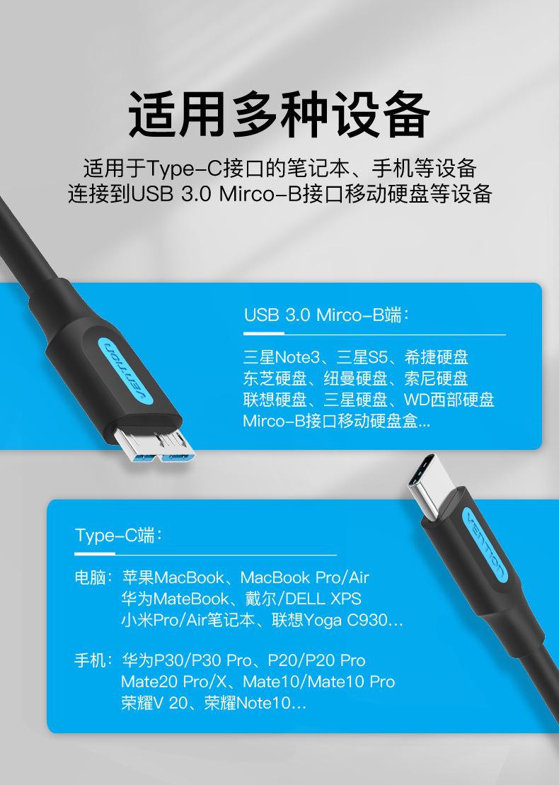Cable de disco duro móvil tipo C 3.0 micro USB de 2,5 pulgadas y 3,5 pulgadas, cable de datos para caja de disco duro conectado a computadora y teléfono móvil