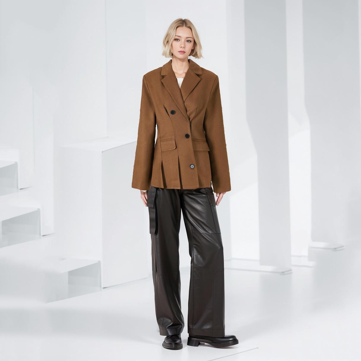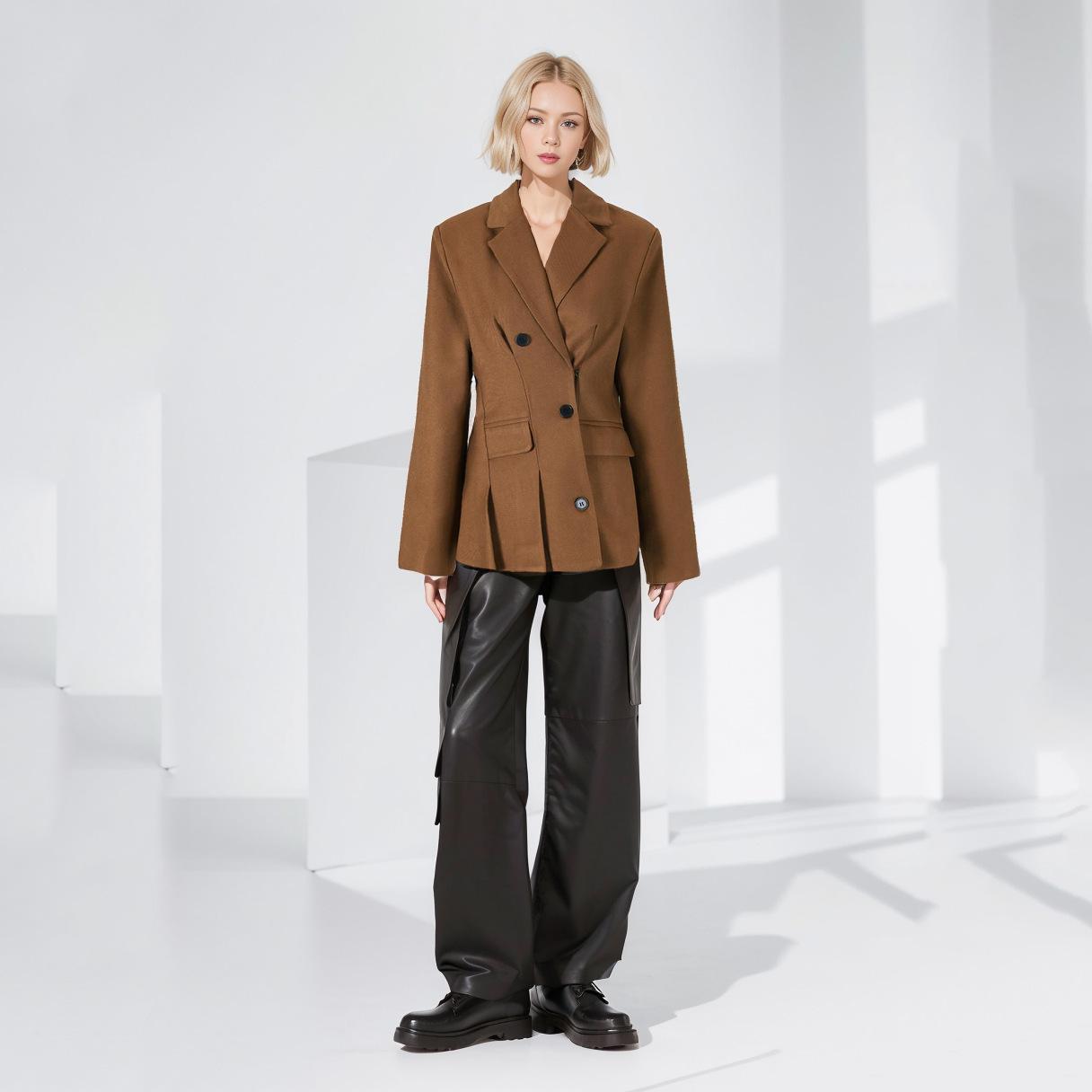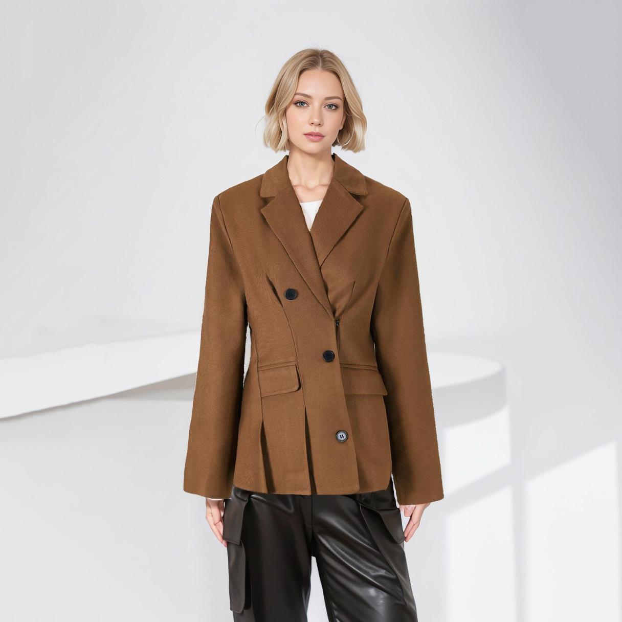 Otoño e invierno Nuevo traje de viajero diario con diseño cruzado y tapeta irregular Top ajustado francés de alta calidad