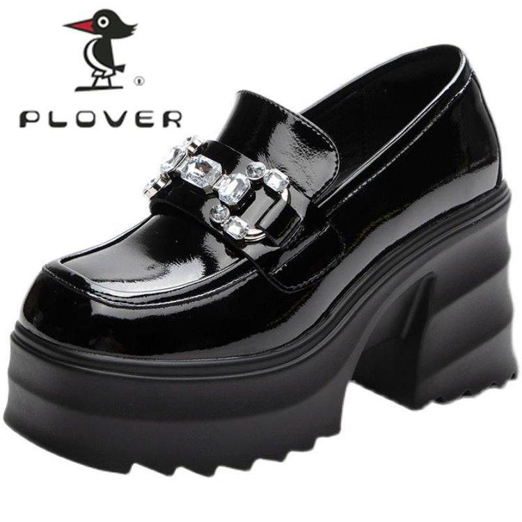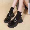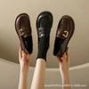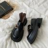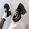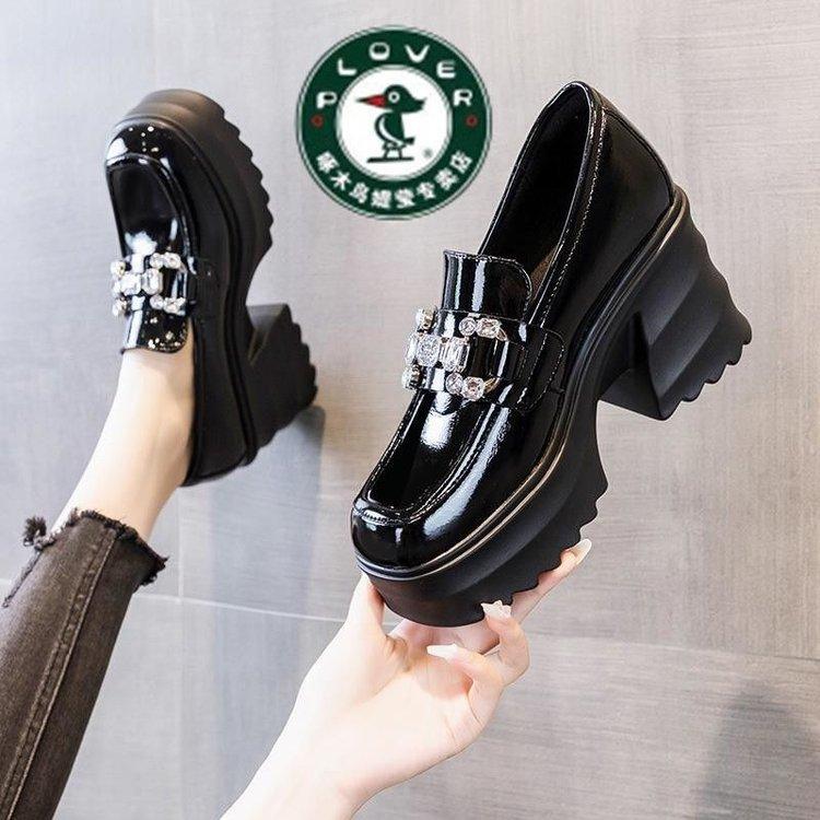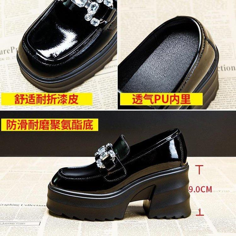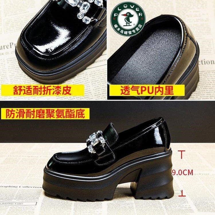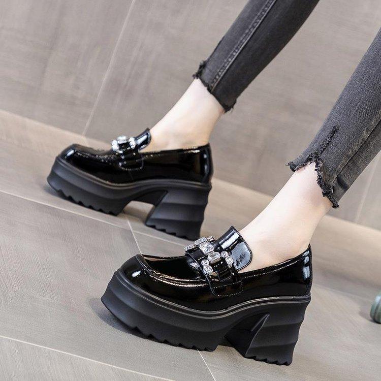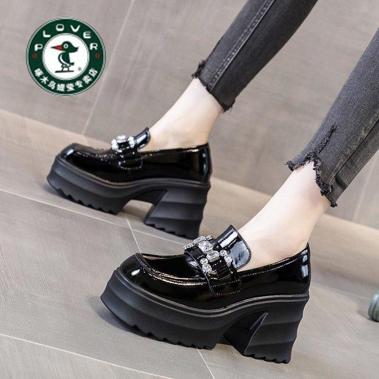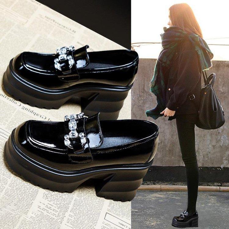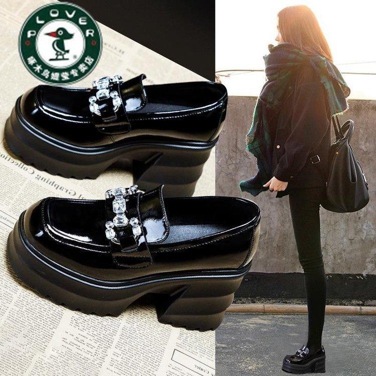 Mocasines de suela gruesa para mujer, otoño e invierno 2023, nuevos zapatos negros de una sola capa, zapatos pequeños de cuero estilo británico, zapatos muffin sin cordones