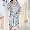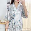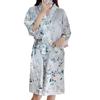 2024 Nuevo Llegada Camisón para Mujer de Seda Bata de Mañana Fresco y Sencillo Estilo Ins Flores Pequeñas Albornoz Pijama Ropa Casual para el Hogar