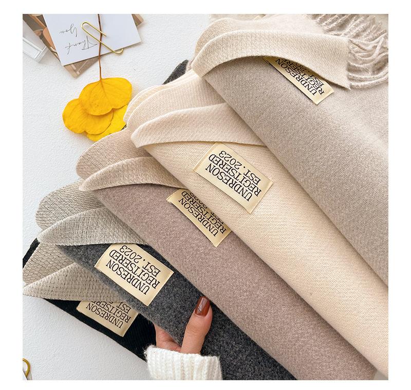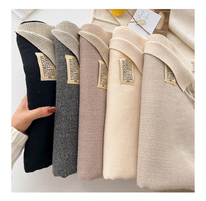 Bufanda de cachemir de doble cara de color liso para mujer, estilo coreano, gruesa y cálida, para estudiantes y parejas, para invierno