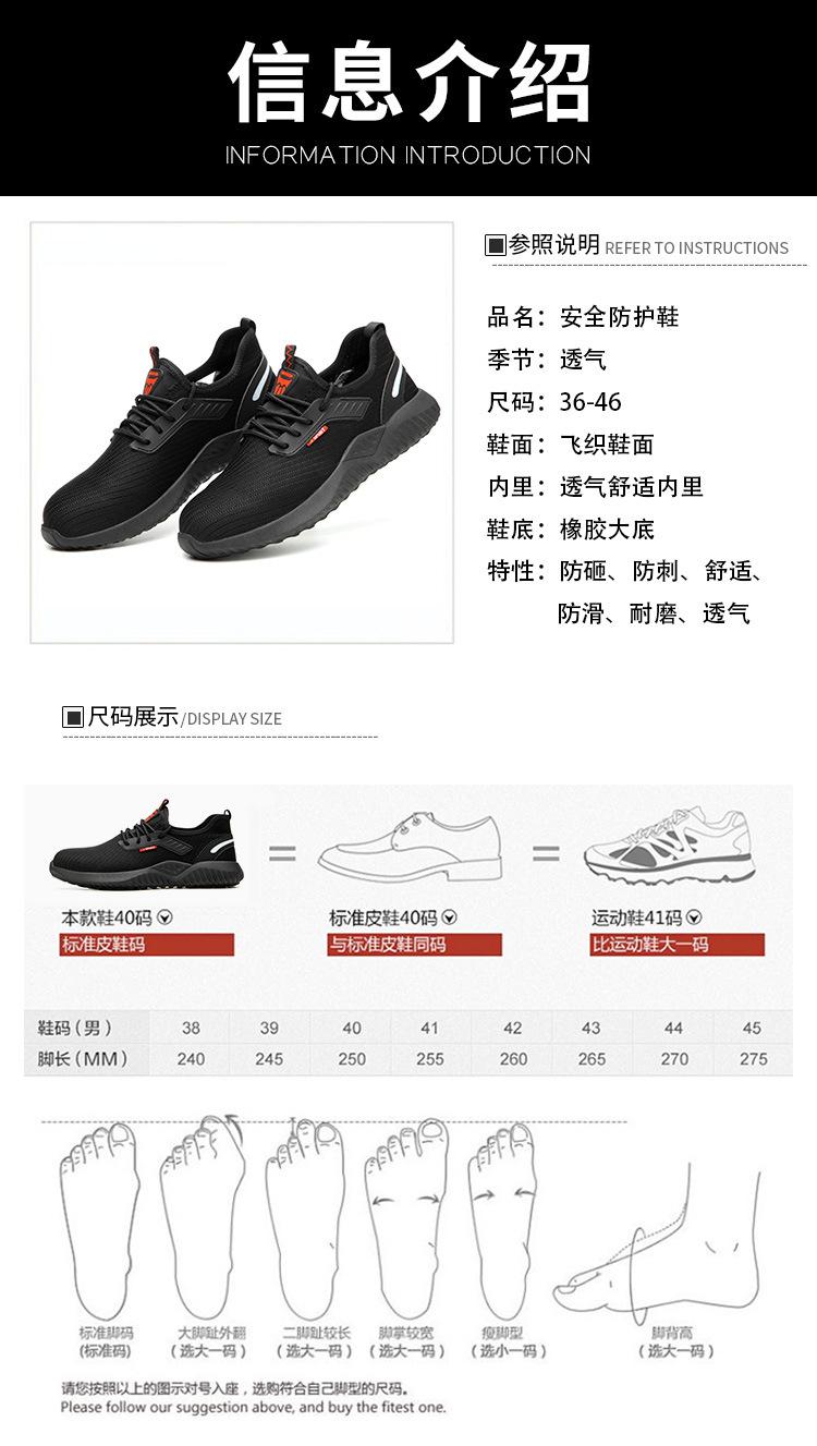 Venta al por mayor de zapatos de seguridad para el trabajo transfronterizos para hombre, transpirables, con punta de acero, antigolpes y antiperforación, cómodos para las cuatro estaciones.