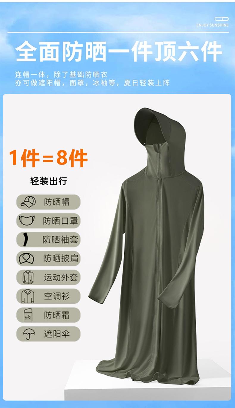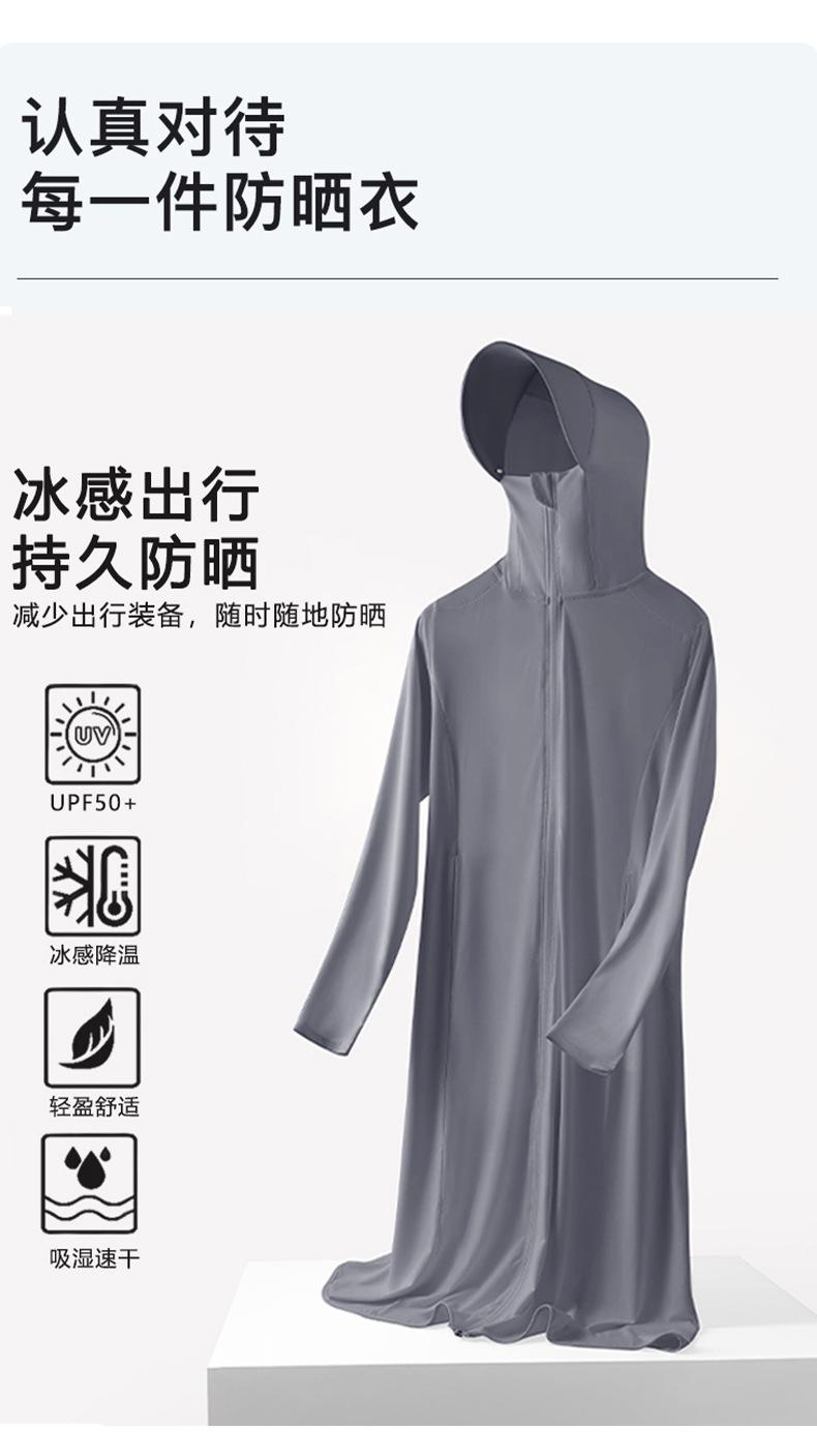 Ropa de protección solar larga de verano para mujer 2024, nueva protección UV, abrigo de cuerpo entero hasta la rodilla de seda de hielo transpirable.