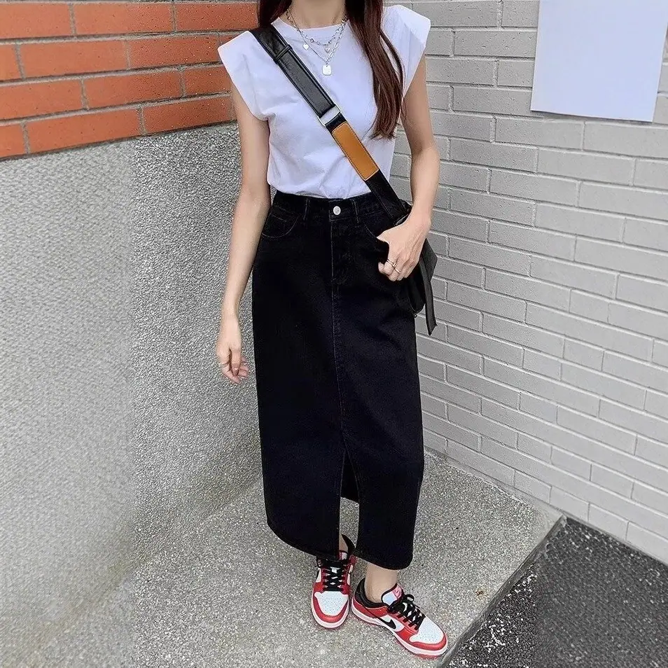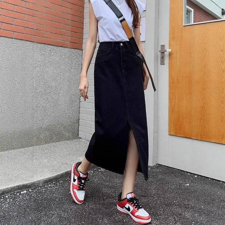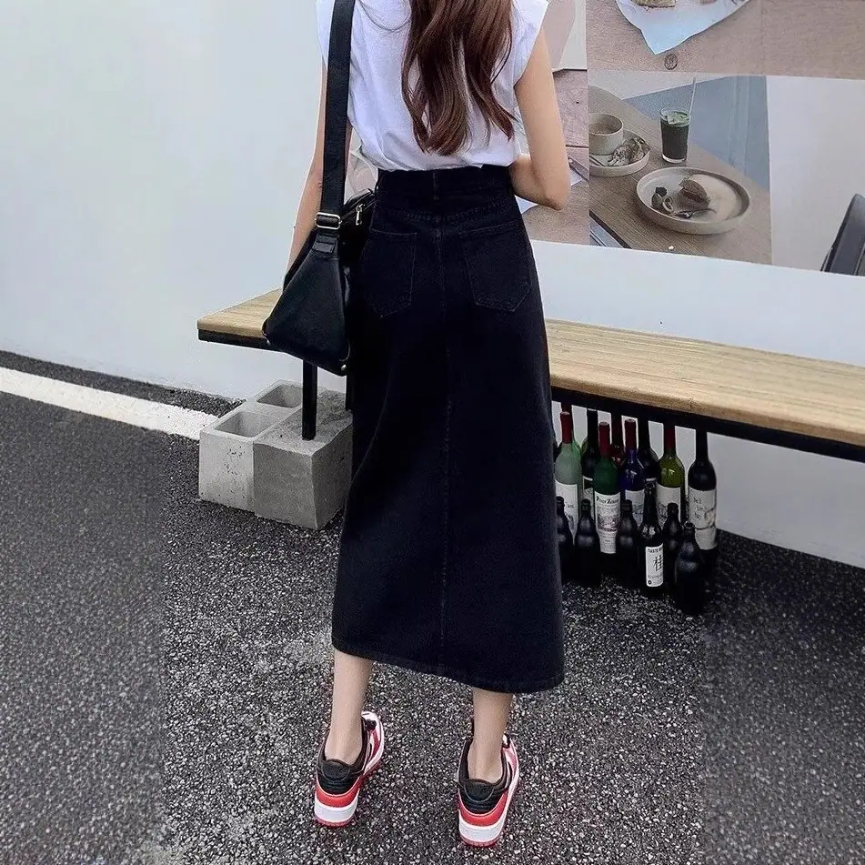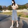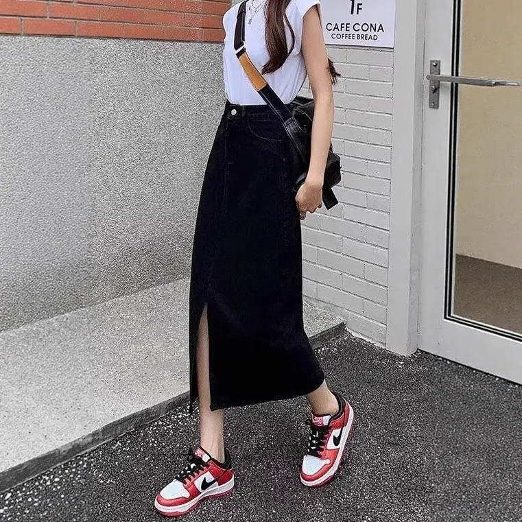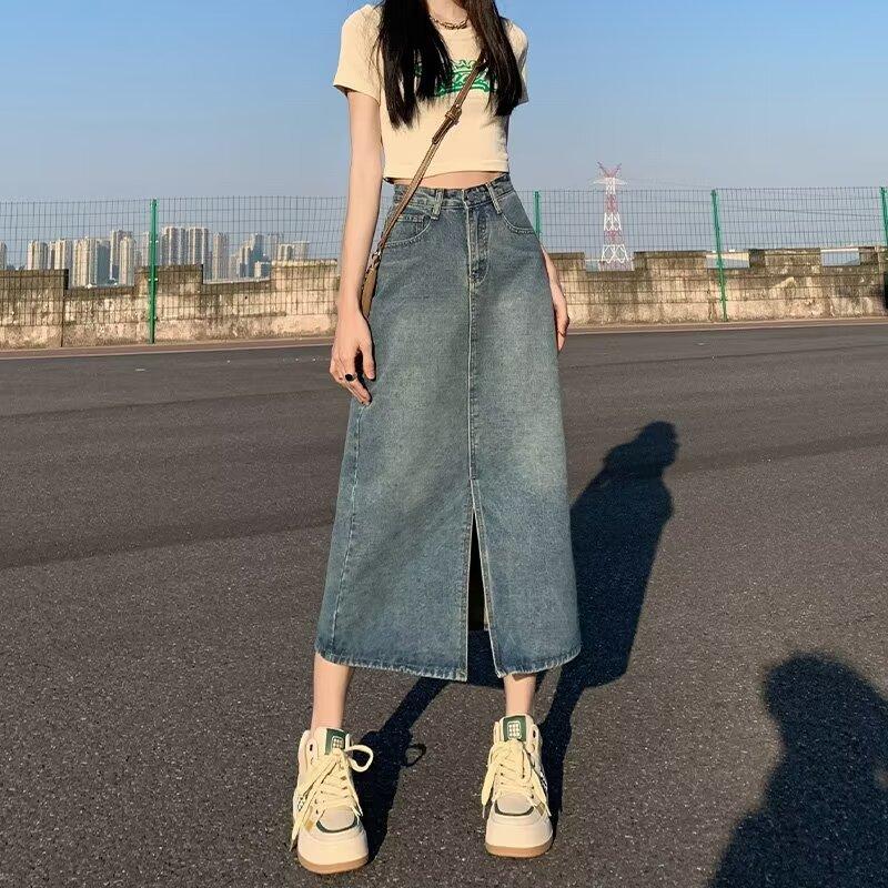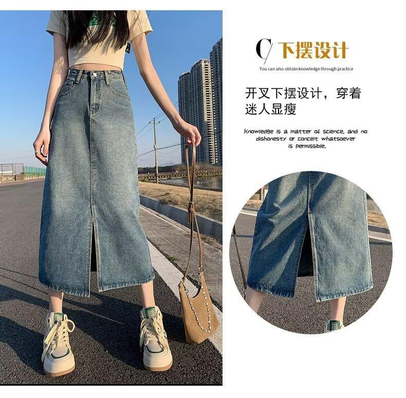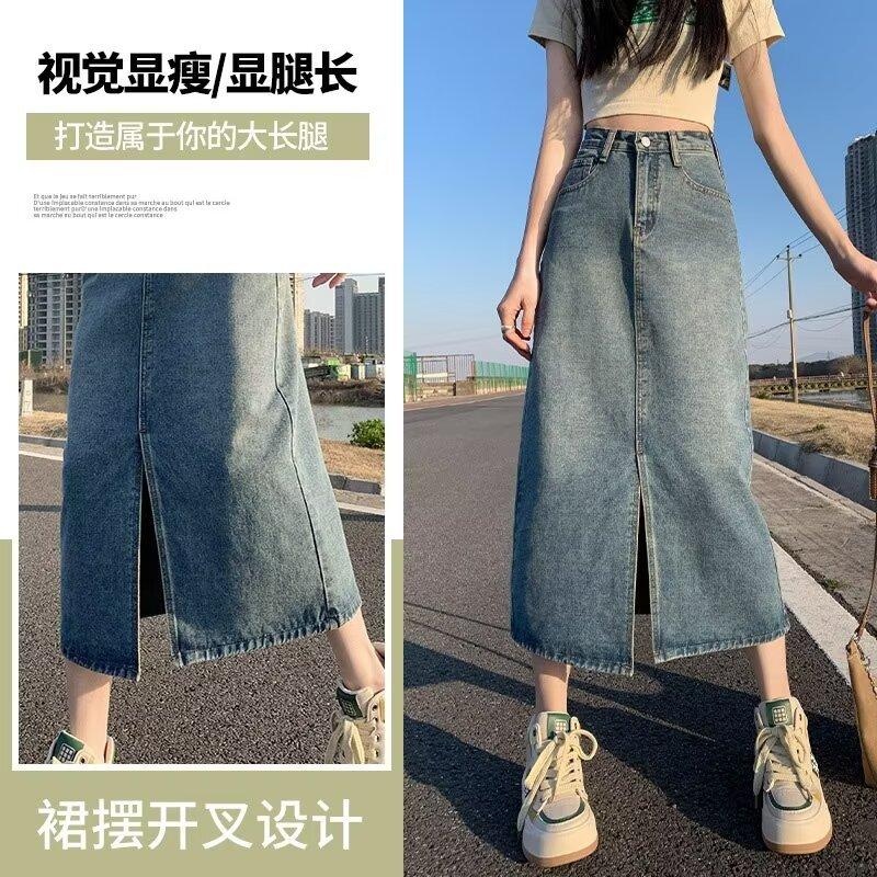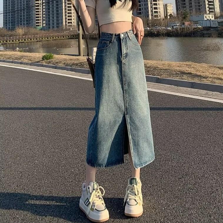 Falda vaquera de cintura alta con abertura para mujer, primavera y verano 2024, longitud media, corte A, caderas estrechas
