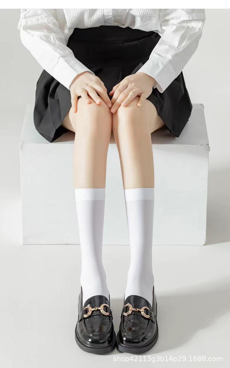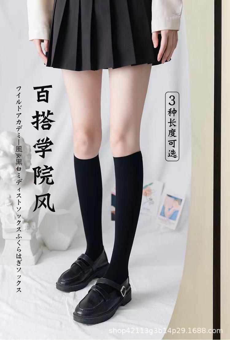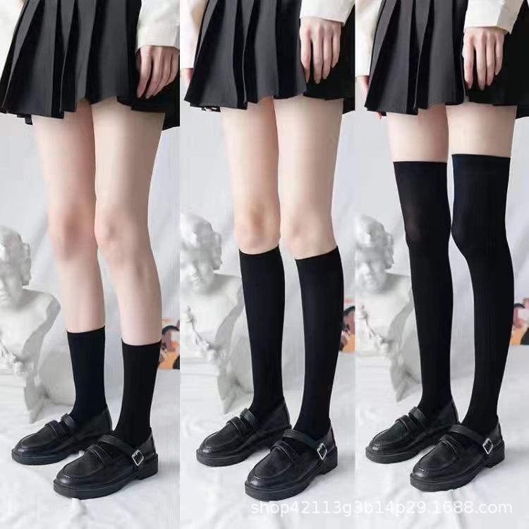 Calcetines de pantorrilla para mujer, calcetines de presión de tubo medio por encima de la rodilla, calcetines jk de primavera y verano para mujer, medias altas de pierna fina, medias negras al por mayor